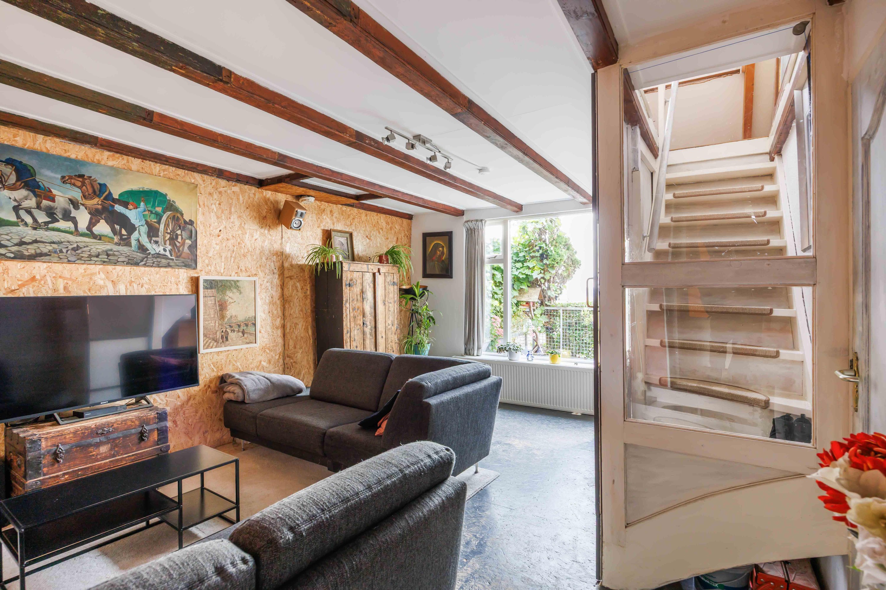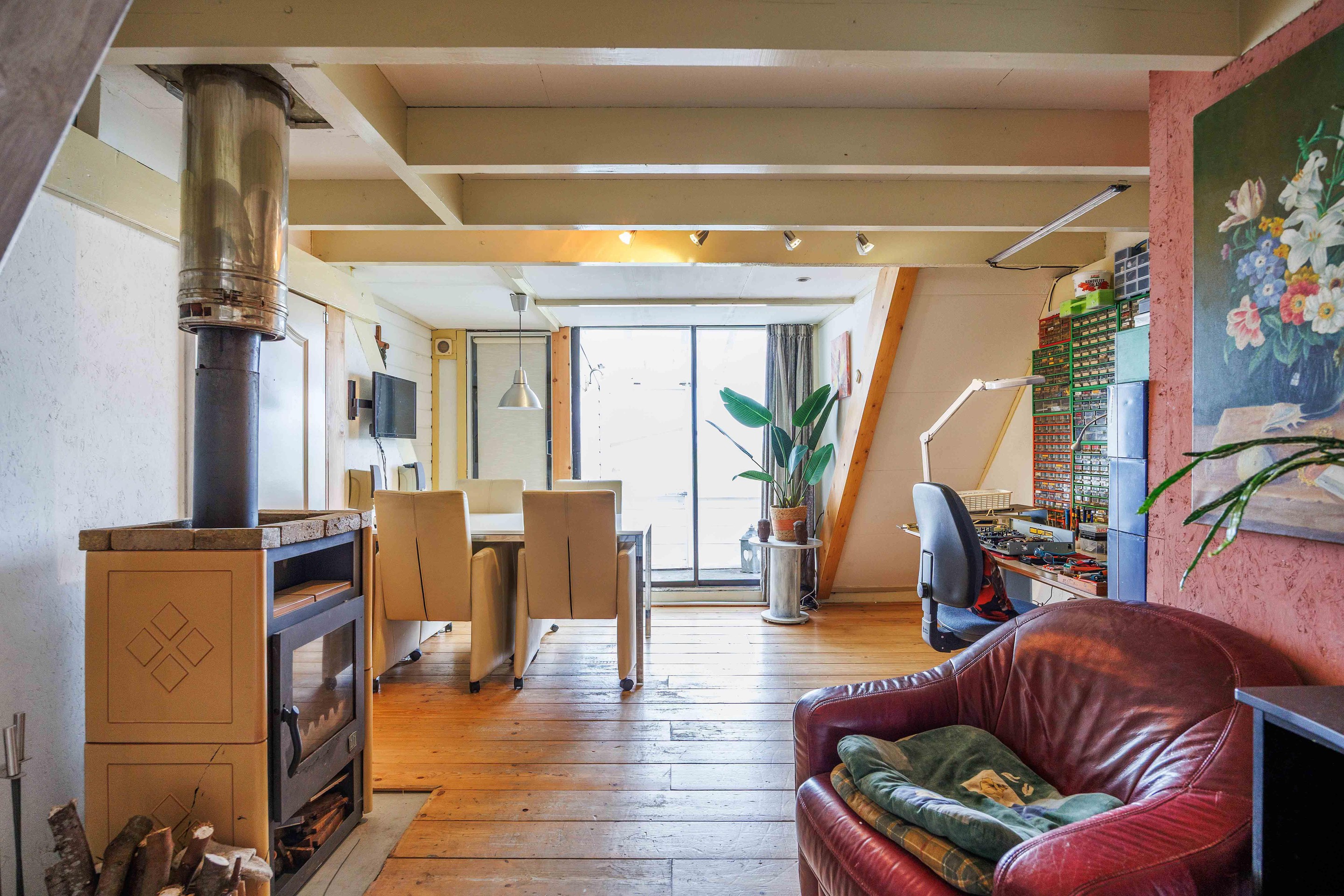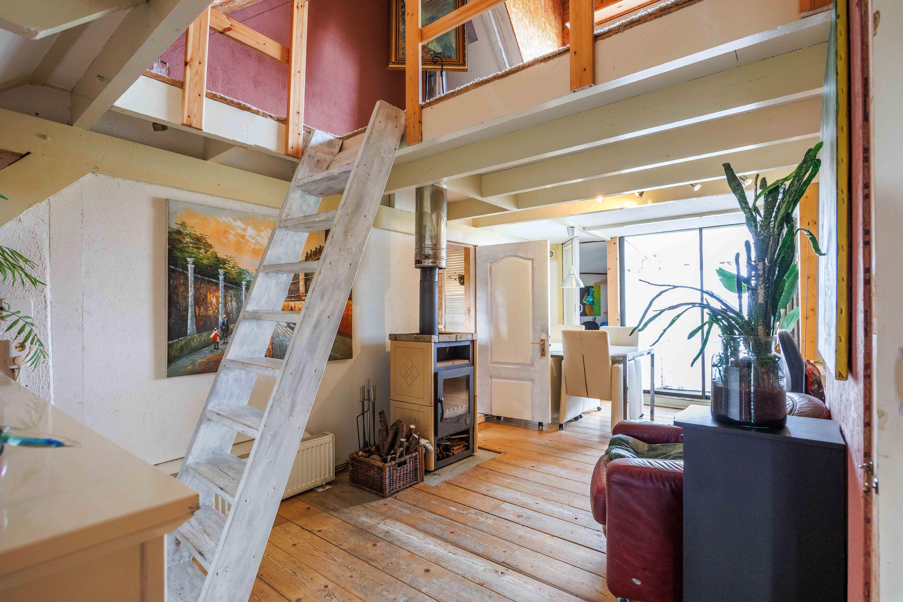 Achter de bescheiden gevel schuilt een woning vol karakter en mogelijkheden. De woonkamer ademt warmte dankzij de houten balken, grote raampartijen met HR++ beglazing en een authentieke sfeer. Aansluitend bevindt zich een eetkamer met houtkachel – een heerlijke plek om lange avonden door te brengen – met boven de ruimte een sfeervolle vliering, ideaal als werk- of leeshoek met prachtig uitzicht over de omgeving.