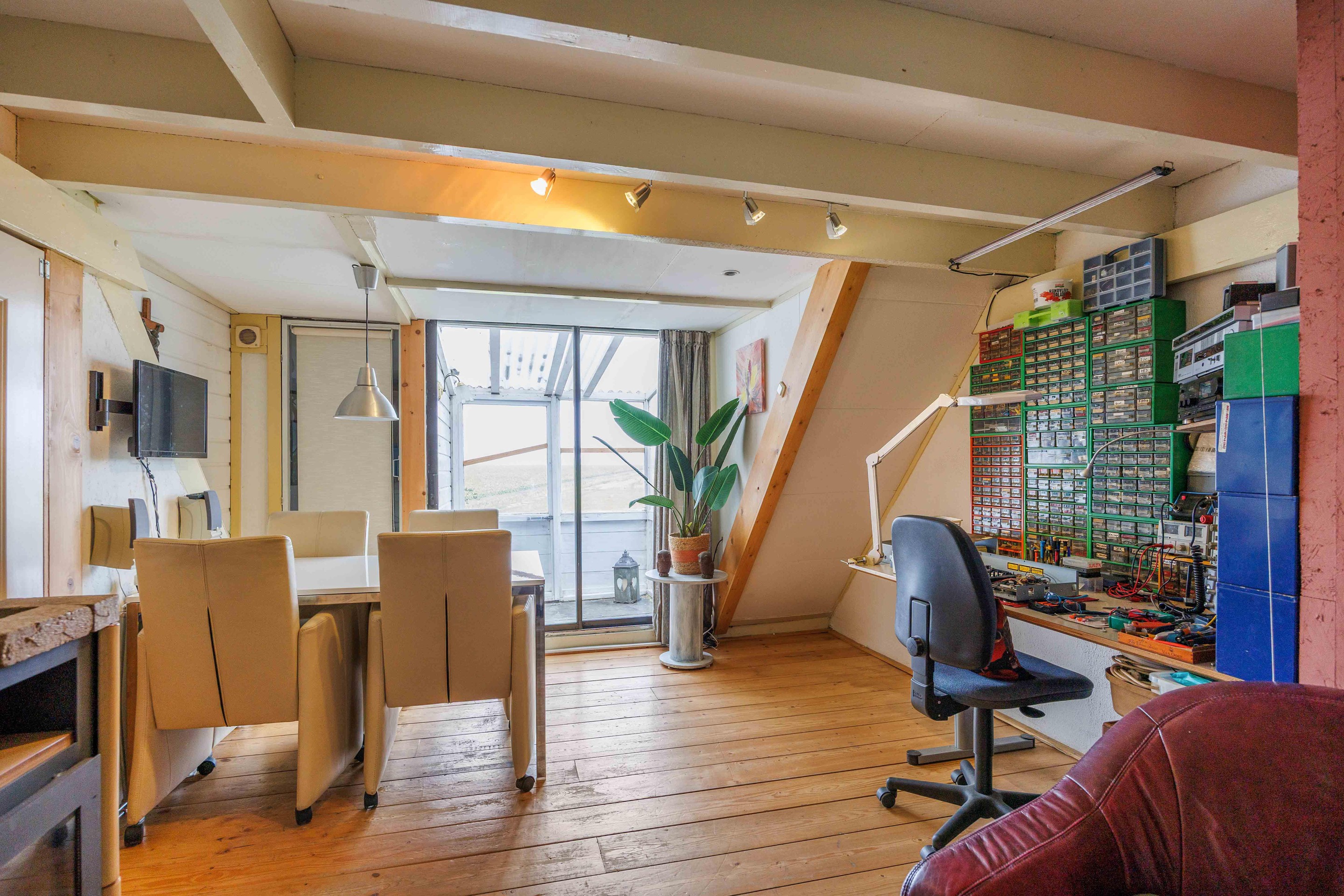Naast de eetkamer ligt nog een aparte kamer met een sfeervolle uitstraling, die je kunt gebruiken als atelier, tweede woonkamer, werkruimte of juist als gezellige tuinkamer. De indeling maakt deze woning bijzonder veelzijdig – ideaal voor wie graag iets unieks zoekt met karakter en eigen mogelijkheden.