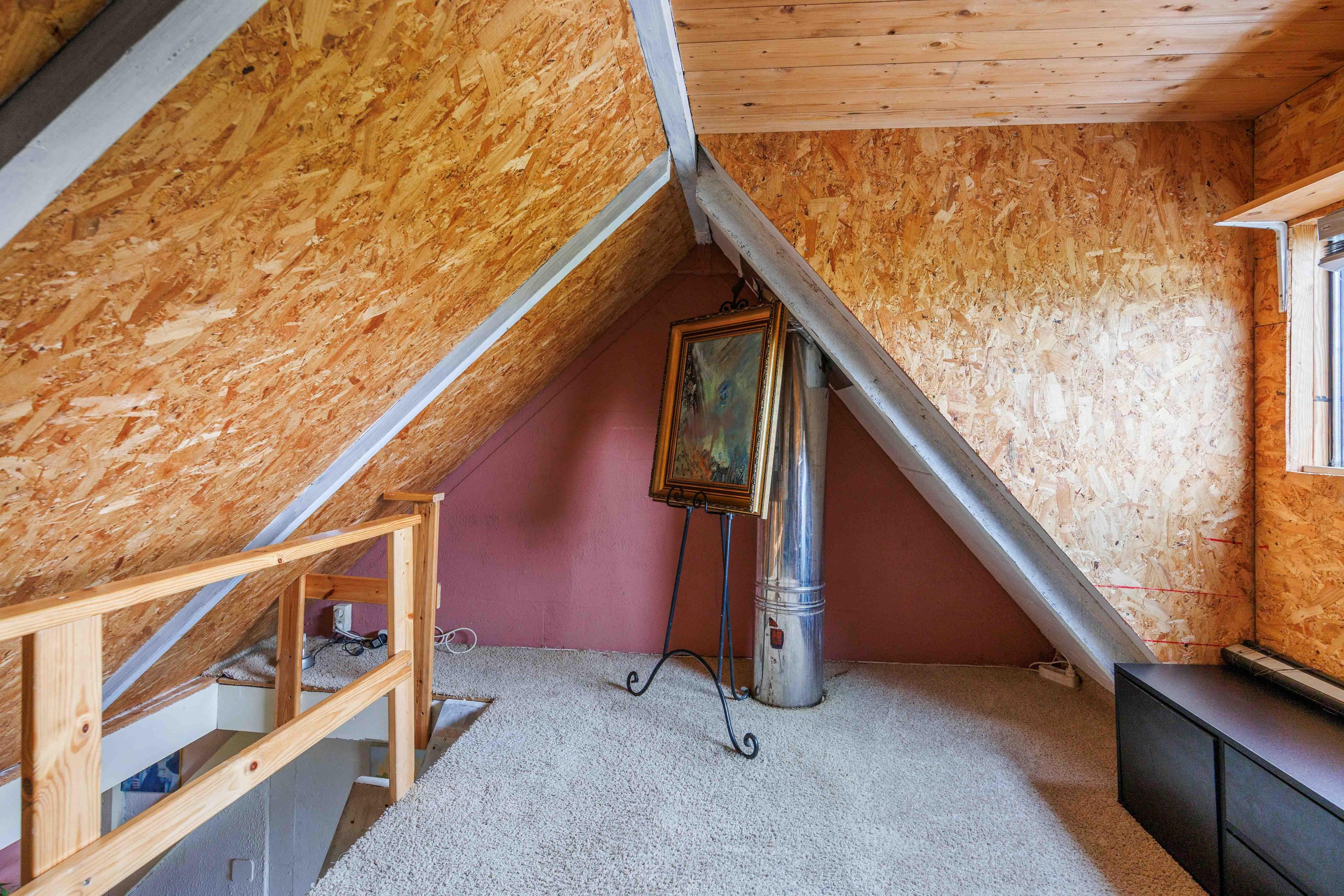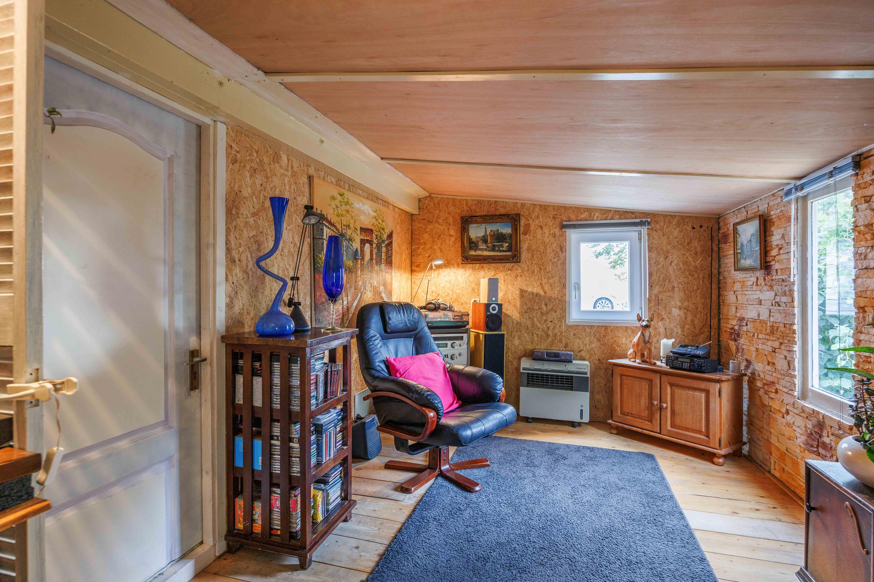 Achter de garage bevindt zich nog een geïsoleerde opslagruimte met elektra, die voorheen dienstdeed als bed & breakfast voor toeristen. Een leuke bonus voor wie droomt van een gastenverblijf of creatieve werkruimte.