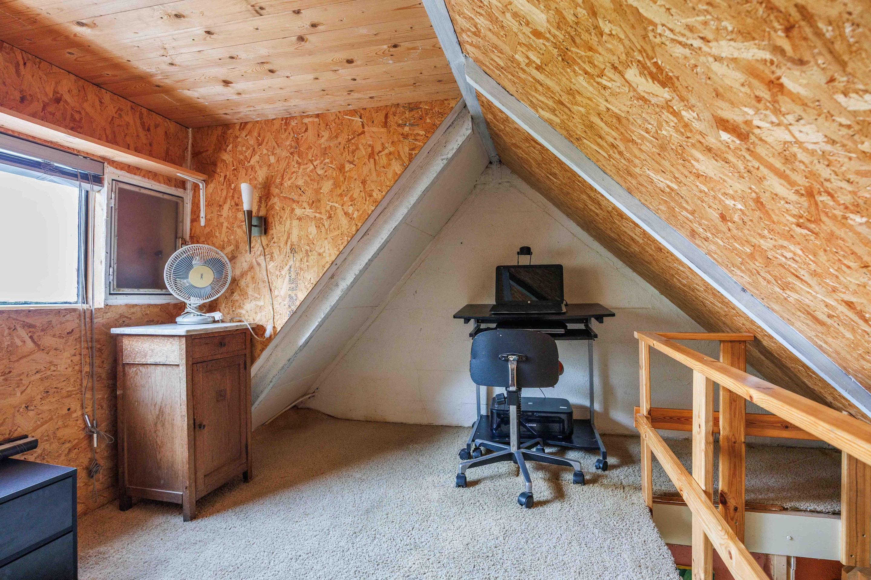De woning beschikt momenteel over één ruime slaapkamer op de verdieping, maar door het aanbrengen van een extra deur zijn er eenvoudig twee slaapkamers te realiseren. Onder de woning bevindt zich nog een extra slaapkamer met aangrenzende opslagruimte – perfect voor logees, hobby of voor jezelf.