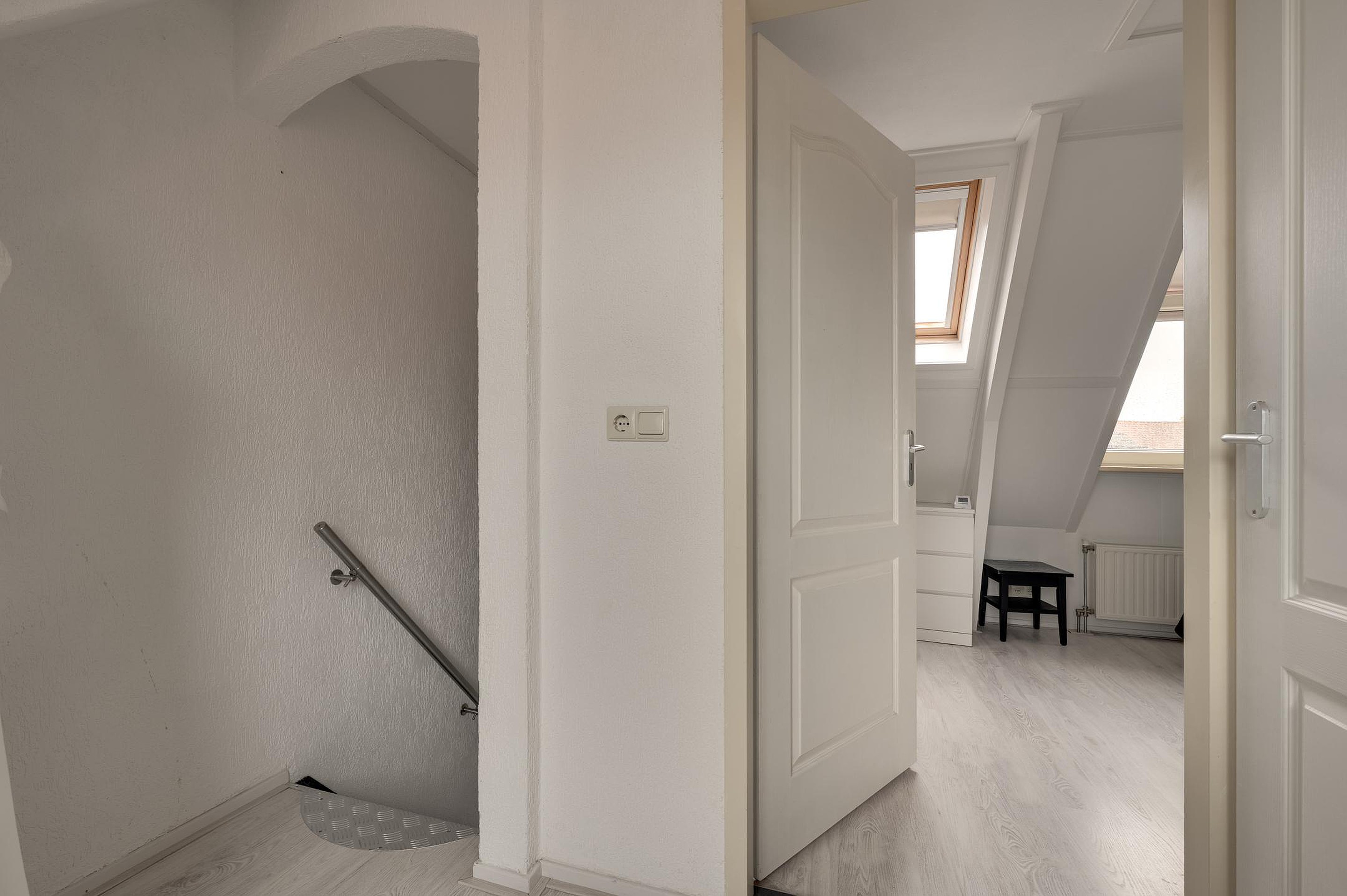 Eerste verdieping, overloop met toegang tot 2 slaapkamers met wastafel.