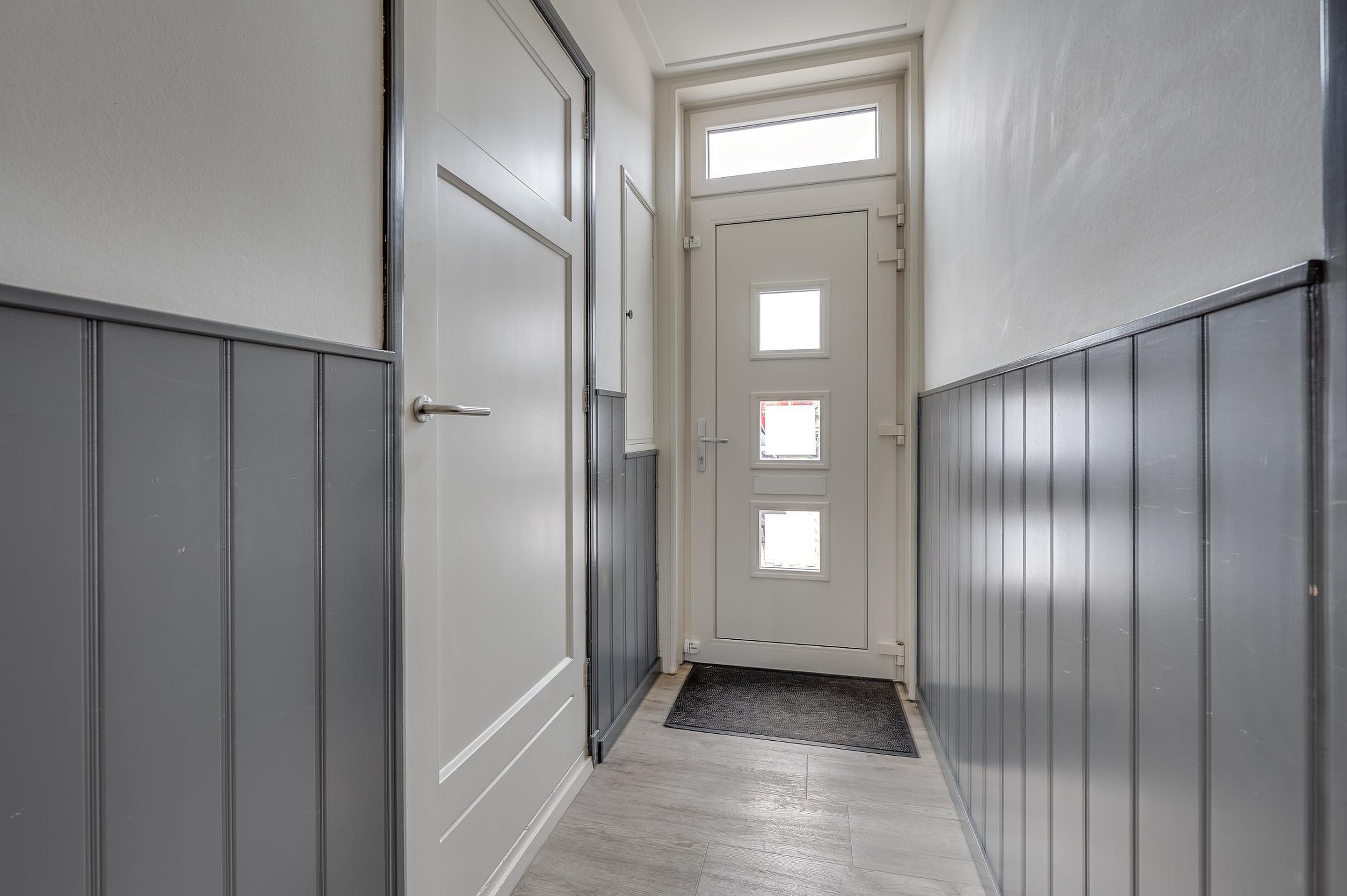 Begane grond, hal met meterkast en vaste trap naar eerste verdieping. Vanuit de hal deur naar de woonkamer en deur naar de bijkeuken. In de bijkeuken ruimte voor wasmachine en droger. Tevens is hier een vaste kast met combiketel opstelling. En achterin de bijkeuken apart toilet.