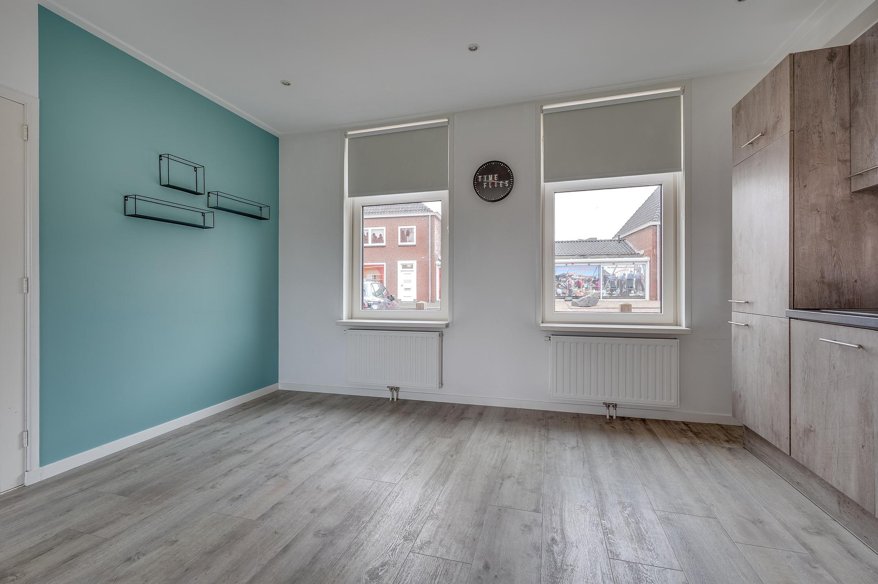 De rechthoekige doorzon woonkamer met open keuken is heerlijk licht. Aan de voorzijde is de nieuwe keuken met inbouwapparatuur. Aan de achterzijde de woonkamer met tuindeuren naar het terras.