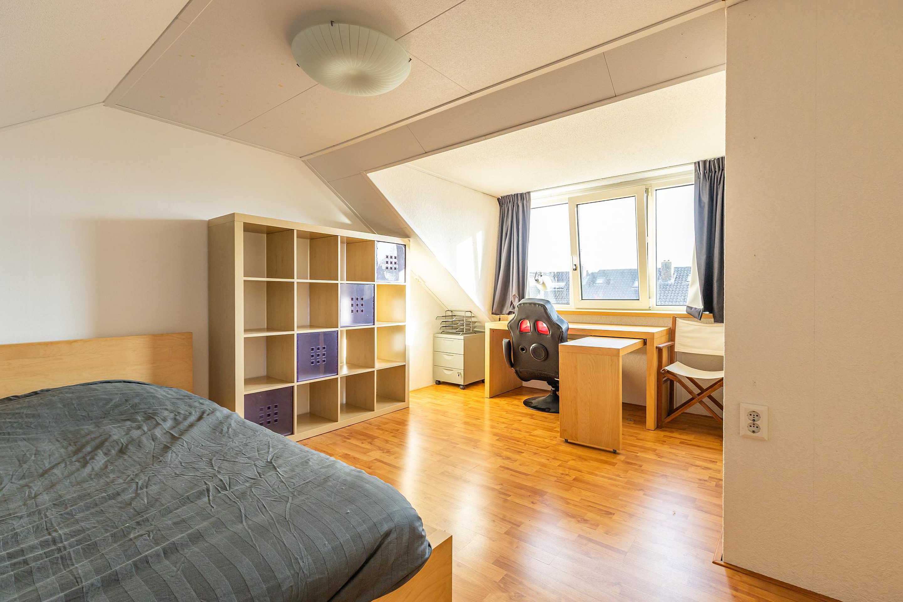 Tweede verdieping: Via een vaste trap bereikt u de zolderverdieping. Aan de voorzijde bevindt zich de CV-opstelling en extra bergruimte. De grote zolderkamer is vergroot met een dakkapel met kunststof kozijnen en vormt een volwaardige vierde slaapkamer.