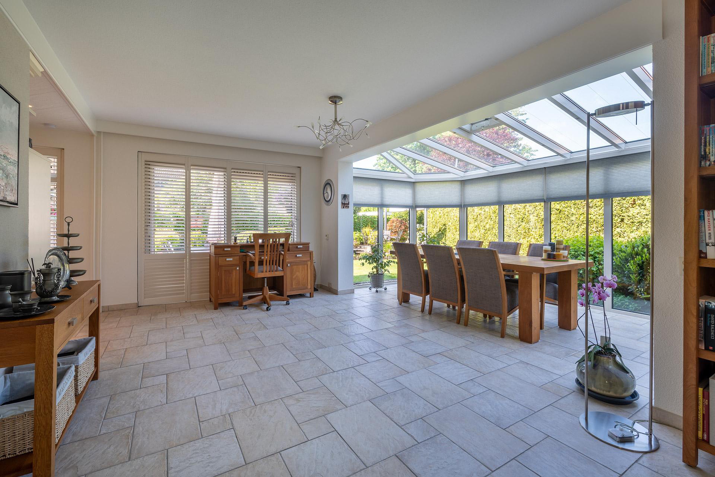 De woning beschikt over maar liefst 5 volwaardige slaapkamers, perfect voor een groot (samengesteld) gezin of kantoor-/hobbyen aan huis. Dankzij de serre-uitbouw aan de zijkant is er extra leefruimte ontstaan, waar u het hele jaar door kunt genieten van licht en uitzicht op de tuin.