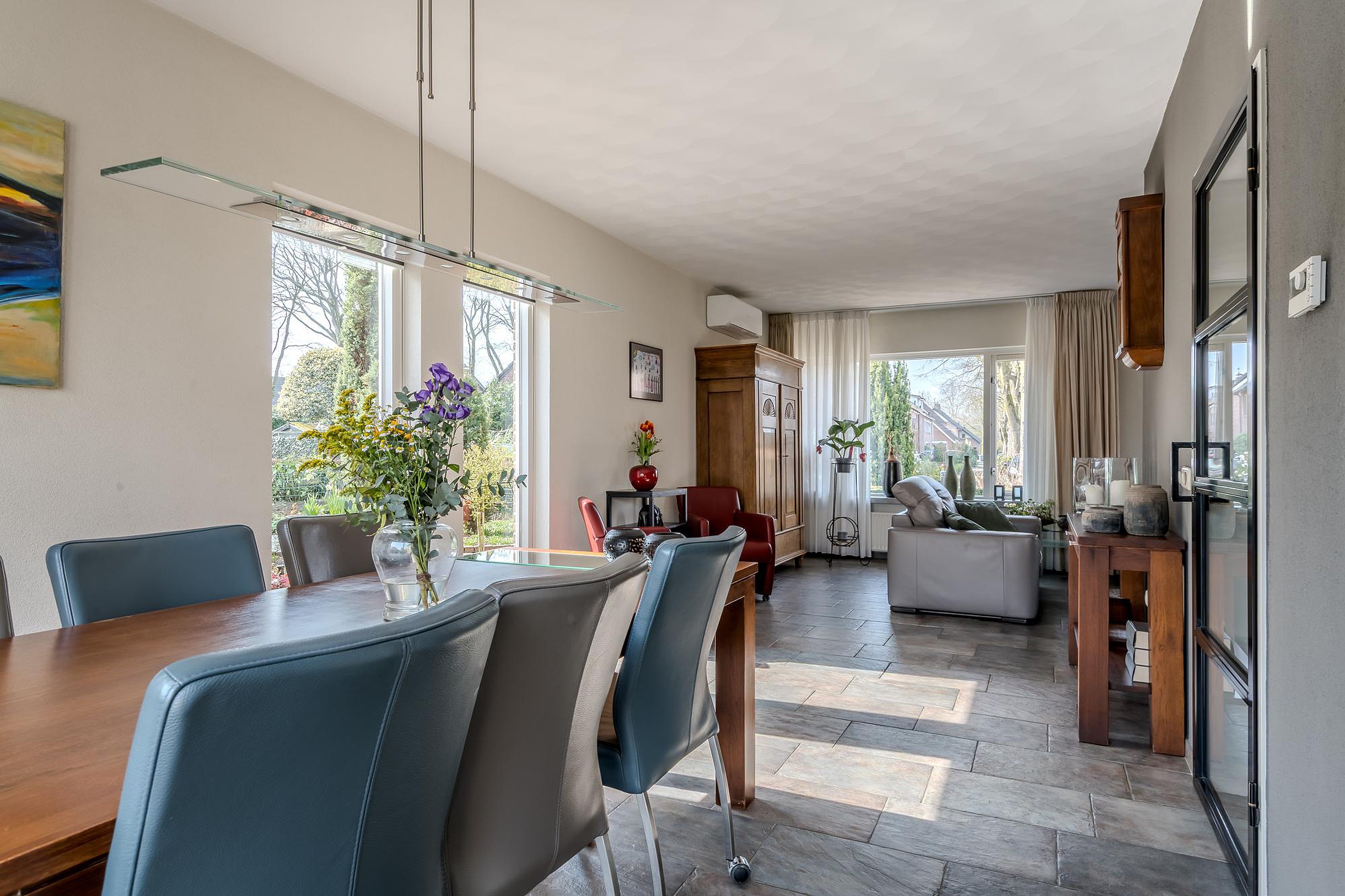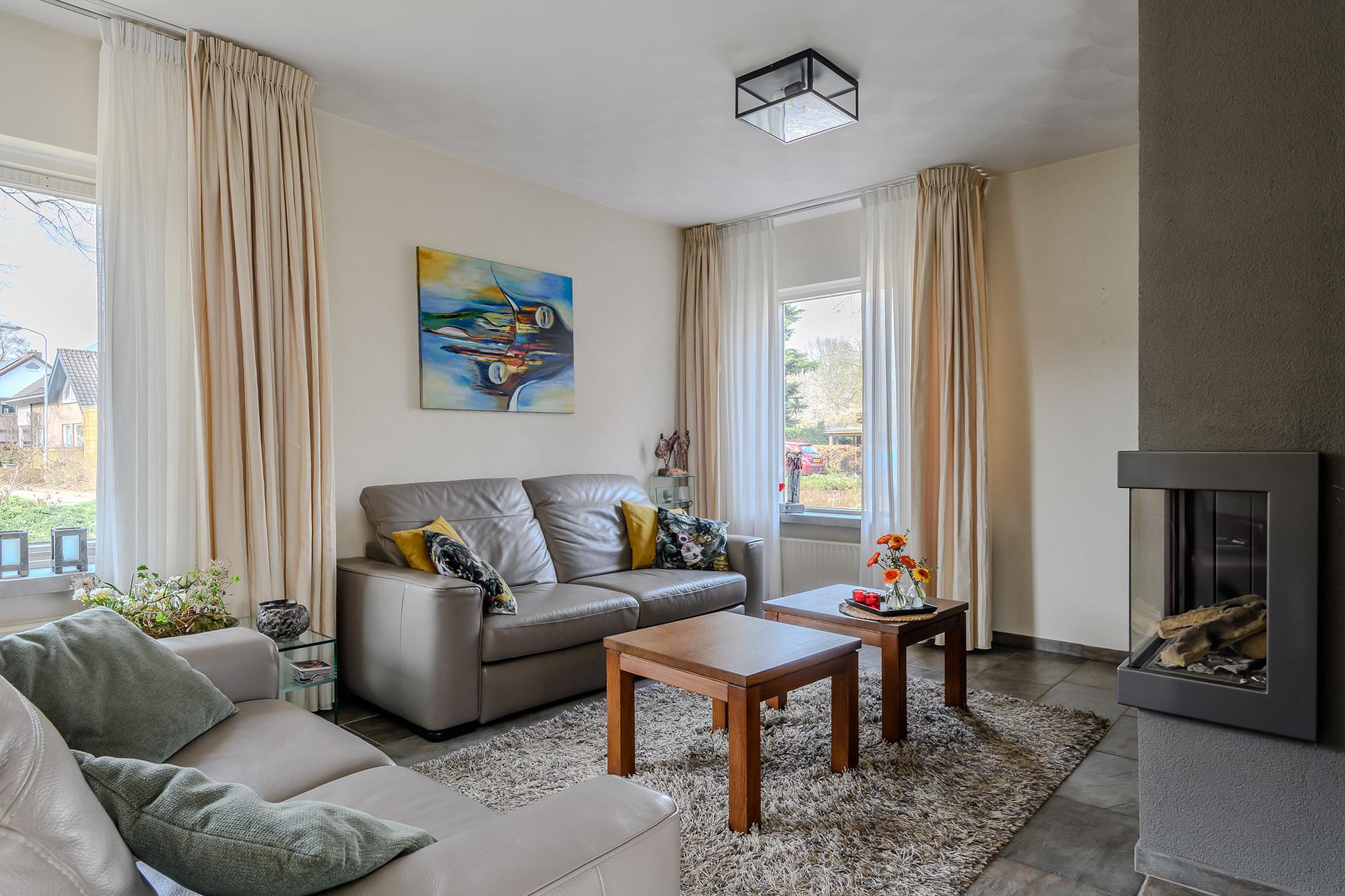 Begane grond: hal met toilet en meterkast, woonkamer met gashaard, vloerverwarming en airco, moderne halfopen keuken met alle inbouwapparatuur, bijkeuken met aanrechtblok en inbouwkast (wasmachine, wasdroger en diepvries), garage met vaste trap naar bergzolder.