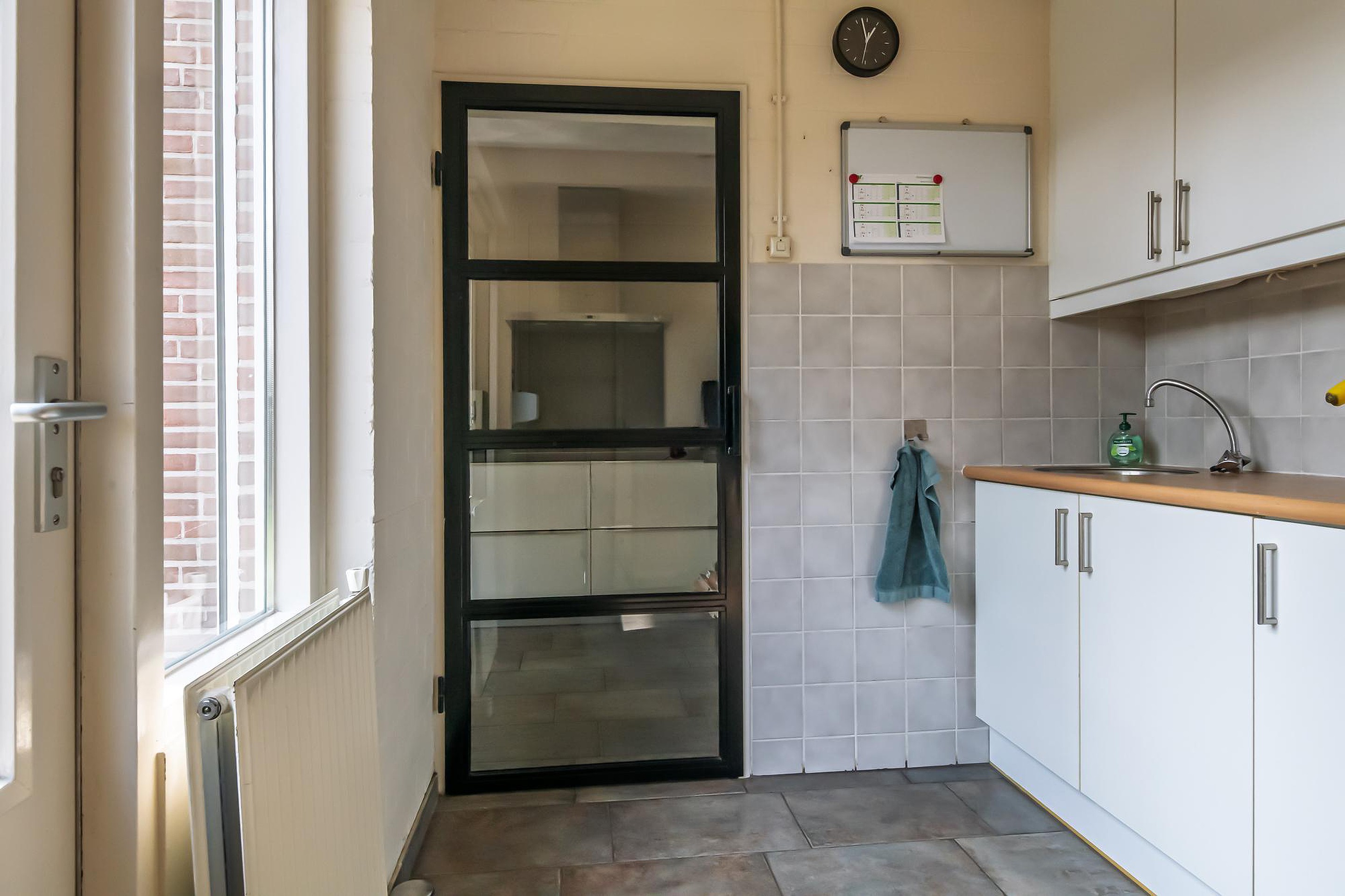 - Bijkeuken met aanrechtblok en inbouwkast (wasmachine, wasdroger, diepvries)