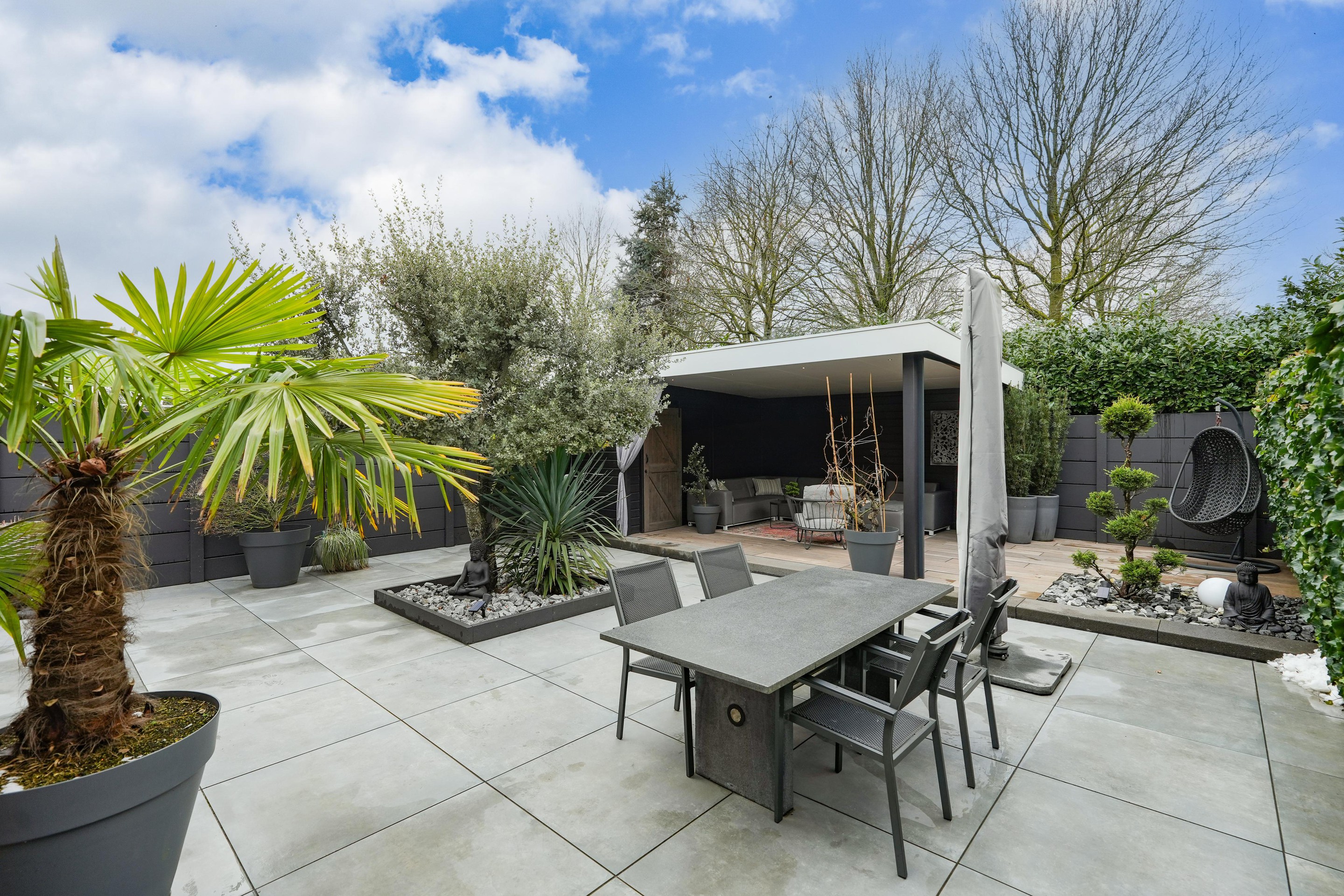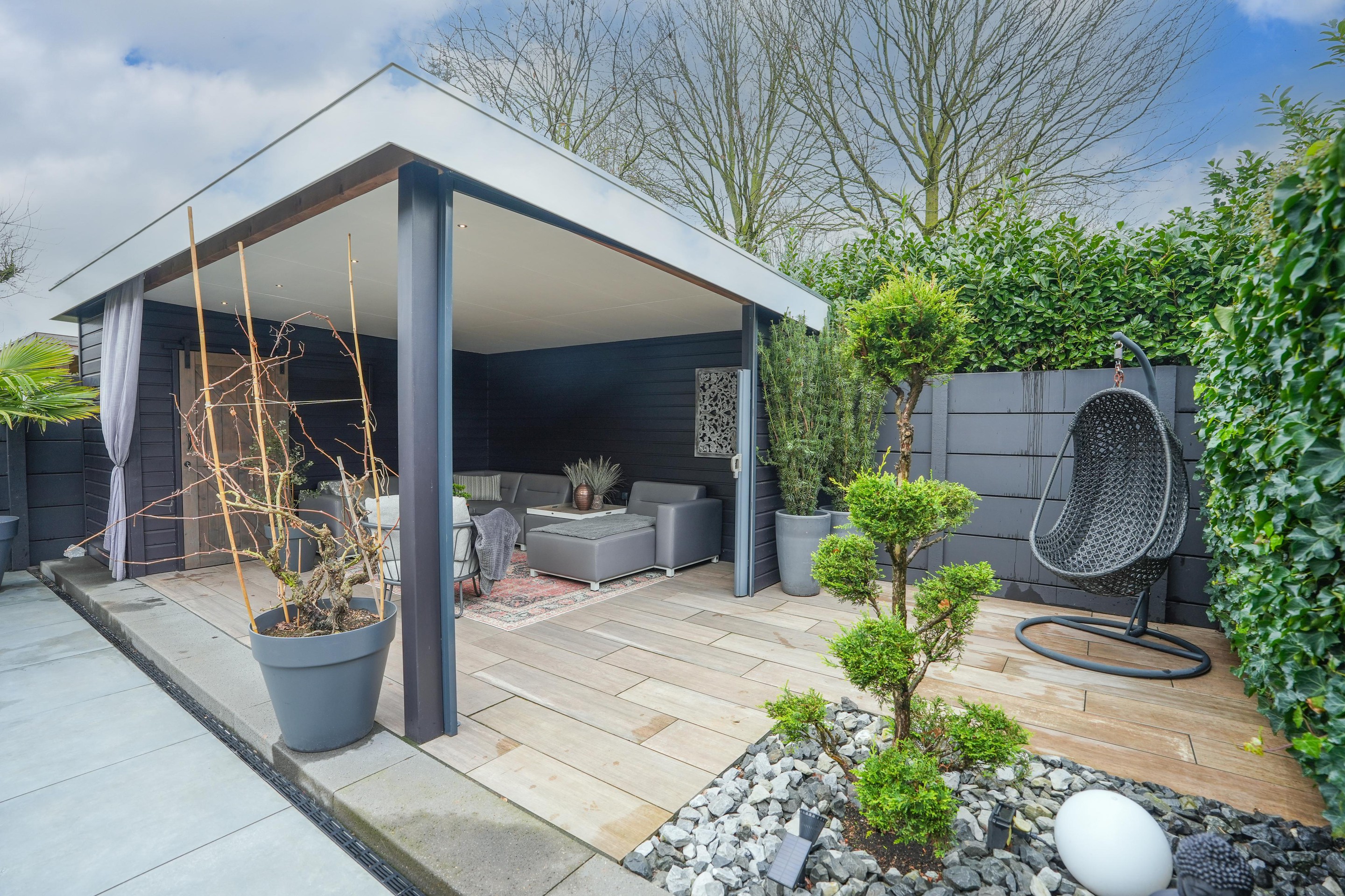 Via de achtertuin is de garage bereikbaar, waardoor praktische toegankelijkheid en esthetiek hand in hand gaan. Of u nu wilt ontspannen met een drankje in de zon of wilt genieten van een rustig moment in de tuinkamer, deze tuin biedt het ultieme buitenleven in een luxe, goed onderhouden omgeving.