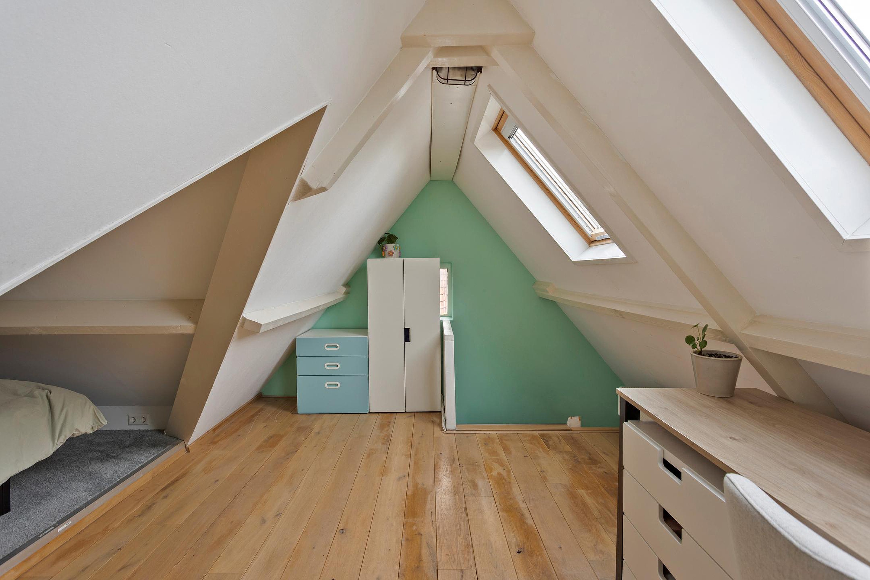 Tweede verdieping Bereikbaar via een vaste trap, zolderkamer met 2 dakramen, deze kamer is momenteel als vijfde slaapkamer in gebruik.