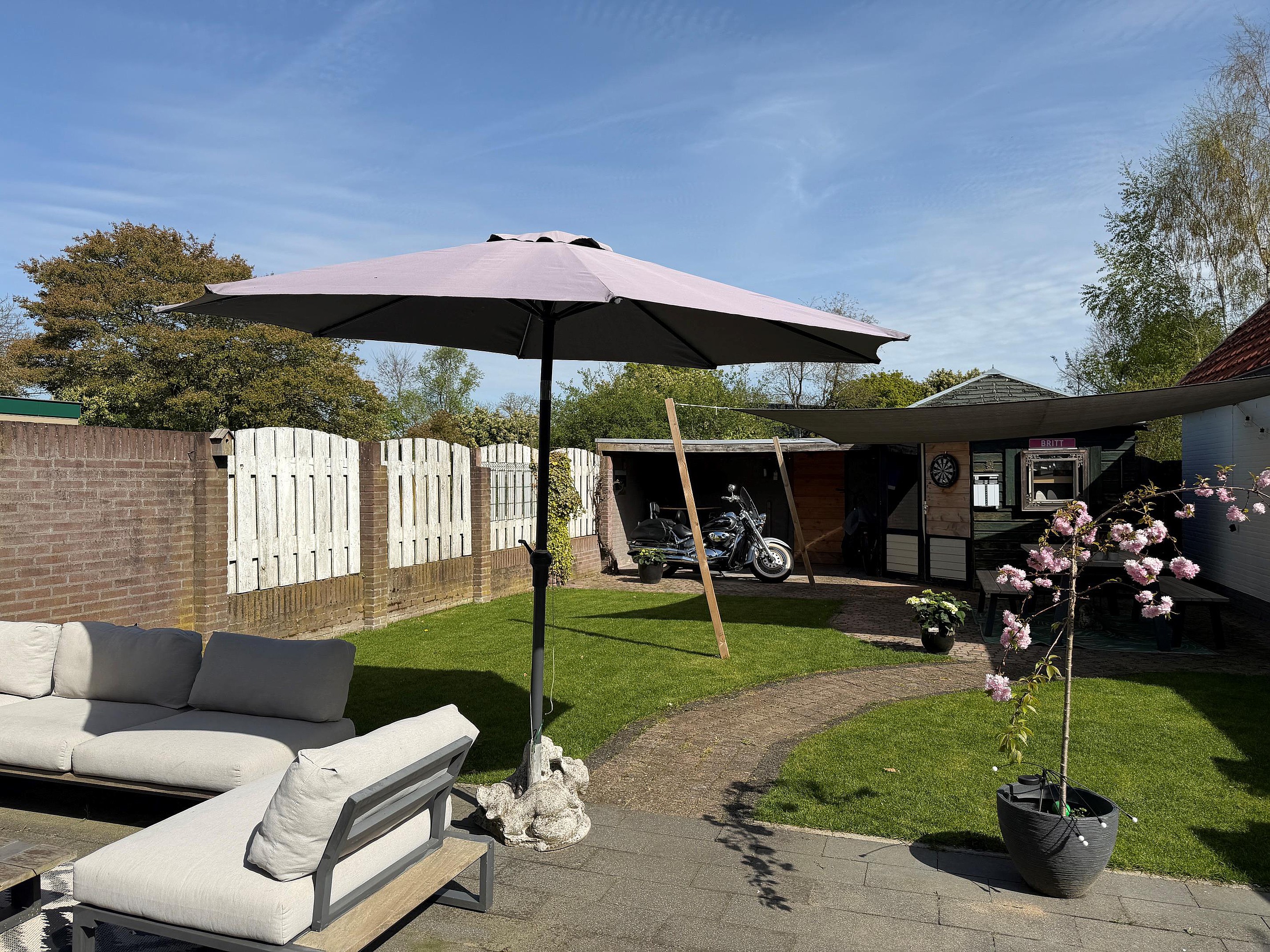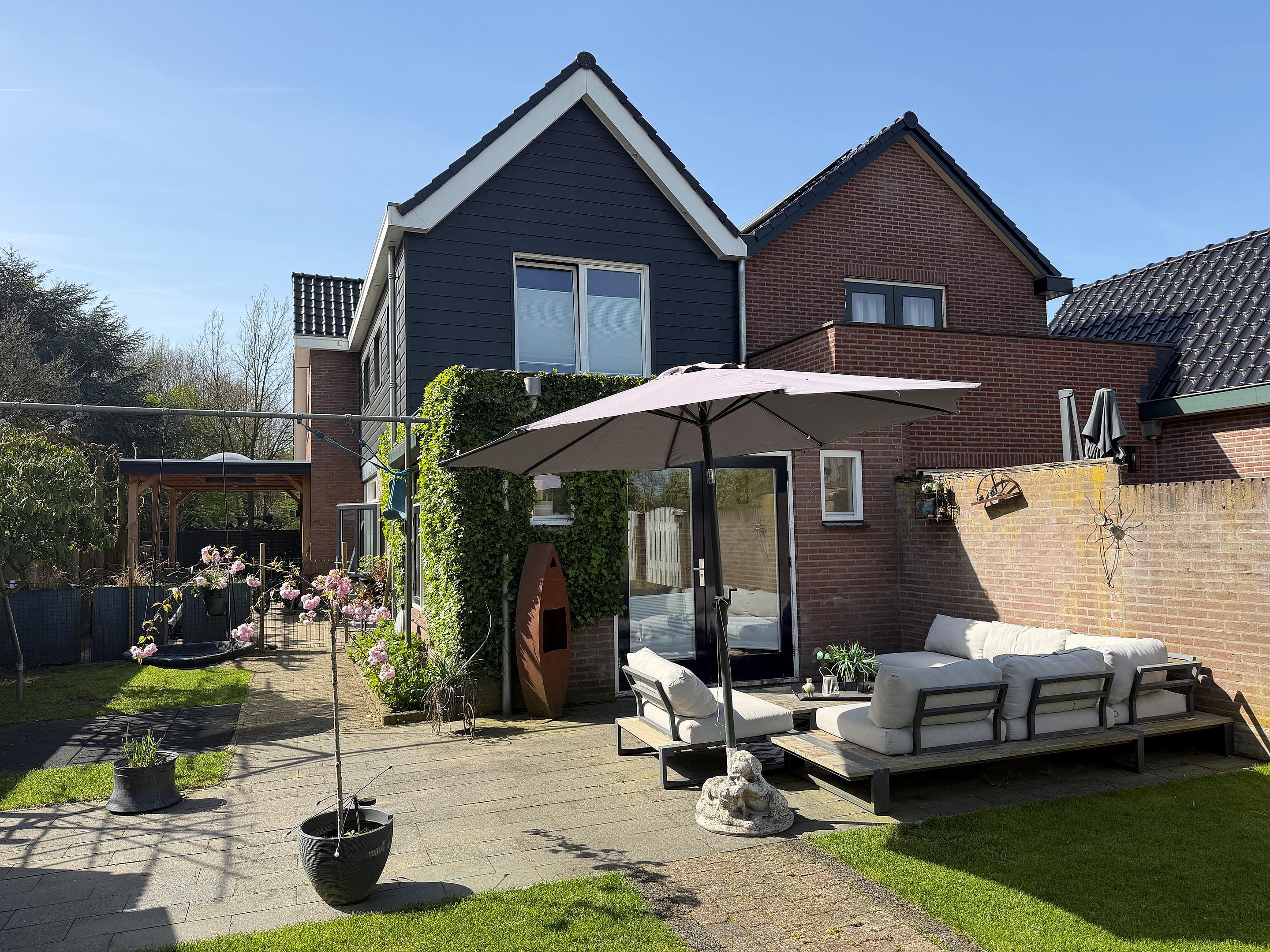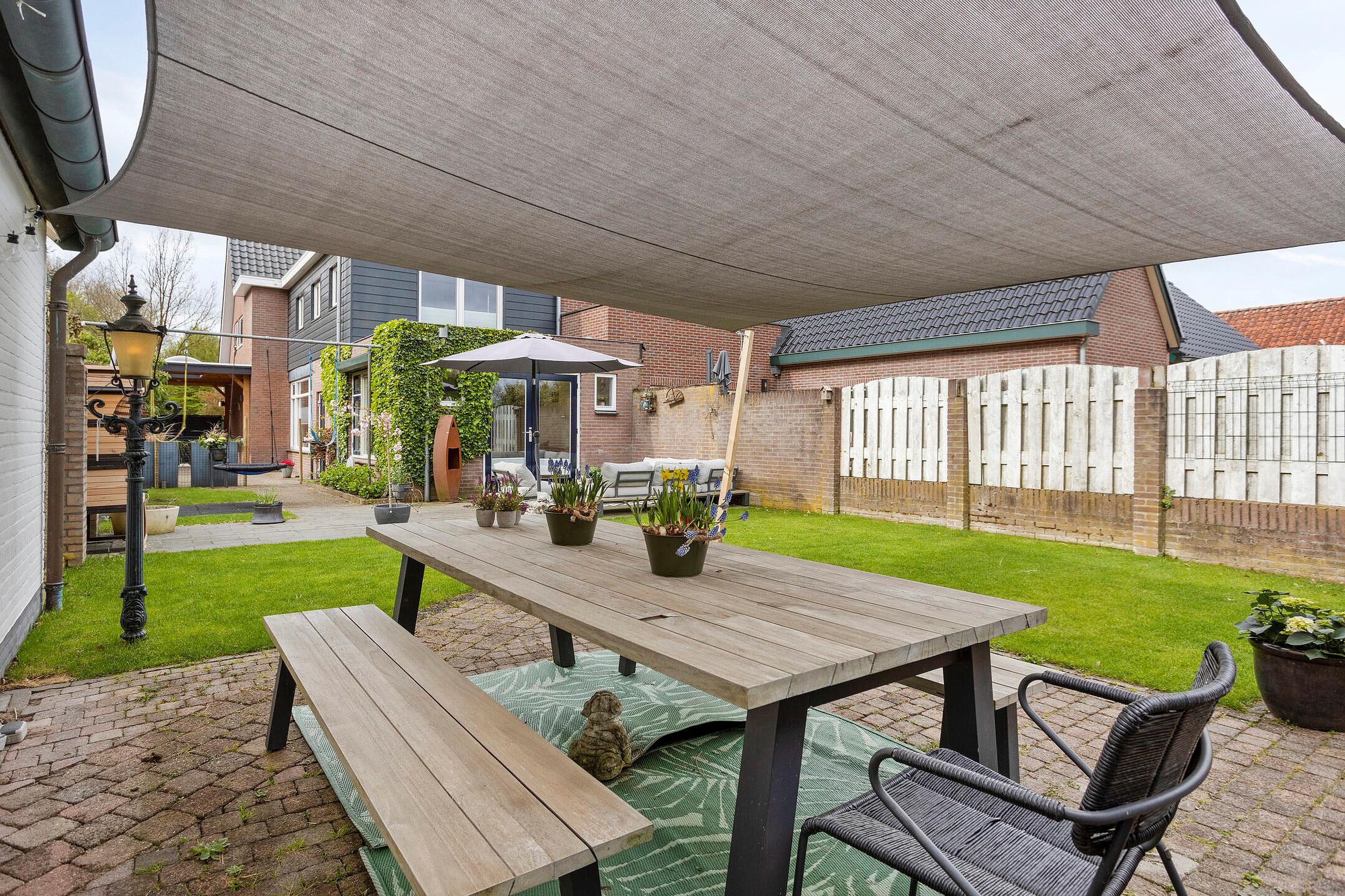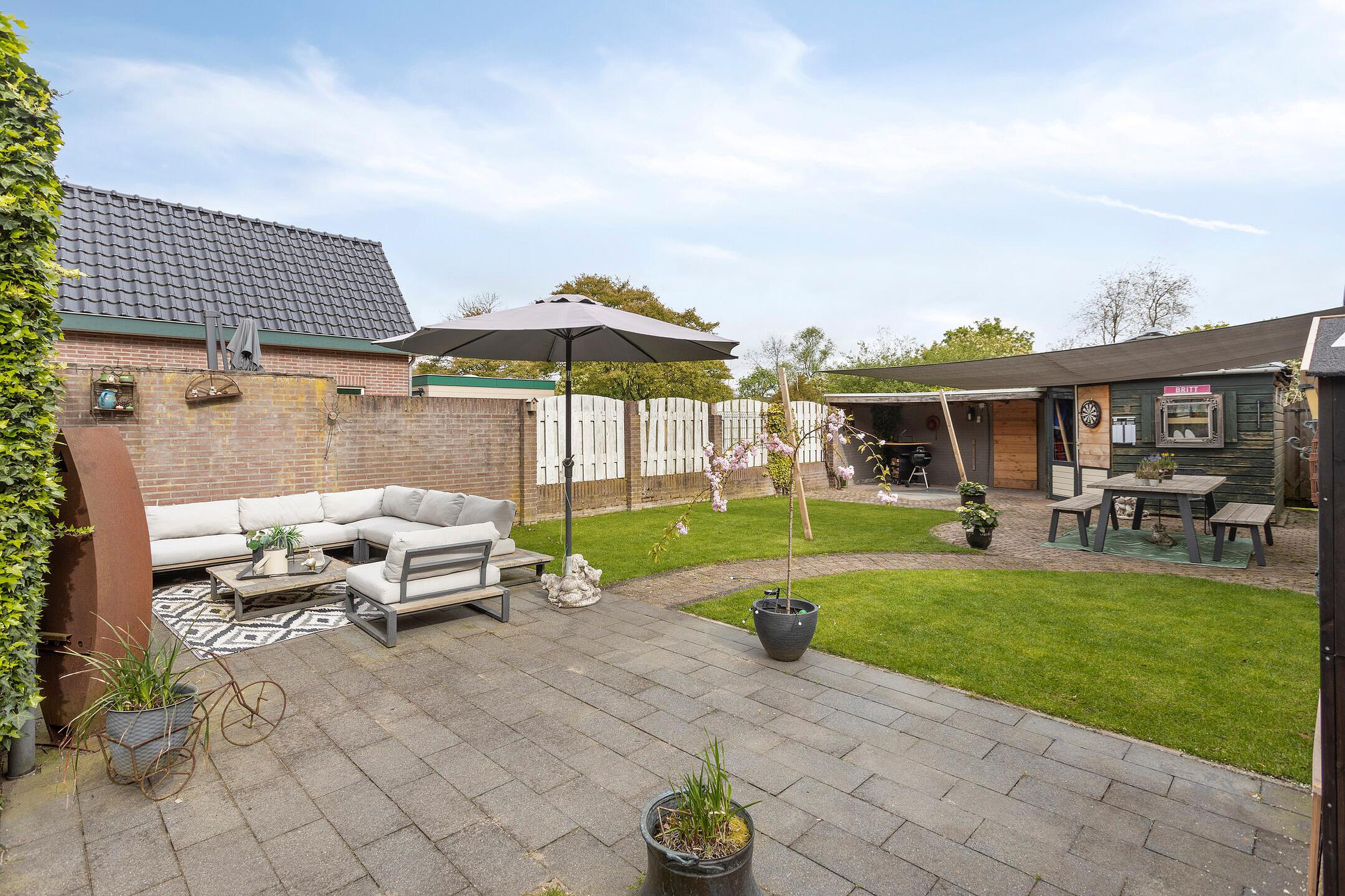Tuin De tuin is fraai aangelegd, voorzien van meerdere terrassen, een carport en een overkapping. Hier is er altijd een plekje in de zon of in de schaduw te vinden. Achter de houten berging is nog een extra perceel aangekocht door de huidige eigenaar, dat nog naar eigen inzicht ingericht kan worden, bijvoorbeeld als moestuin. Ook is dit extra perceel zeer geschikt om een nieuw tuinhuis op te plaatsen (de oude te verwijderen) en op deze manier de tuin aanzienlijk te vergroten…