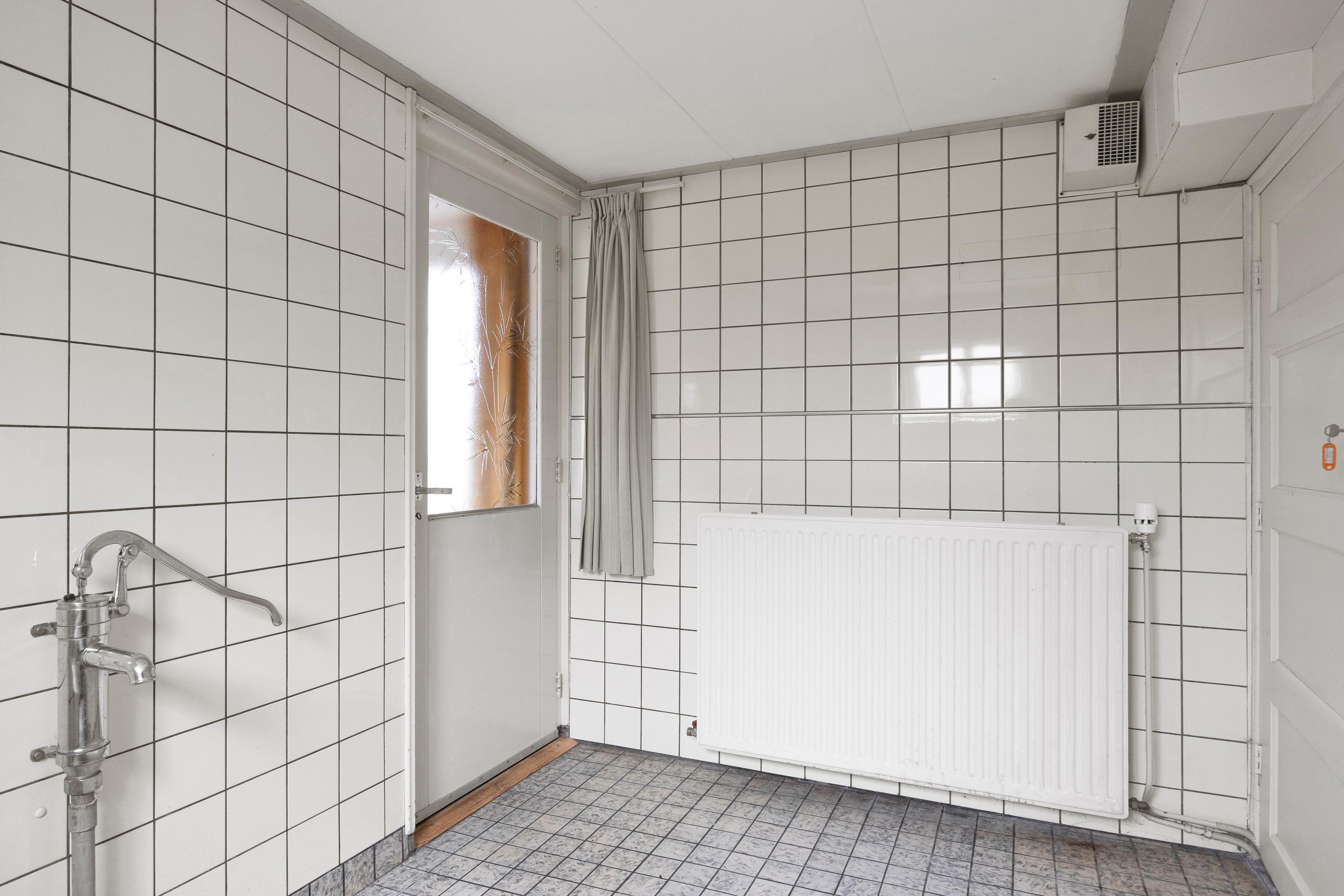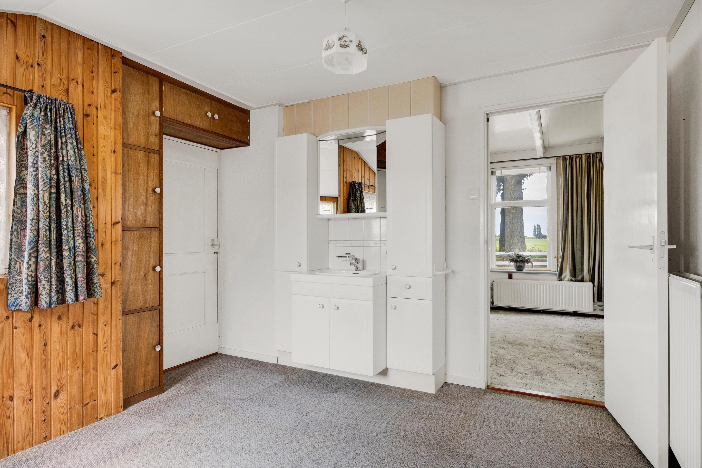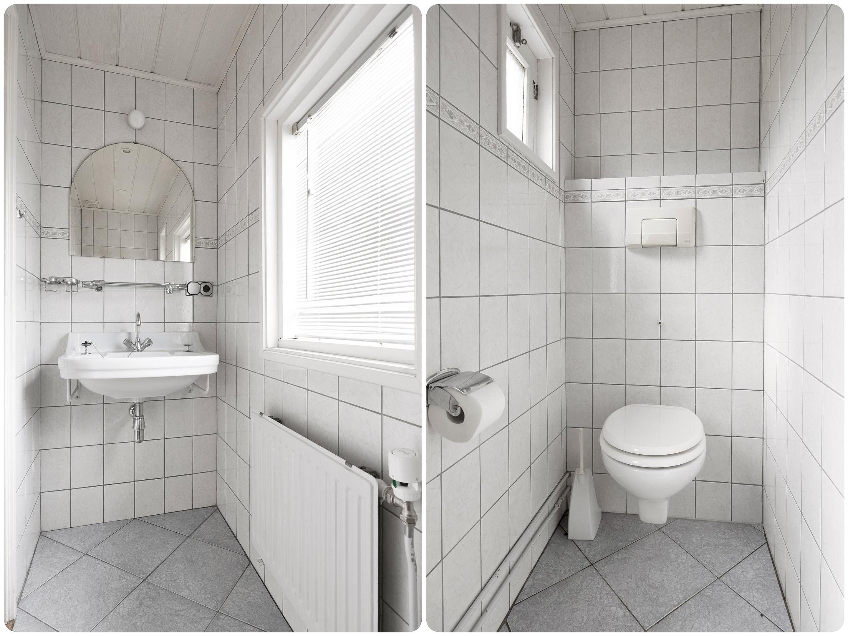 Nadat we de auto geparkeerd hebben op het ruime erf betreden we de woning via de achterdeur aan de rechterzijde, in deze regio is het normaal om achterom te komen dus laten we daar beginnen met de rondleiding. We komen via de achterdeur in de hal met rechts toegang tot de aangebouwde houten garage van ca. 6.50x2.75 m., via de garage kun je ook weer in de aangebouwde stenen berging komen, deze is ca. 7.70x2.95 m. Naast de sten berging is nog een houten berging aangebouwd van ca. 4,75x4.40m. deze is via buitenom toegankelijk. Links van de hal komen we in de bijkeuken, hier bevindt zich ook de doucheruimte, via de bijkeuken komen we in de keuken met eenvoudige rechte keukenopstelling, een inbouwkast met de cv-installatie en een deur met daarachter de trapopgang, via de keuken kom je links in de hal bij de voordeur, hier bevindt zich het toilet en de kelder, lopen we door dan komen we in de riante woonkamer met uiteraard dat fantastische uitzicht over de landerijen, er zijn meerdere inbouwkasten. In een deel van deze woonkamer bevond zich vroeger het winkeltje. Naast de woonkamer is een 2e woonkamer met daarachter een slaapkamer met wastafelmeubel.