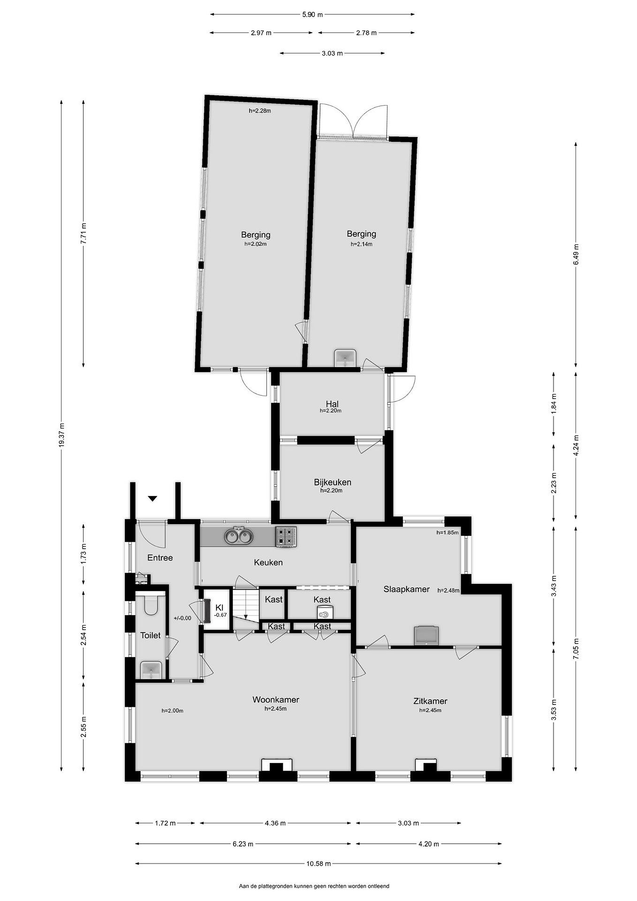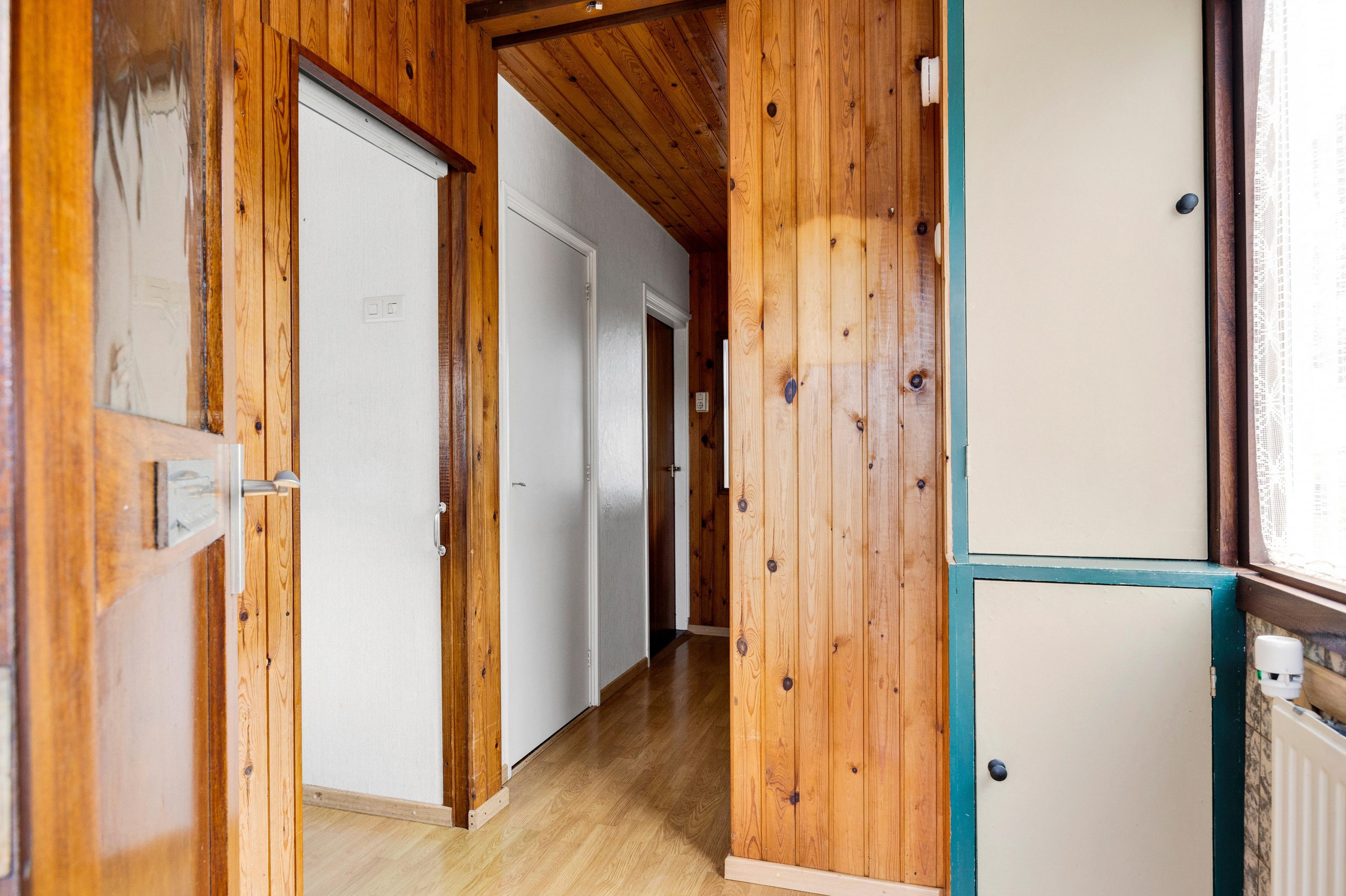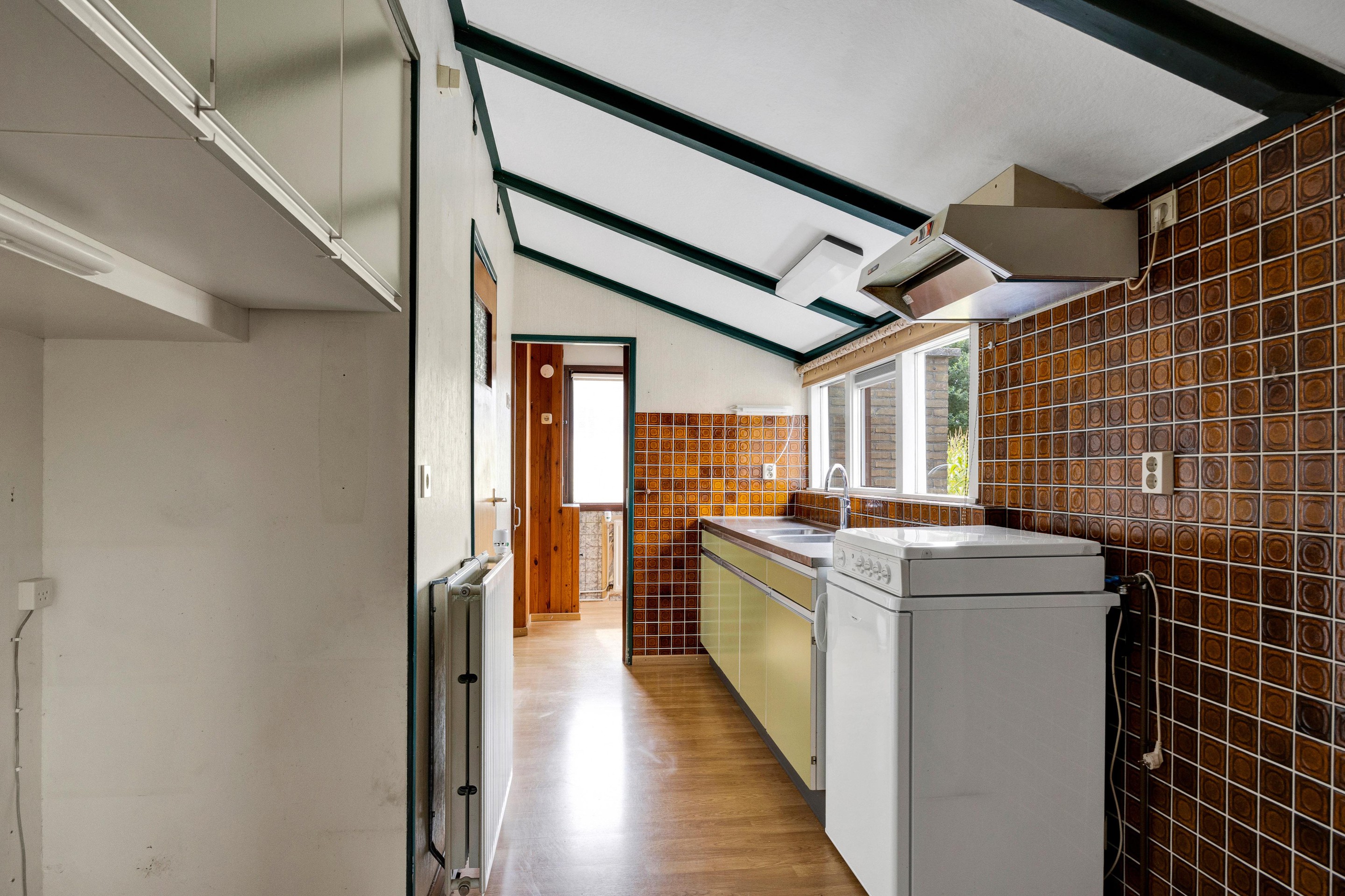 Nadat we de auto geparkeerd hebben op het ruime erf betreden we de woning via de achterdeur aan de rechterzijde, in deze regio is het normaal om achterom te komen dus laten we daar beginnen met de rondleiding. We komen via de achterdeur in de hal met rechts toegang tot de aangebouwde houten garage van ca. 6.50x2.75 m., via de garage kun je ook weer in de aangebouwde stenen berging komen, deze is ca. 7.70x2.95 m. Naast de sten berging is nog een houten berging aangebouwd van ca. 4,75x4.40m. deze is via buitenom toegankelijk. Links van de hal komen we in de bijkeuken, hier bevindt zich ook de doucheruimte, via de bijkeuken komen we in de keuken met eenvoudige rechte keukenopstelling, een inbouwkast met de cv-installatie en een deur met daarachter de trapopgang, via de keuken kom je links in de hal bij de voordeur, hier bevindt zich het toilet en de kelder, lopen we door dan komen we in de riante woonkamer met uiteraard dat fantastische uitzicht over de landerijen, er zijn meerdere inbouwkasten. In een deel van deze woonkamer bevond zich vroeger het winkeltje. Naast de woonkamer is een 2e woonkamer met daarachter een slaapkamer met wastafelmeubel.