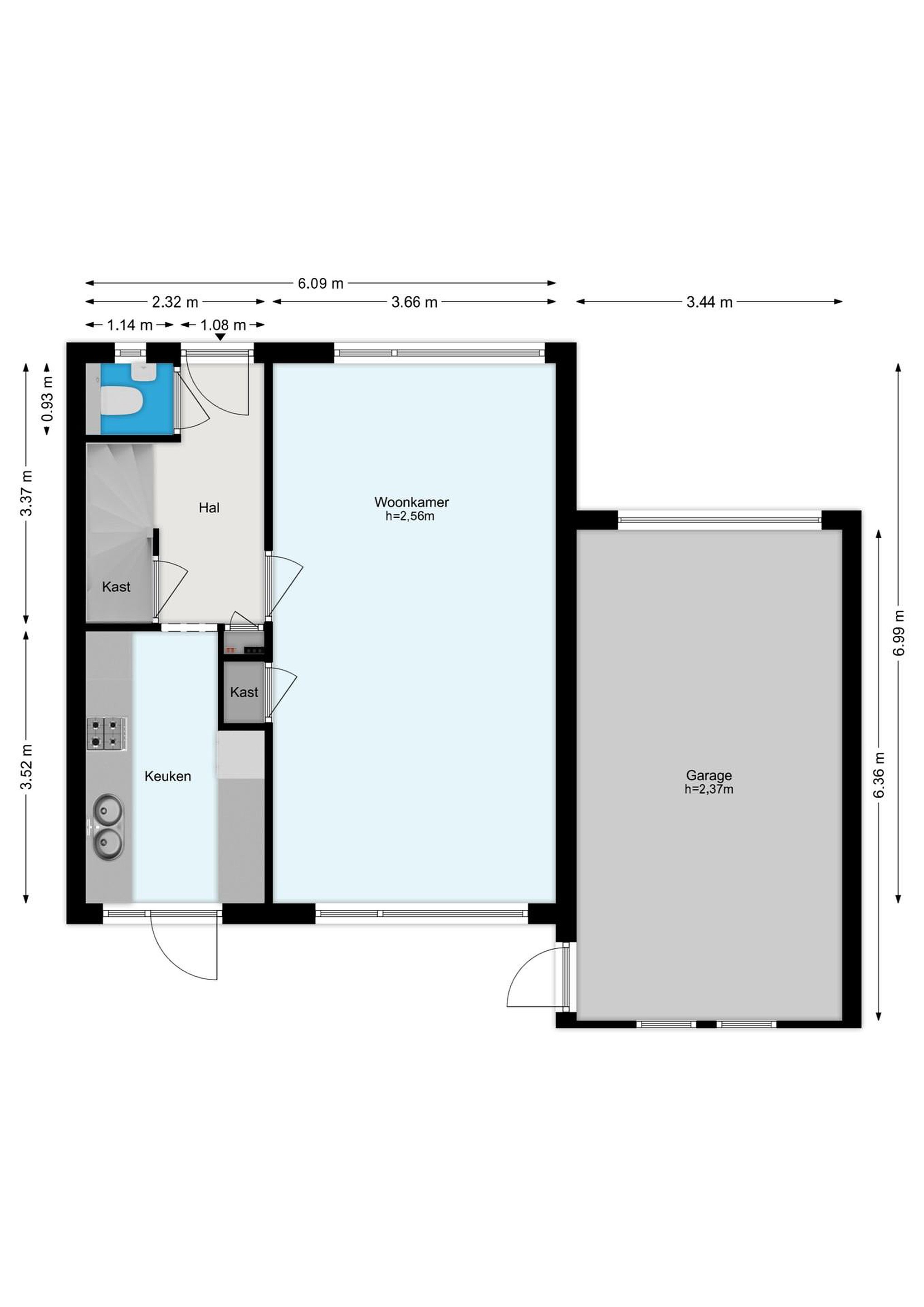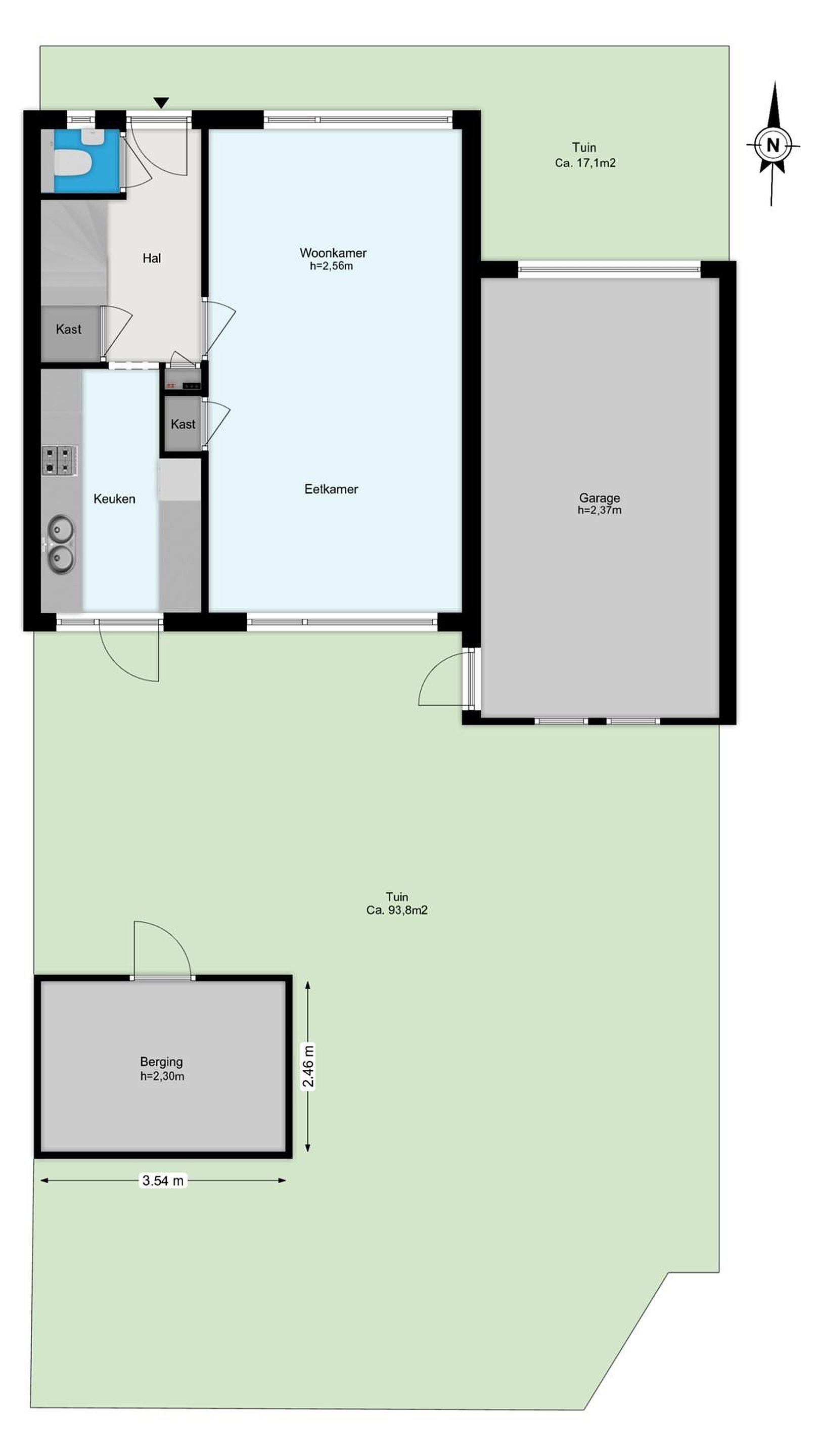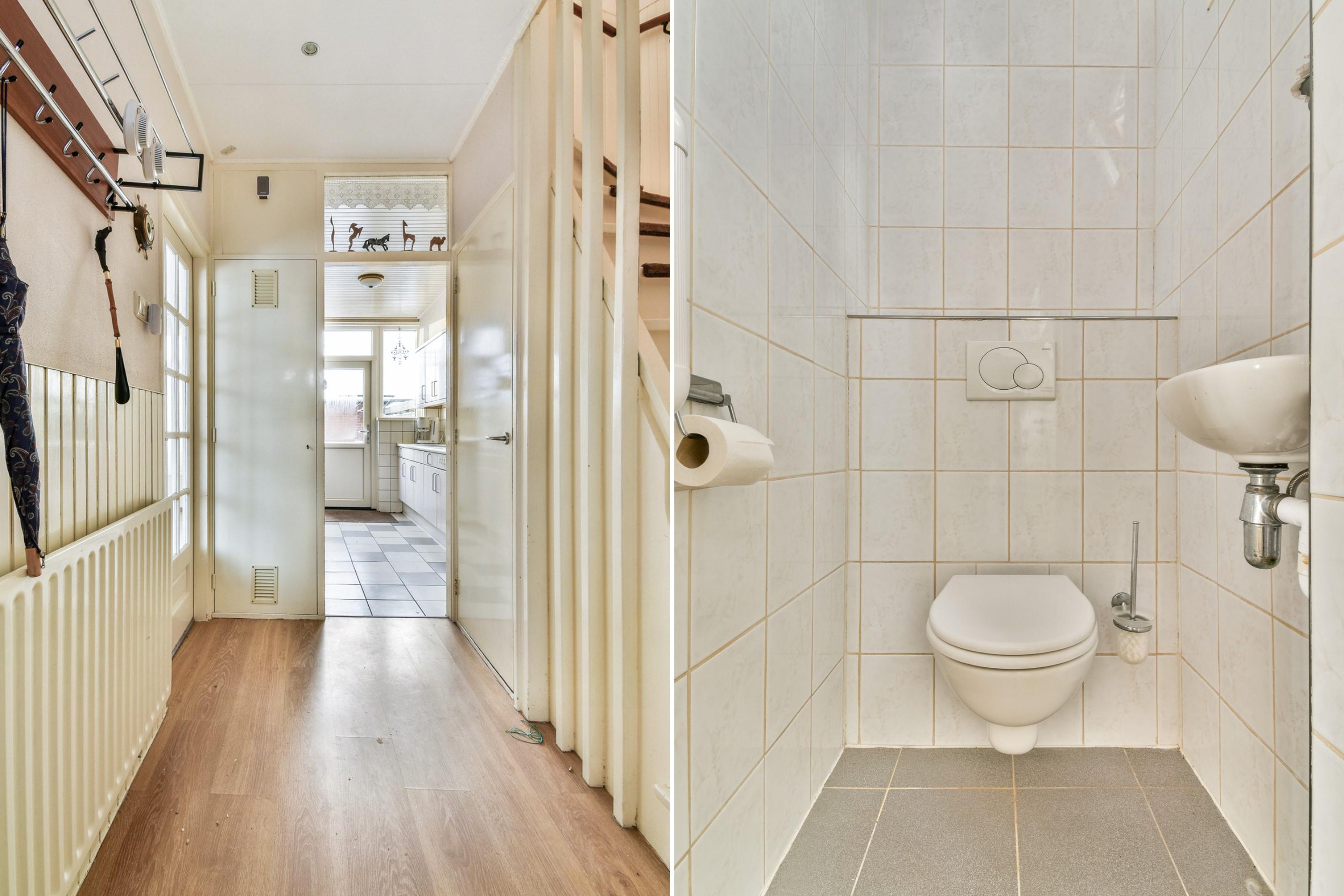 Begane grond Entree in de hal met de volledig betegelde toiletruimte voorzien van een zwevend toilet en een fonteintje, de trapopgang, de garderoberuimte, de trap- en meterkast. Vanuit de hal is er toegang tot de keuken en de woonkamer. Deze zonnige doorzonwoonkamer biedt een praktische vaste bergkast en grote raampartijen met een mooi zicht op de landelijke omgeving. Aan de voorzijde is voldoende ruimte voor een zitgedeelte, terwijl de achterzijde zich uitstekend leent als eetgedeelte. Het raam in de achtergevel is voorzien van een screen en een zonnescherm. De keuken is geplaatst in een parallelle opstelling en beschikt onder meer over een (gas)kookplaat, losstaande vaatwasser en magnetron, ingebouwde oven en een koel-vriescombinatie. Vanuit de keuken is de achtergelegen tuin te bereiken.