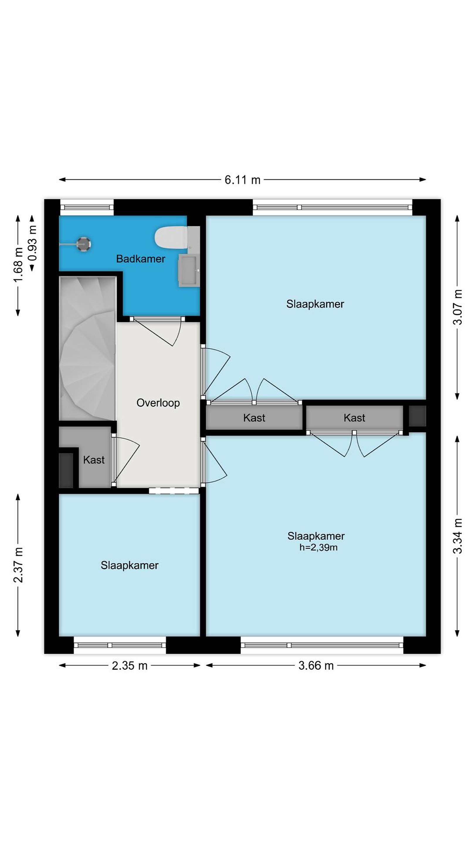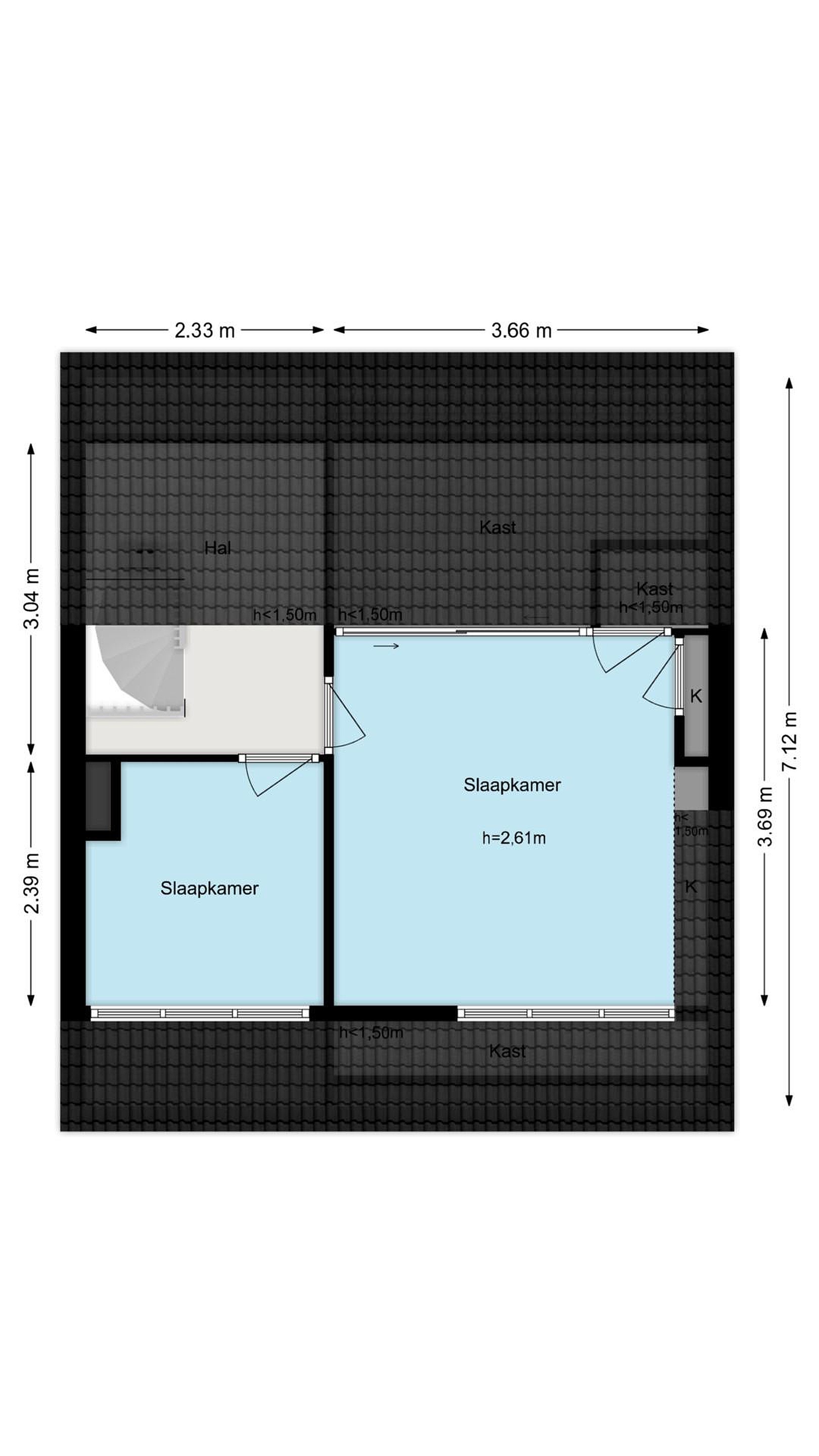 Eerste verdieping De overloop beschikt over een vaste kast en biedt toegang tot de eerste drie slaapkamers, de badkamer en de trapopgang naar de tweede etage. De eerste slaapkamer is gelegen aan de straatzijde van de woning en is uitgerust met vaste kastruimte. De ruime tweede slaapkamer biedt een mooi uitzicht over het polderlandschap, is voorzien van vaste kastruimte en een elektrisch screen. Ook de derde slaapkamer is gelegen aan de tuinzijde van de woning en is eveneens uitgerust met een vaste kast en een elektrisch screen. De geheel betegelde badkamer biedt een tweede zwevend toilet, een inloopdouche en een wasmeubel met opbergmogelijkheden en wastafel.