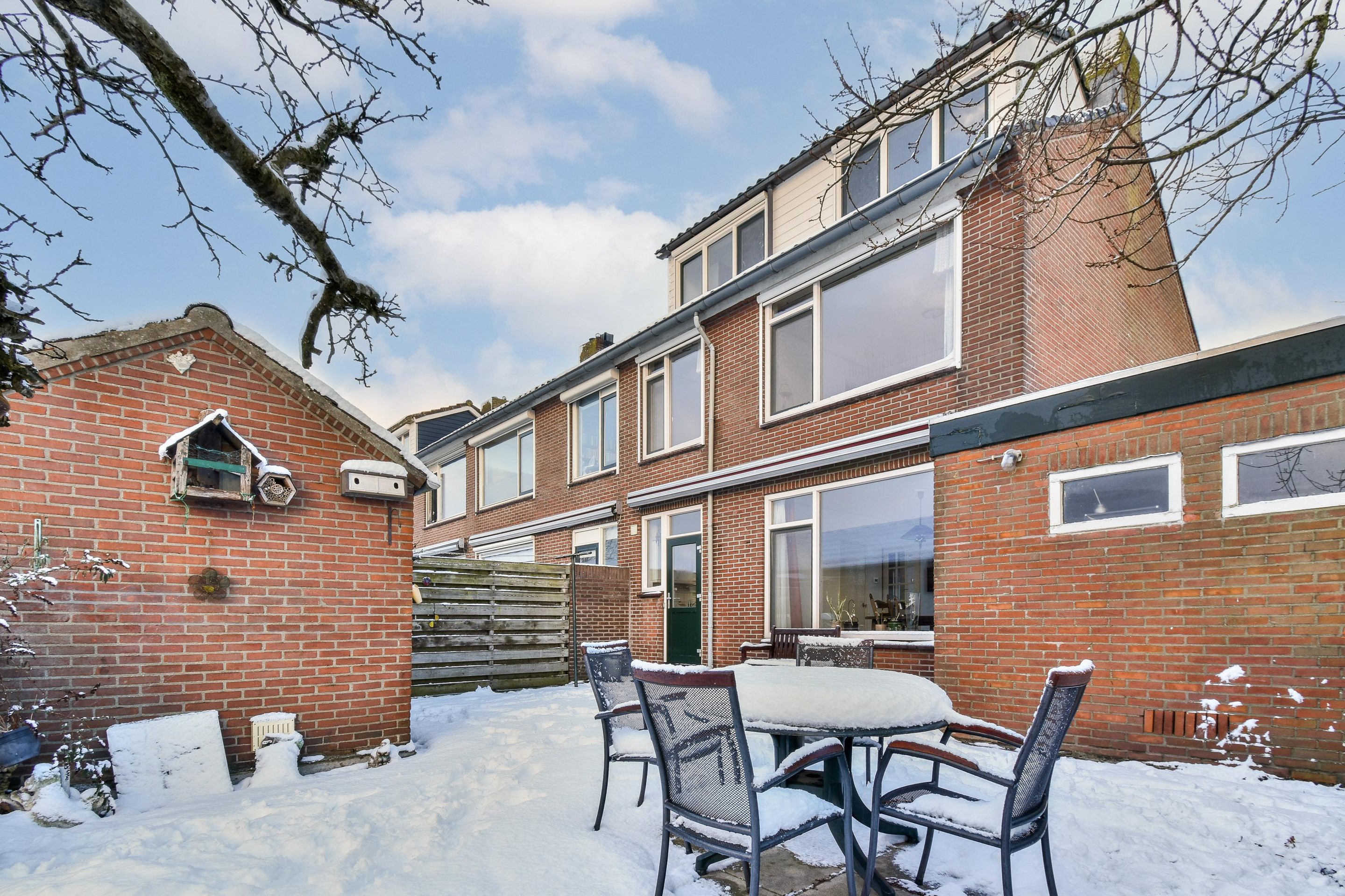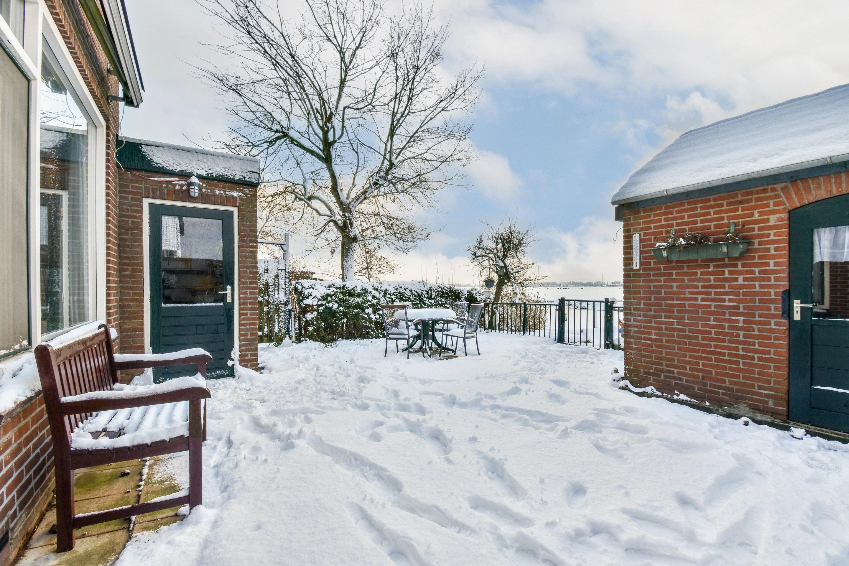Een eyecatcher van de woning is de onderhoudsvriendelijke en op het zuiden gelegen achtertuin (ca. 100m2) welke direct aan de Achterwetering grenst en een werkelijk schitterend uitzicht over het achtergelegen polderlandschap geeft. Alhoewel de tuin direct aan water ligt, wat garant staat voor uren water- en ijspret, is deze, d.m.v. het metalen hek, wat de tuin in twee delen verdeelt, uiterst kindvriendelijk. Het gedeelte aan het water is voorzien van een steiger van waaruit je zo het water in plonst. Het gedeelte aan de gevel is toegankelijk vanuit de keuken en de garage, is voorzien van een elektrisch zonnescherm en een achterom en biedt toegang tot de praktisch stenen berging (ca. 9 m2).