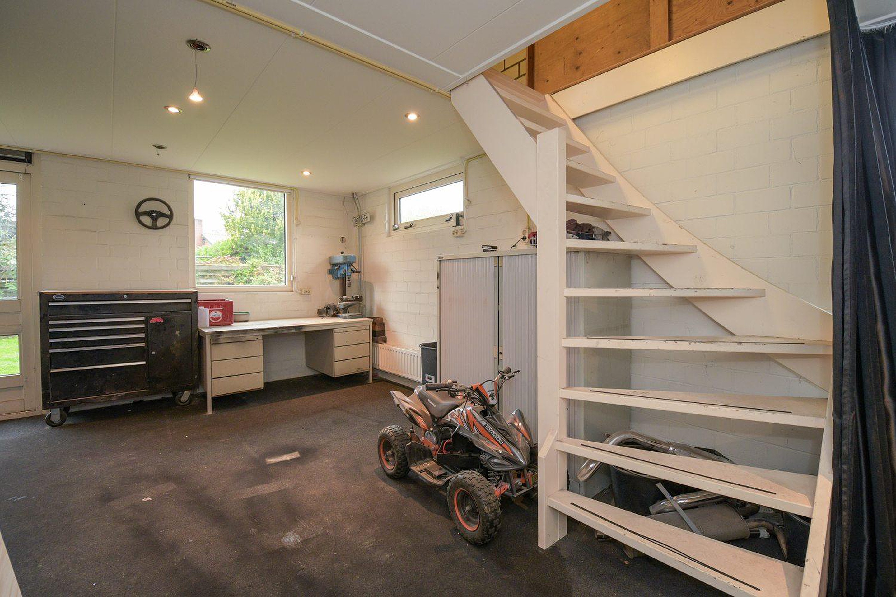 Tuin De woning ligt op een ruim perceel van 665 m2 met volop privacy, parkeergelegenheid op eigen terrein en mogelijkheden voor tuinliefhebbers. De tuin is gelegen het zuidwesten en is voorzien van veel groen. Op het perceel staat een vrijstaande stenen bijgebouw met eigen voorzieningen, welke extra mogelijkheden biedt. Het bijgebouw met kap heeft kunststof kozijnen aan de voorzijde, in spouw uitgevoerd en is geïsoleerd. Op de vliering bevindt zich de CV ketel, merk AWB met bouwjaar 2004. Daarnaast is er nog een vrijstaande schuur van plaatstaal, onderhoudsvrij en duurzaam.