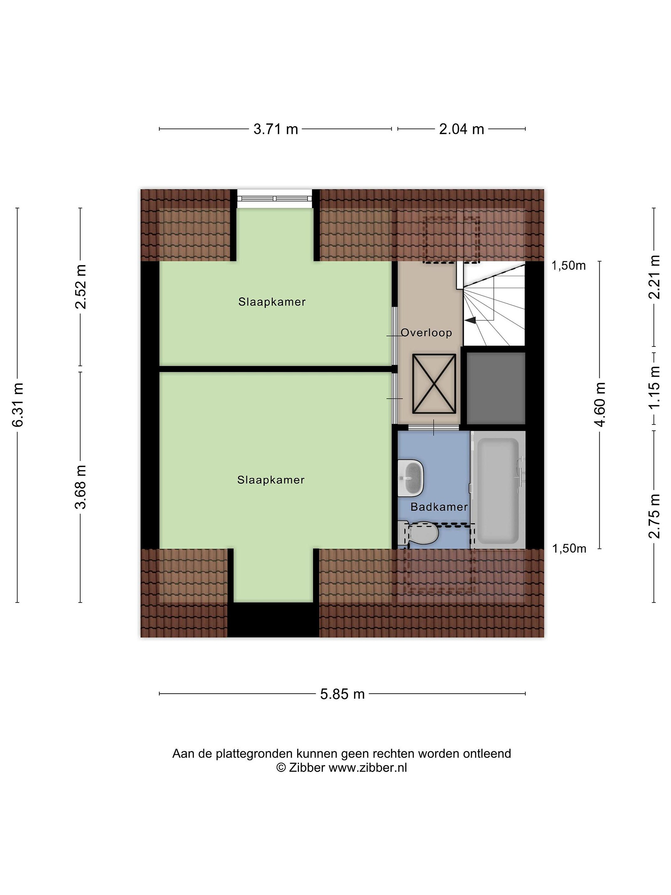 Tweede verdieping De tweede verdieping is ingedeeld met een overloop met bergkast, twee slaapkamers en een badkamer.