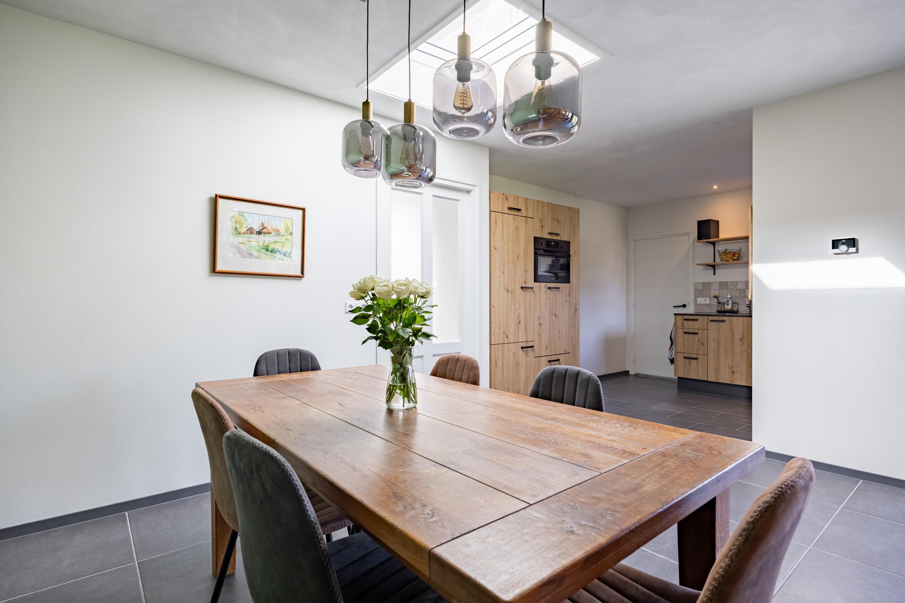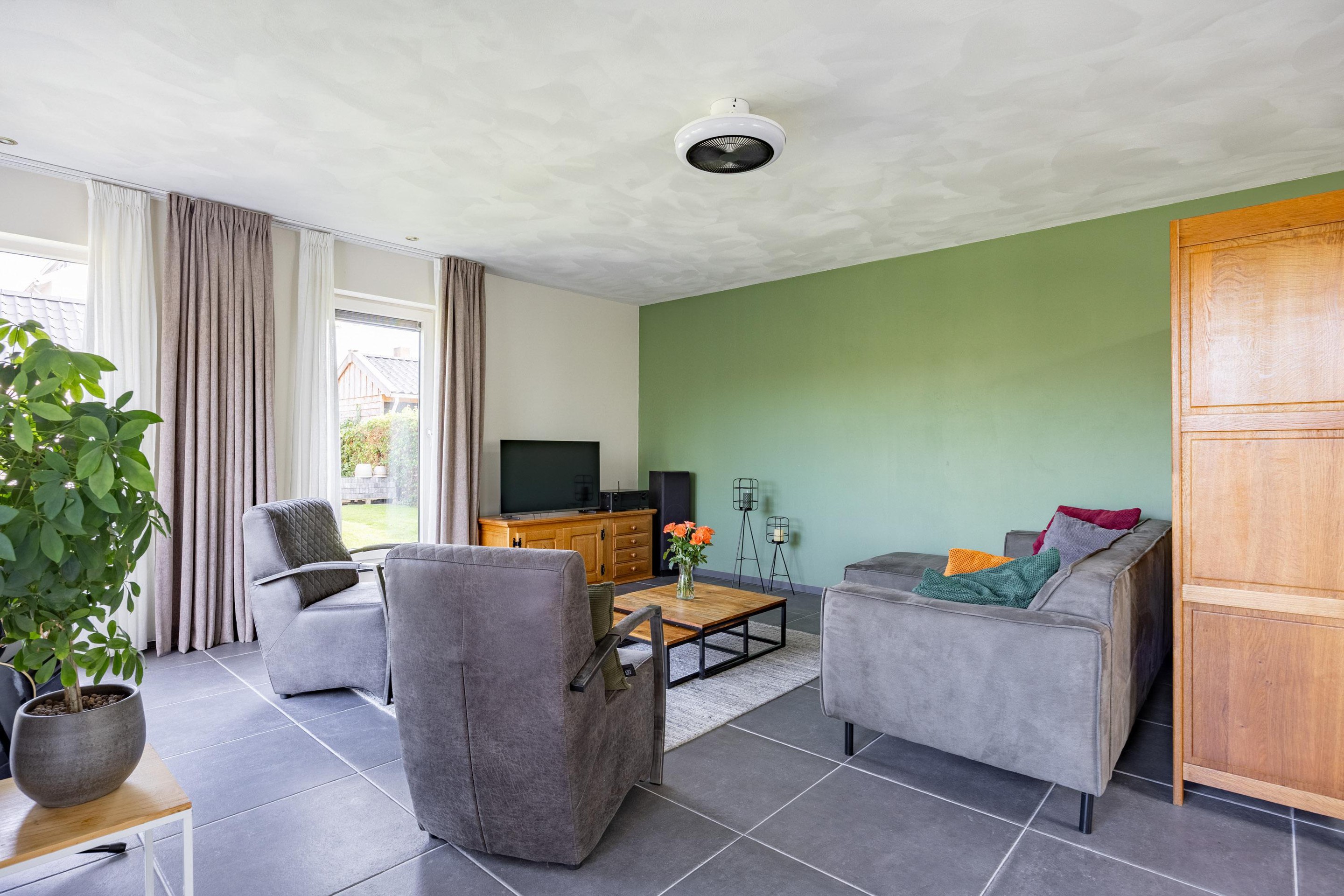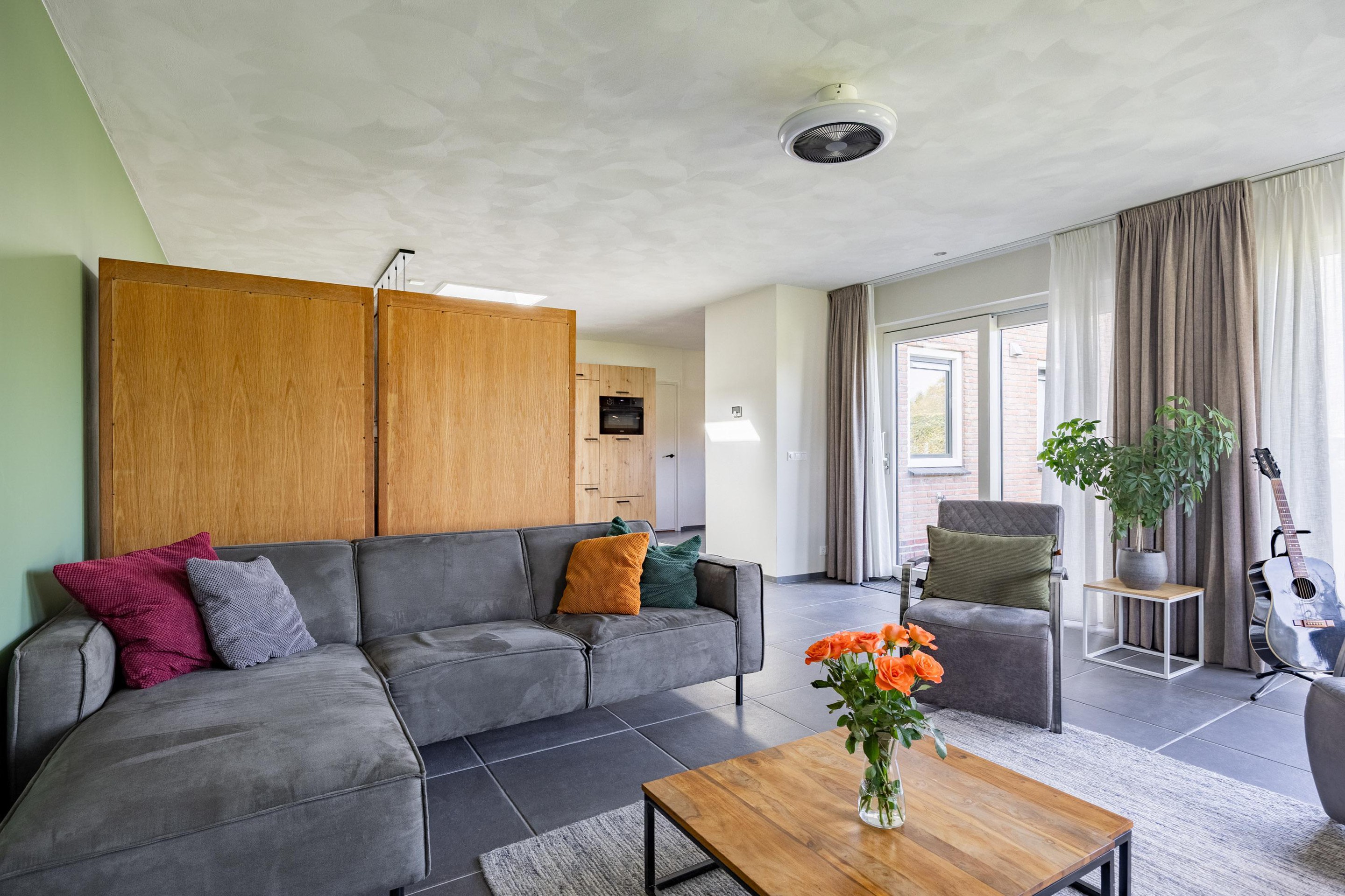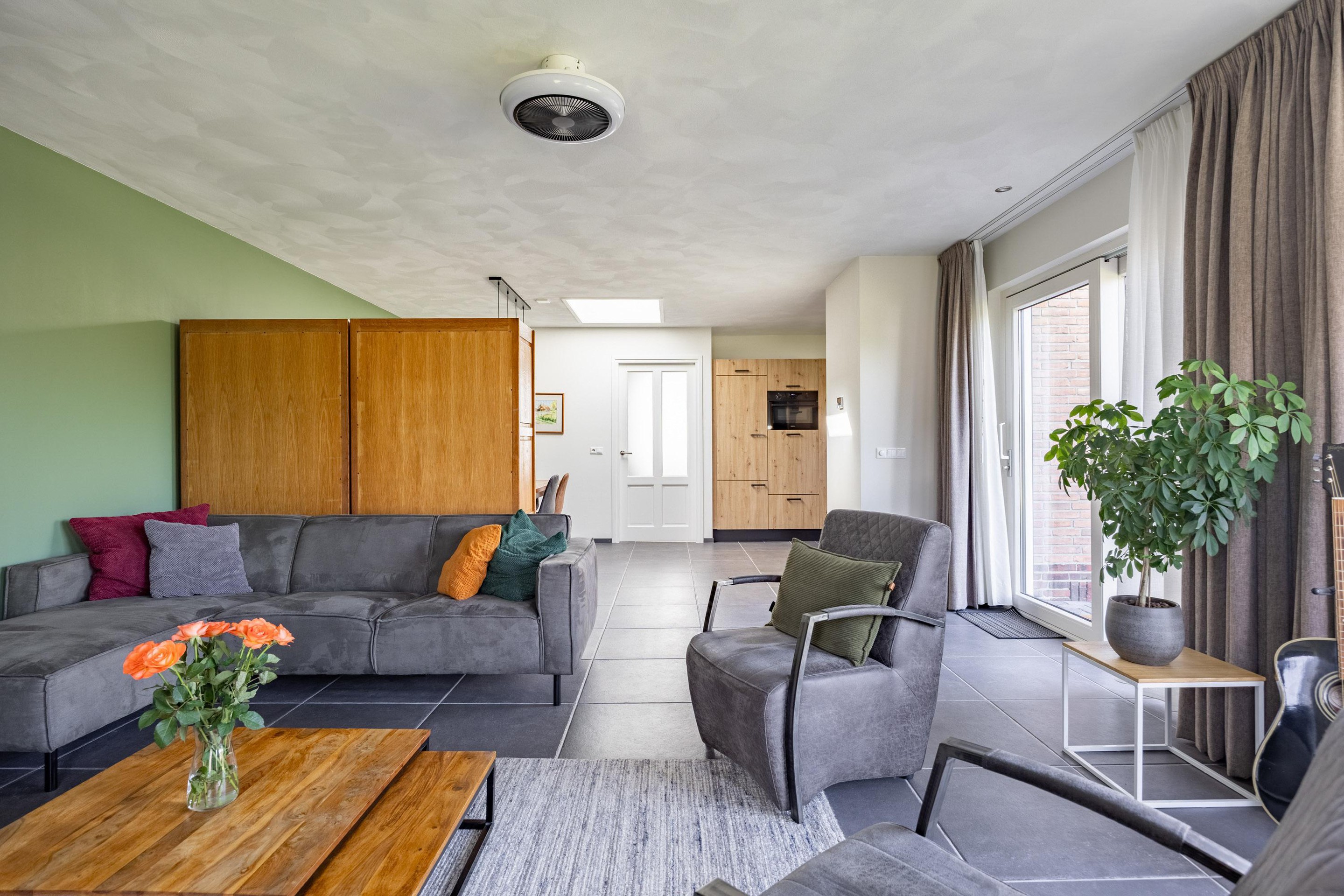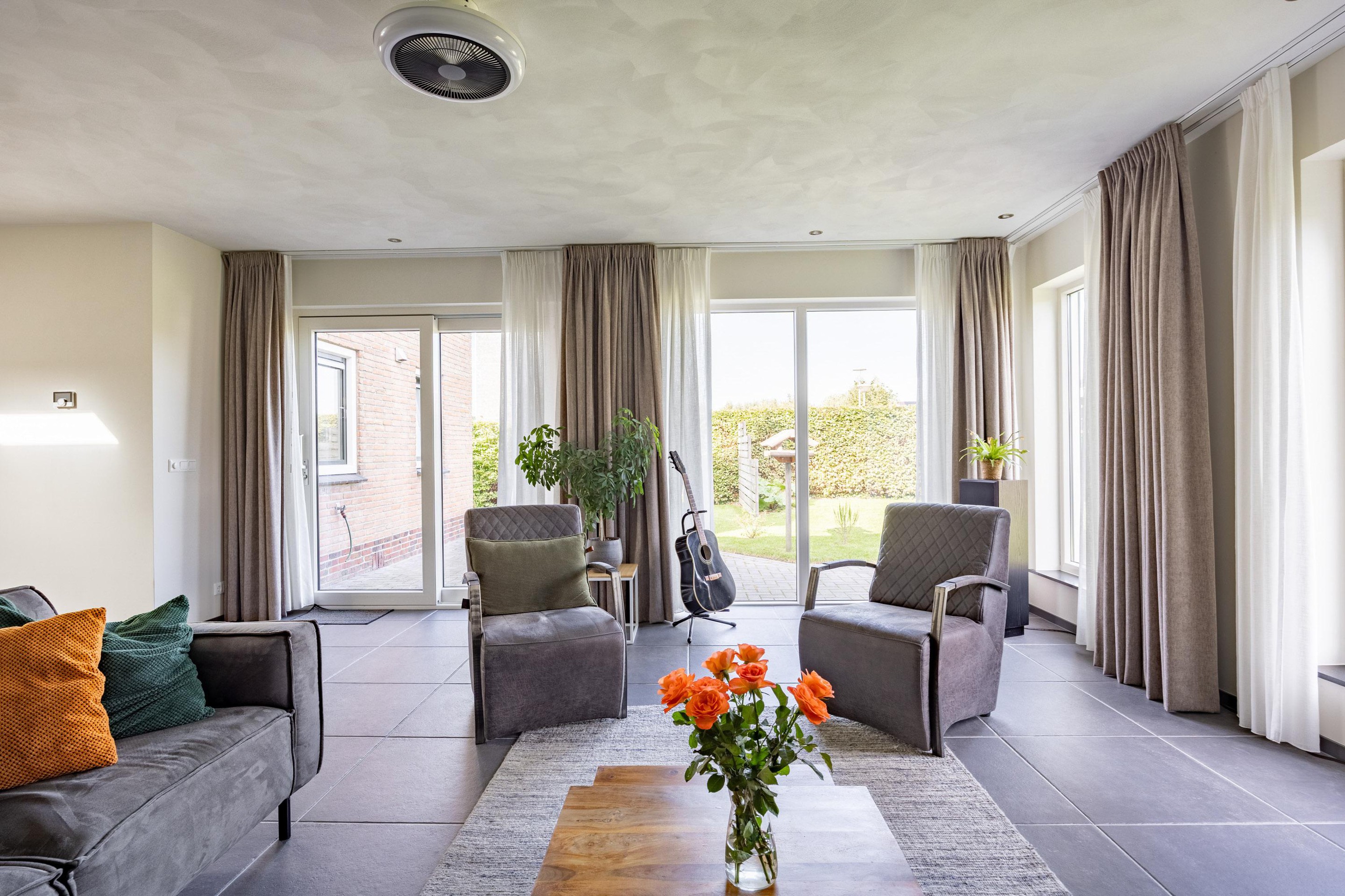 Aangrenzend aan de keuken vind je de ruime, lichte woonkamer. Het is zo’n plek waar je gezellig samenkomt – of je nu met z’n tweeën bent of met het hele gezin. Dankzij de grote schuifpui haal je het buitenleven naar binnen en loop je zo het terras op. Hier geniet je van zwoele zomeravonden, een kopje koffie in de ochtendzon of een gezellige borrel met vrienden.