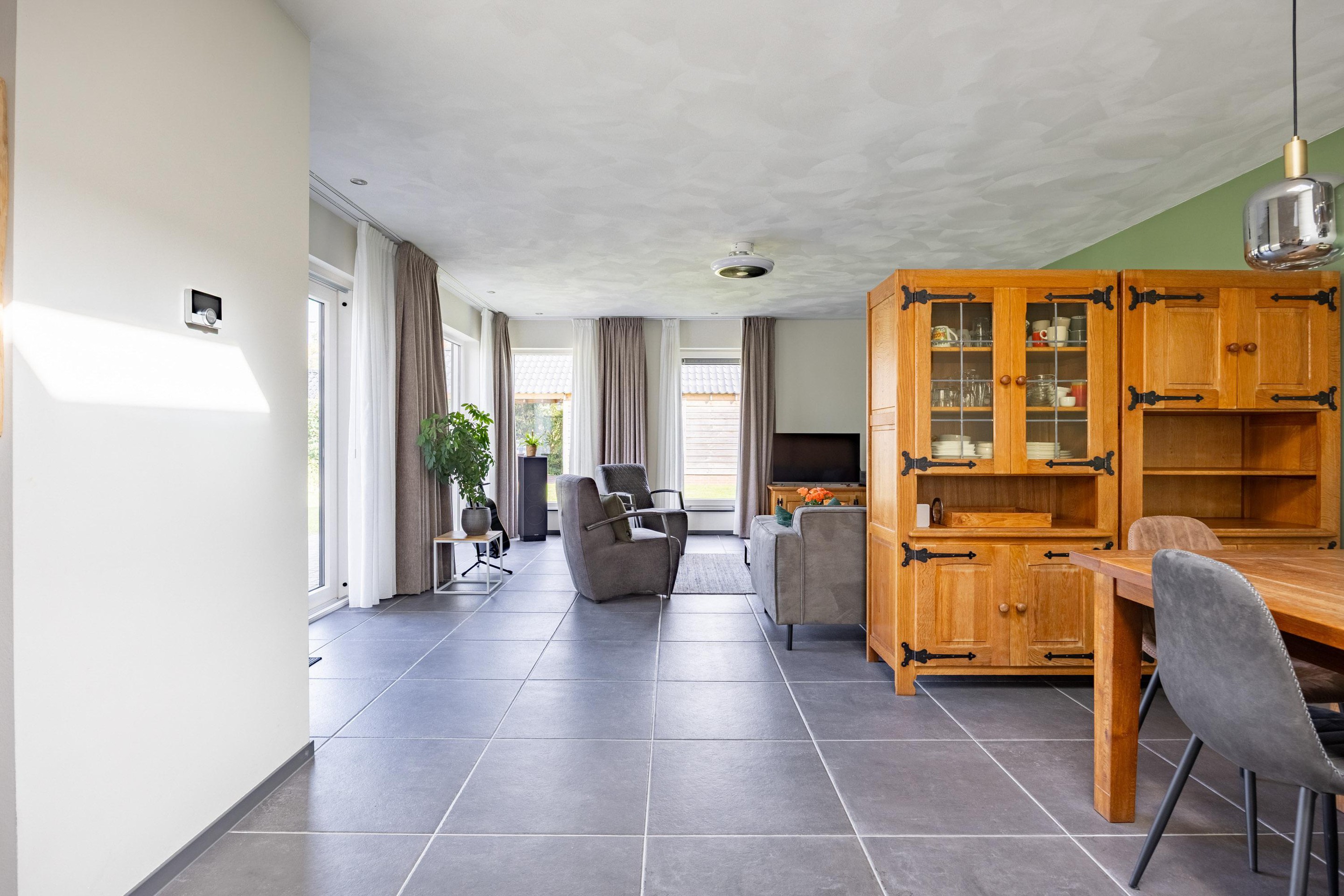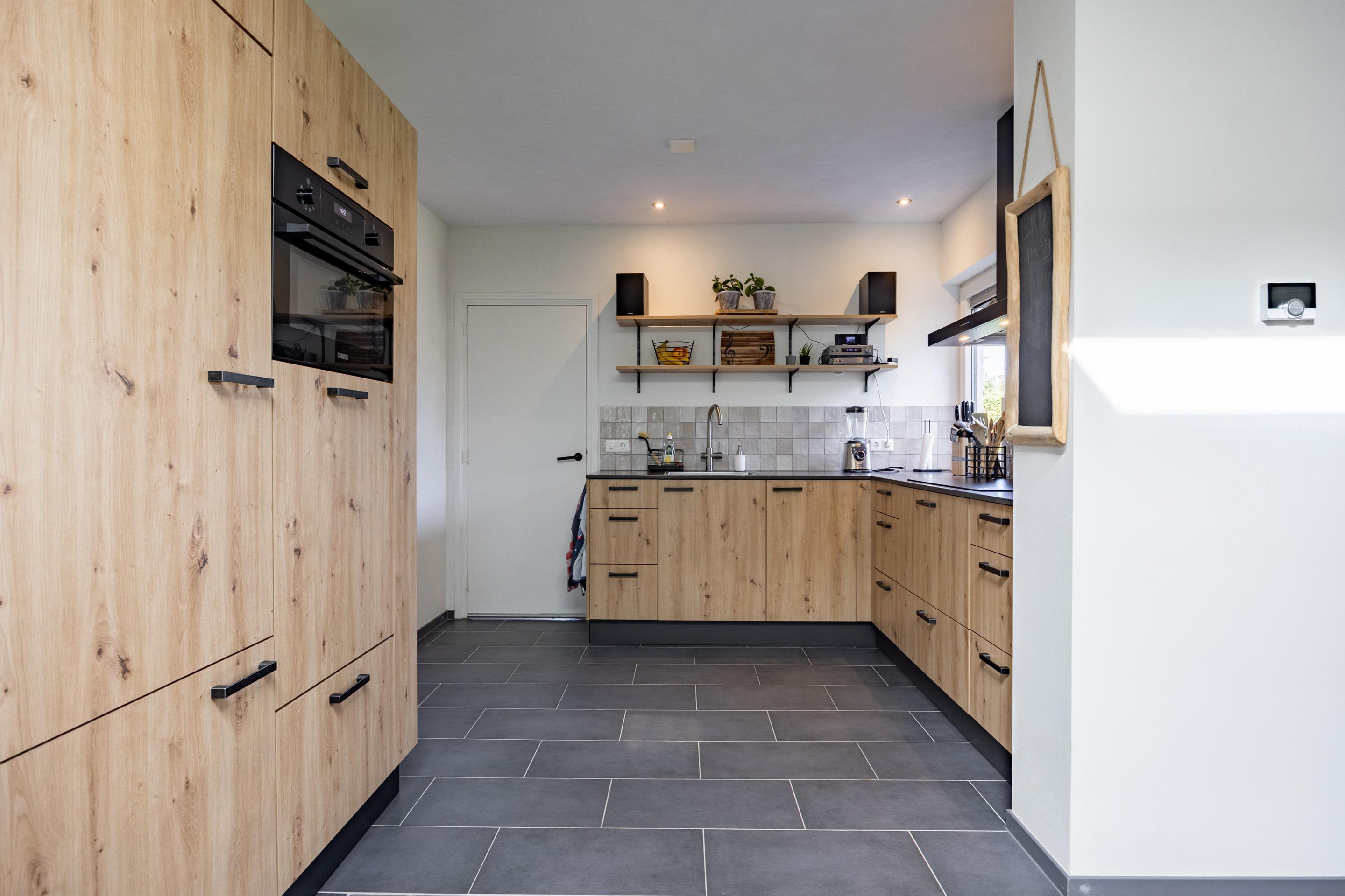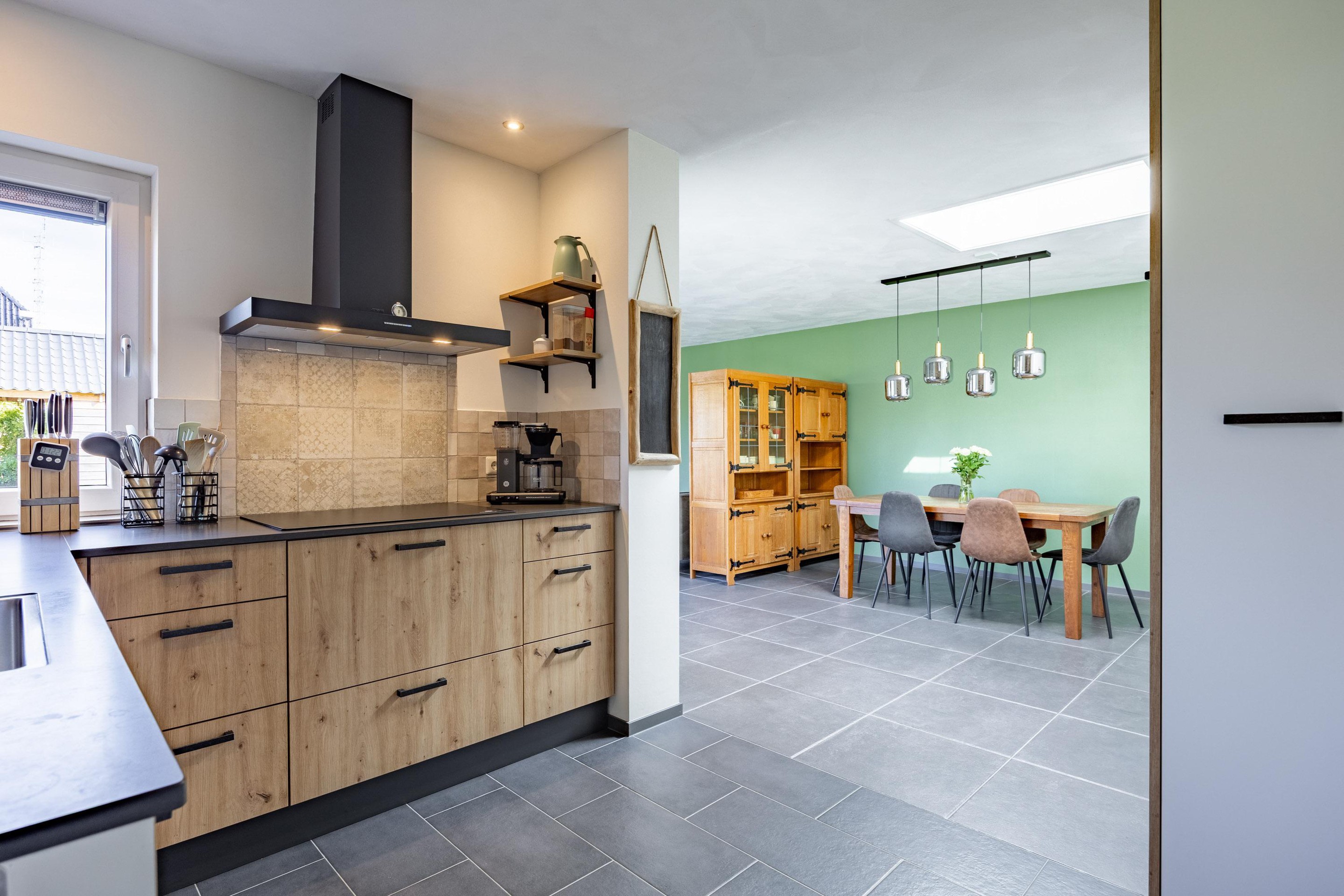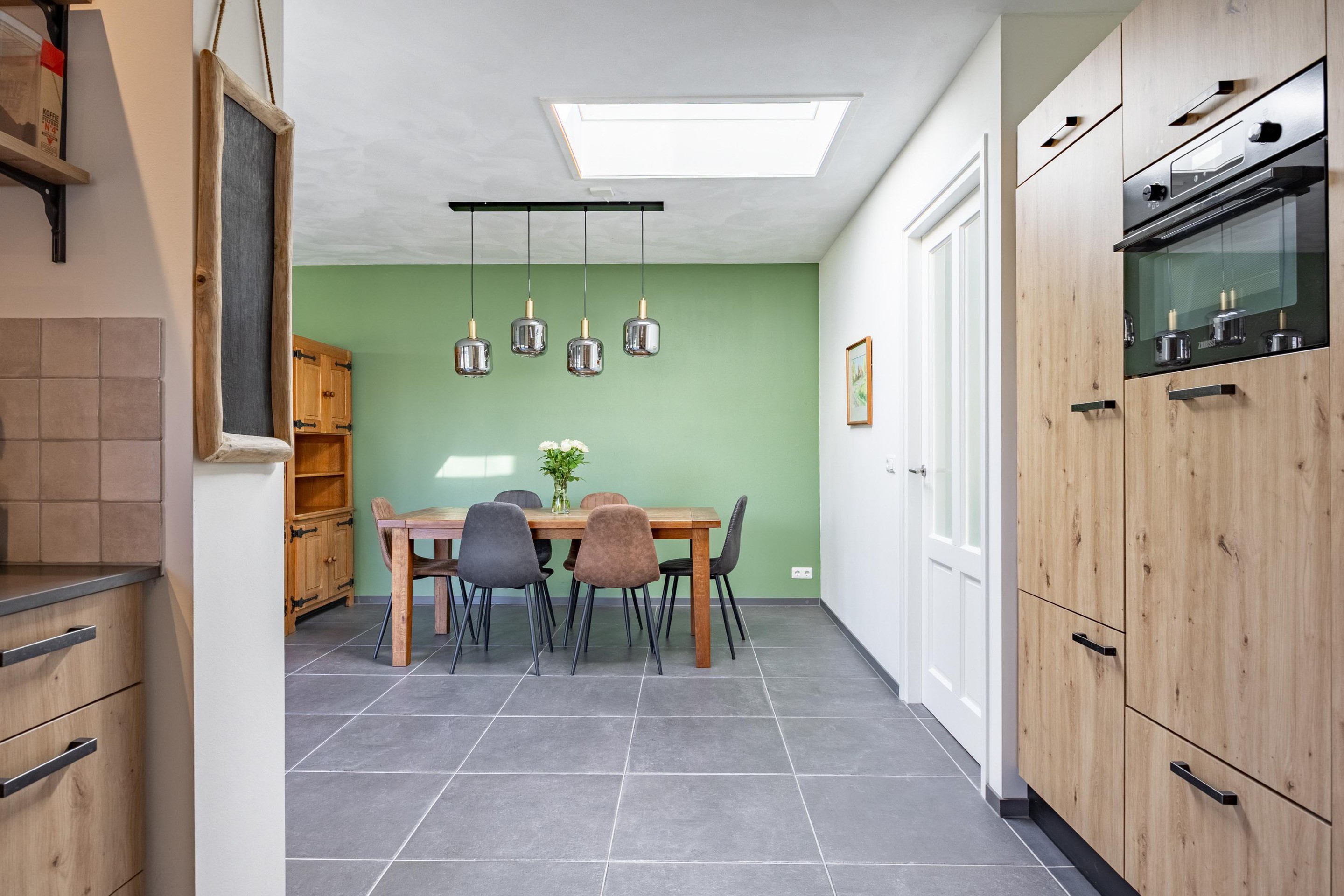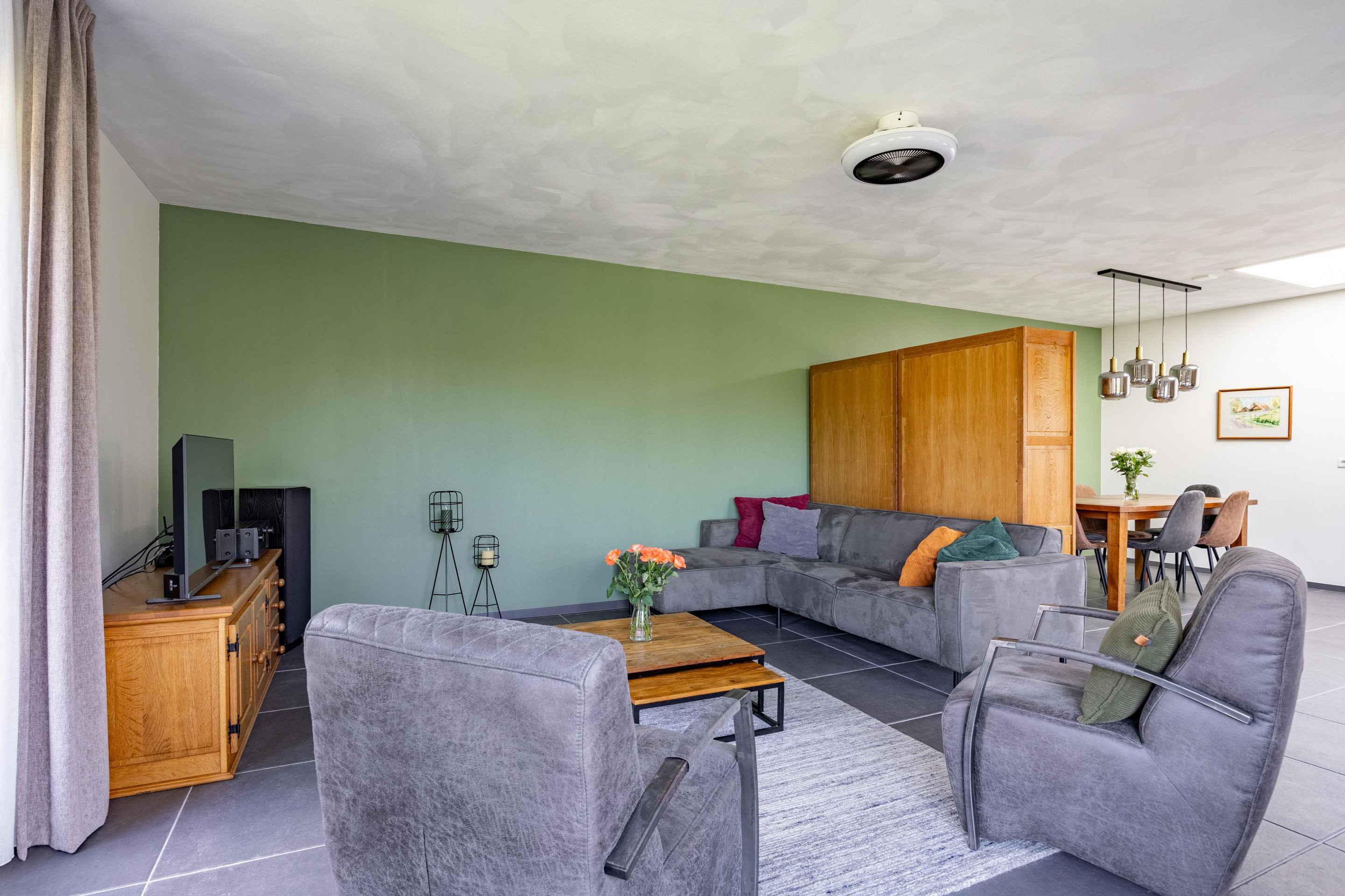 Aangrenzend aan de keuken vind je de ruime, lichte woonkamer. Het is zo’n plek waar je gezellig samenkomt – of je nu met z’n tweeën bent of met het hele gezin. Dankzij de grote schuifpui haal je het buitenleven naar binnen en loop je zo het terras op. Hier geniet je van zwoele zomeravonden, een kopje koffie in de ochtendzon of een gezellige borrel met vrienden.
