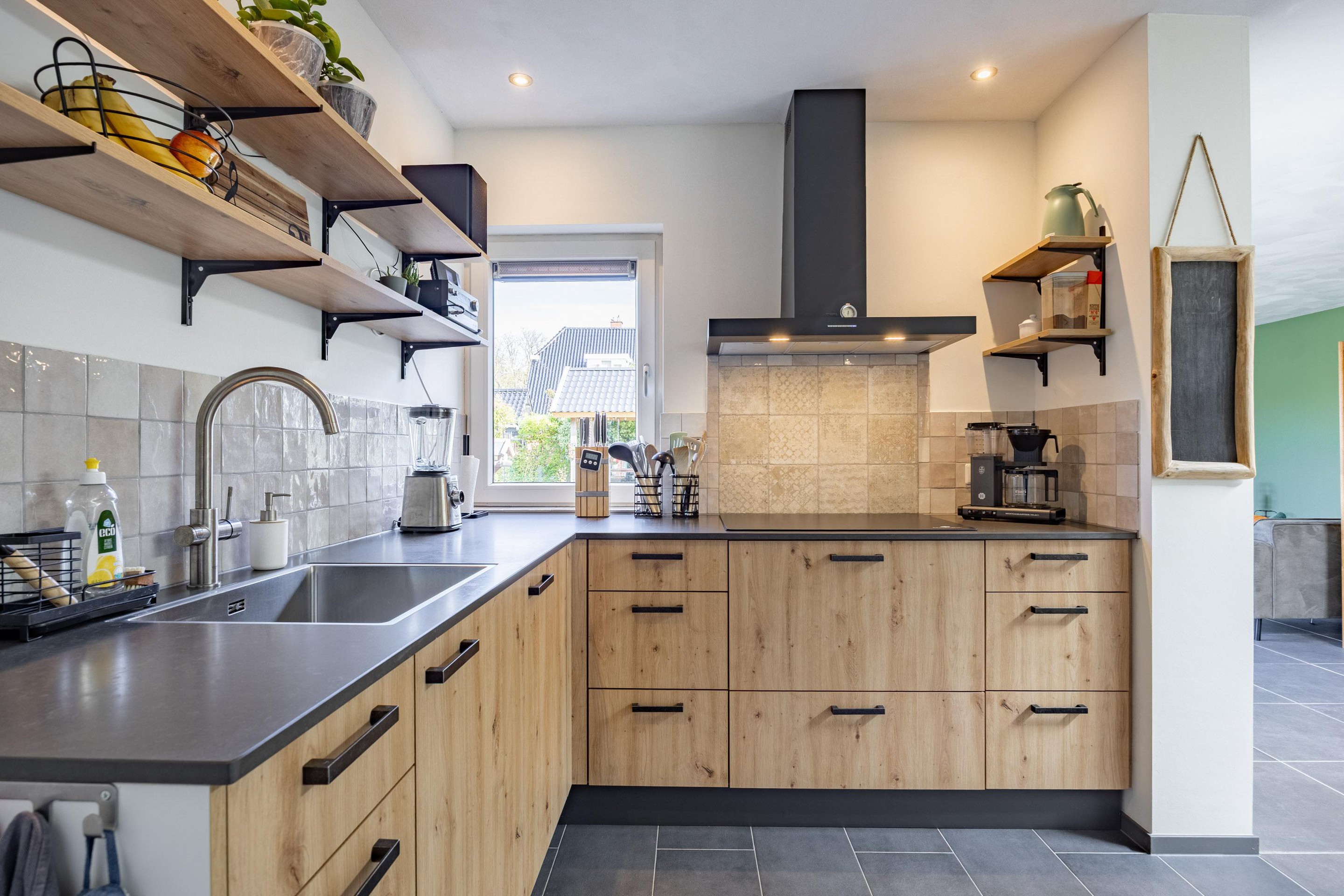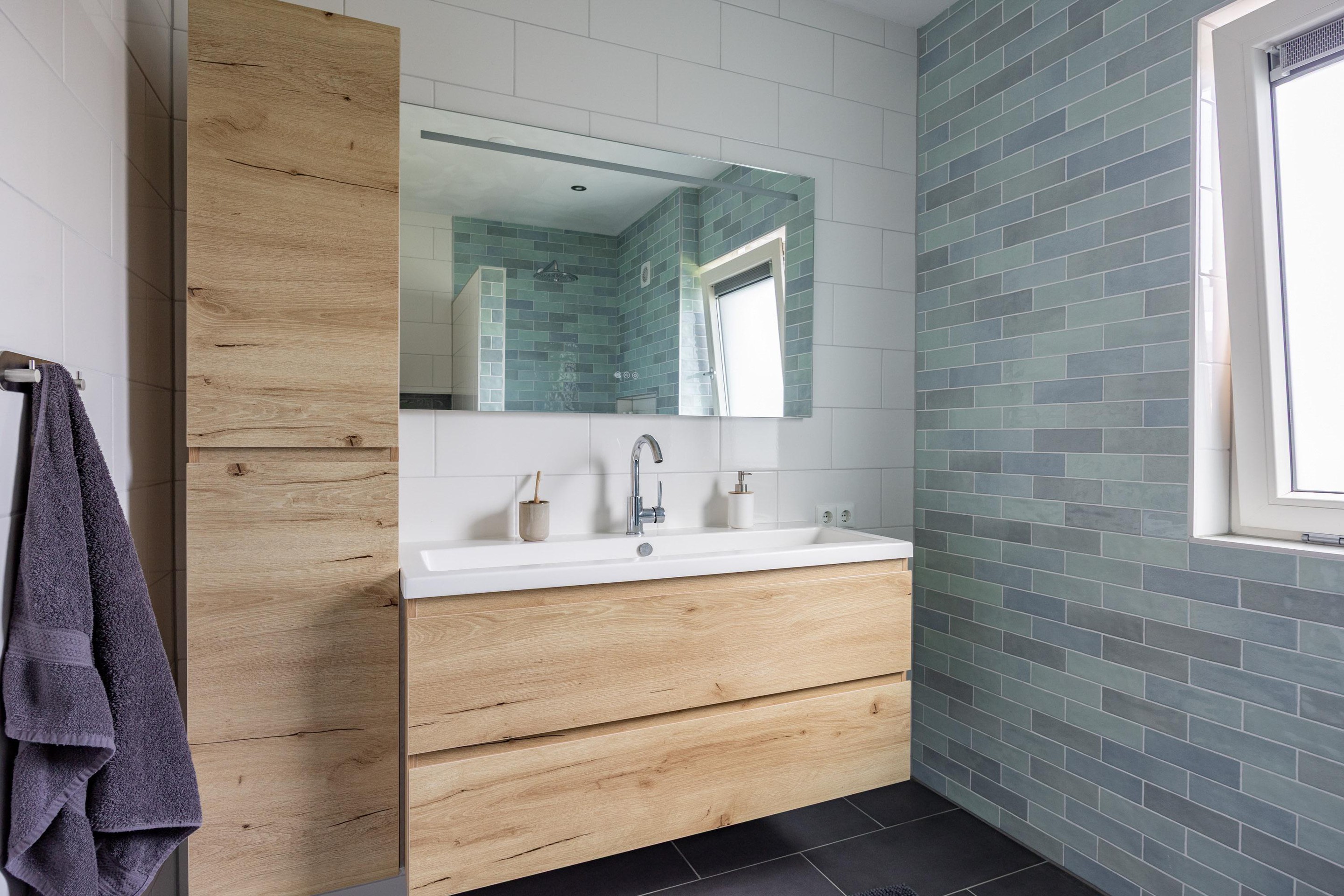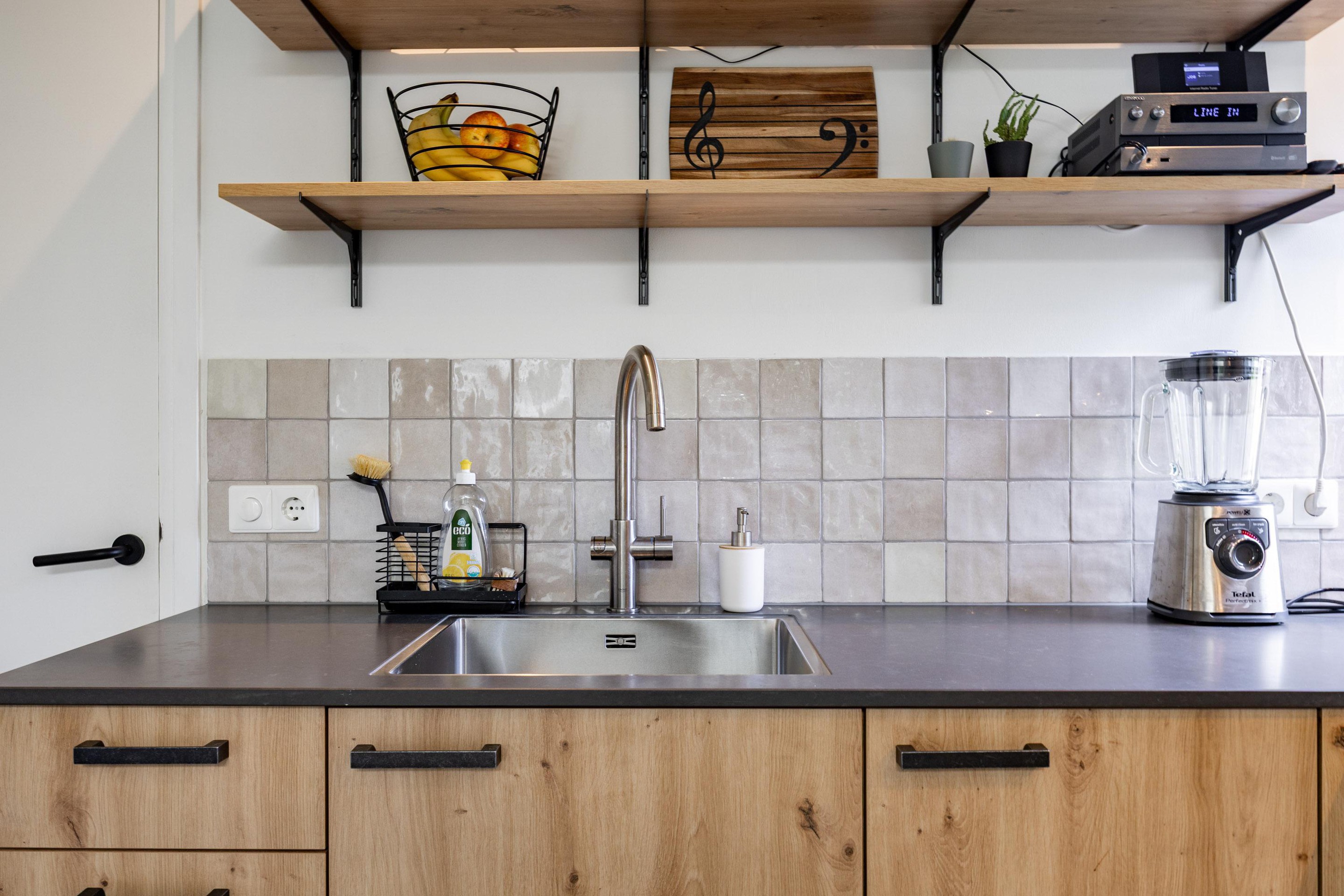 De badkamer op de begane grond is helemaal van nu: fris, strak en voorzien van alles wat je wenst – een luxe wandcloset, modern wastafelmeubel en riante inloopdouche. Hier begin en eindig je elke dag comfortabel. En dan de keuken! Half-open, heerlijk licht en slim opgezet in een hoekopstelling plus aparte apparatuurwand. Denk aan een inductiekookplaat, vaatwasser, koel- en vrieskast, afzuiging en – jawel – een Grohe Red kraan voor direct kokend water. Dat betekent snelle theetjes en schoonmaakklusjes; je wilt nooit meer anders!