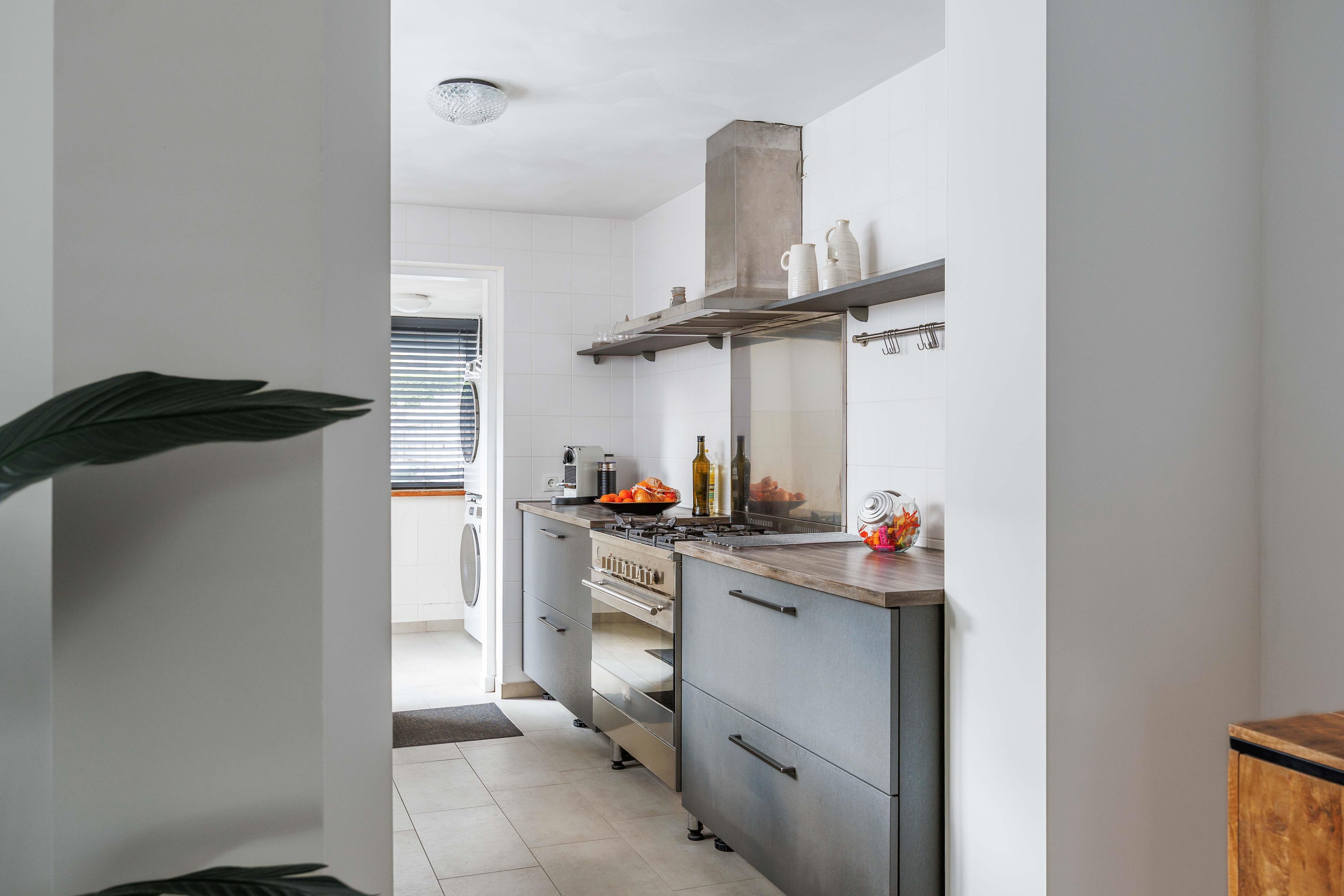 De halfopen keuken is helemaal van nu en heeft door de dubbele opstelling lekker veel werkruimte. Bereid met gemak de lekkerste maaltijden, want aan apparatuur geen gebrek: een vaatwasser, fornuis met afzuiging, koelkast en zelfs een aparte boiler staan voor je klaar. Echte thuiskoks kunnen hier hun geluk niet op, terwijl je dankzij het halfopen karakter altijd in contact blijft met de woonkamer.