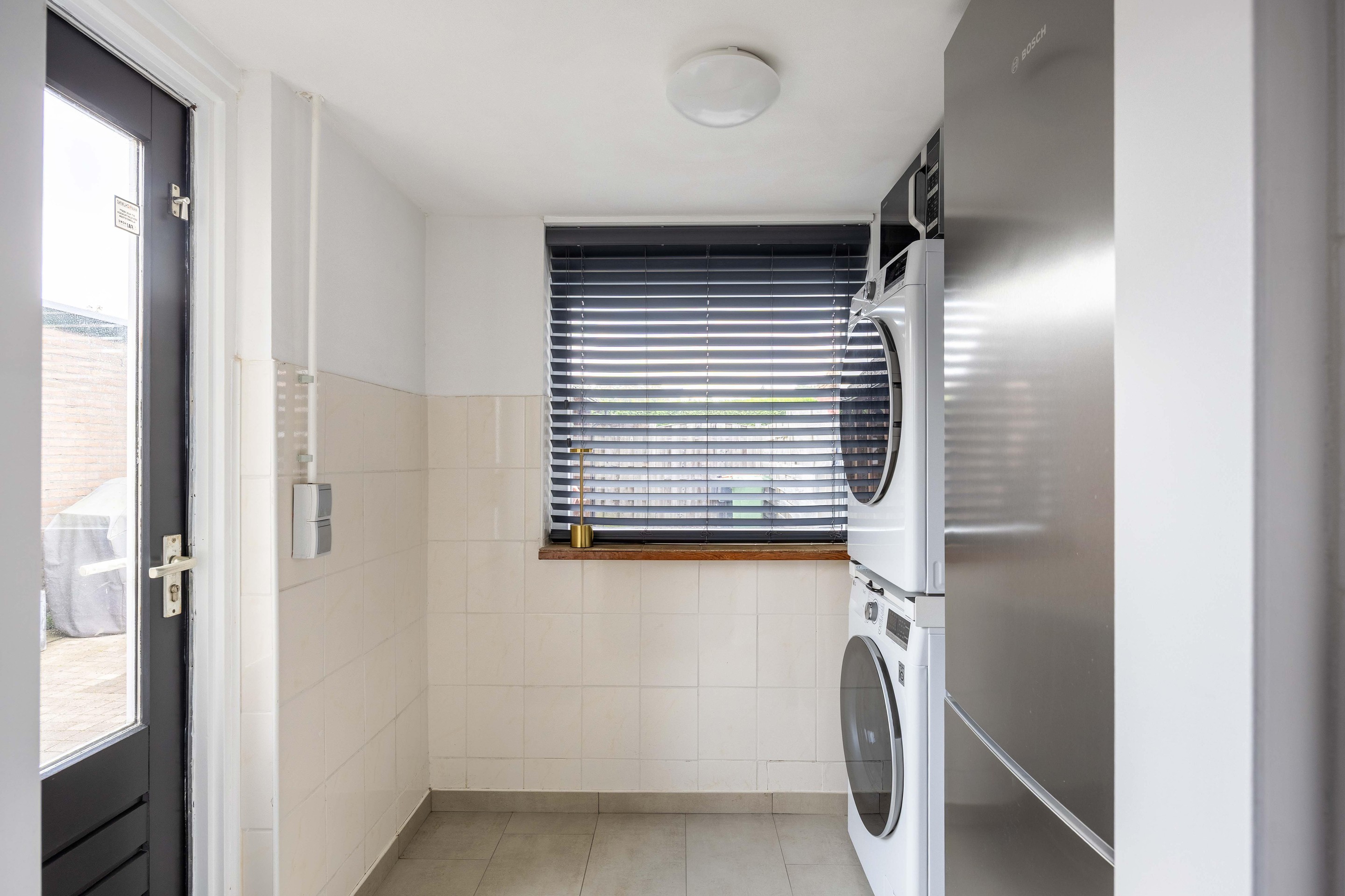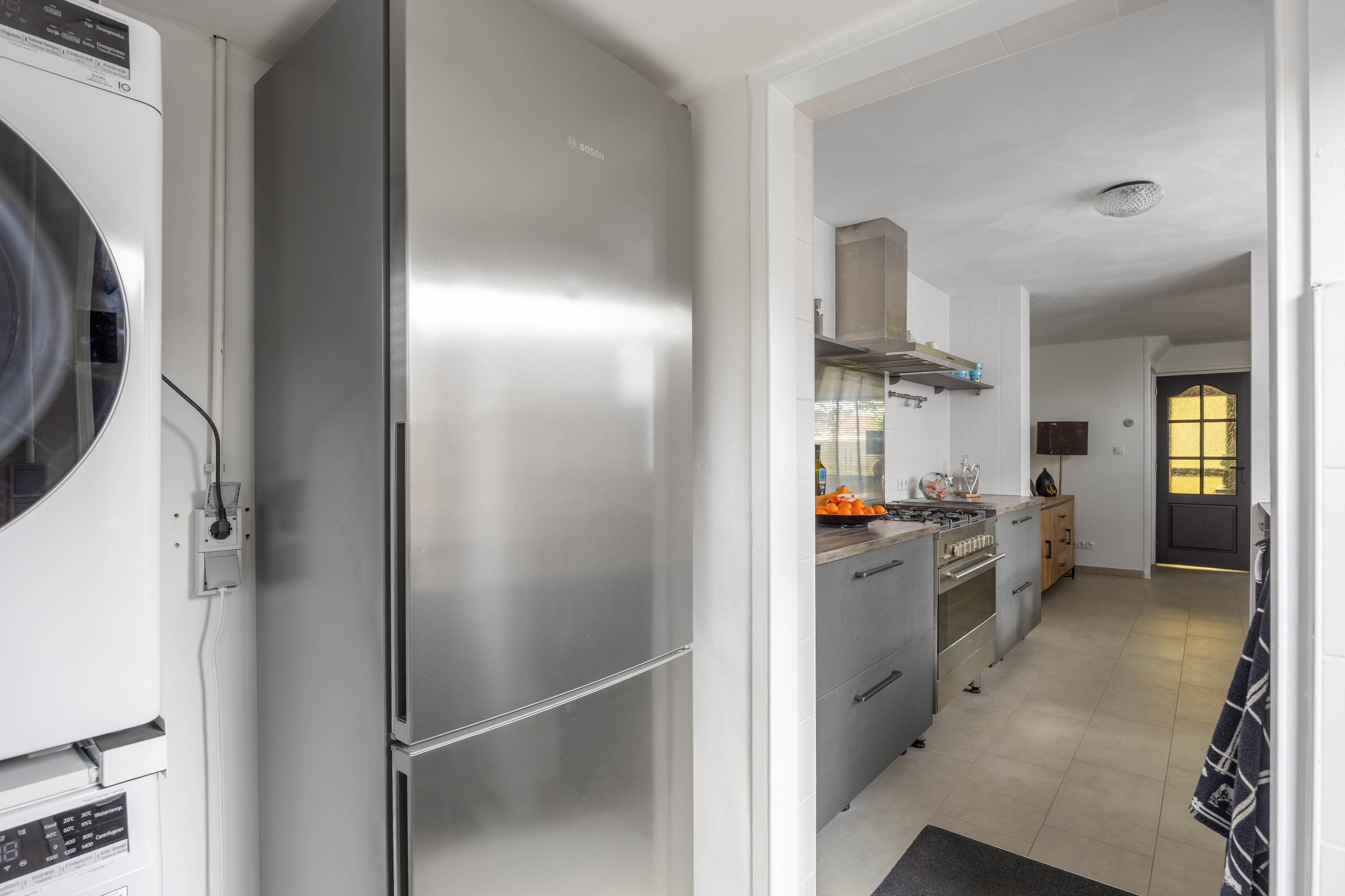 Aansluitend aan de keuken ligt de royale bijkeuken. Dankzij de witgoedaansluiting kun je hier fijn je was draaien en eventueel extra voorraad kwijt. De achterentree maakt deze ruimte bovendien ideaal voor natte laarzen, sportspullen of vieze hondenpootjes. Handig toch?