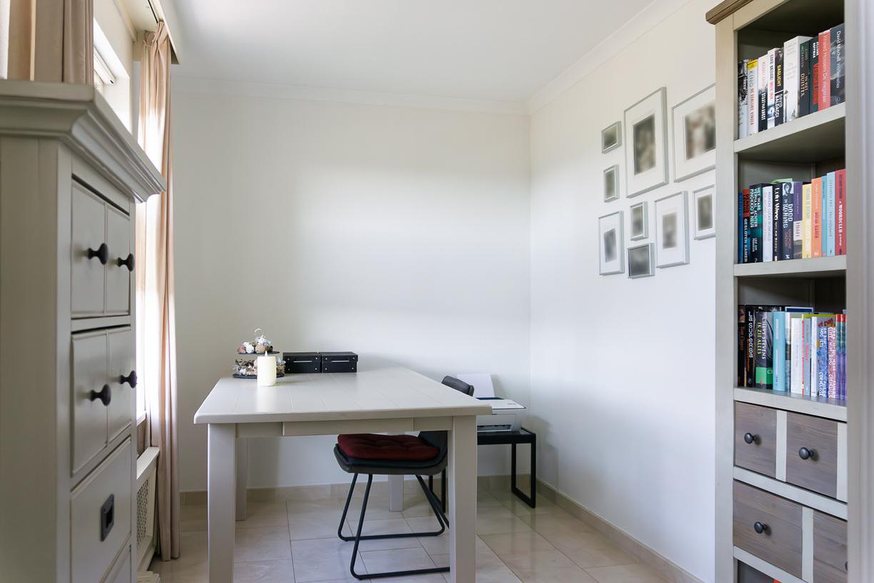 Deze slaapkamer ligt aan de voorzijde van de woning en kijkt via het raam uit over de polder van Woensdrecht. De afwerking is gelijk aan die van slaapkamer 1.