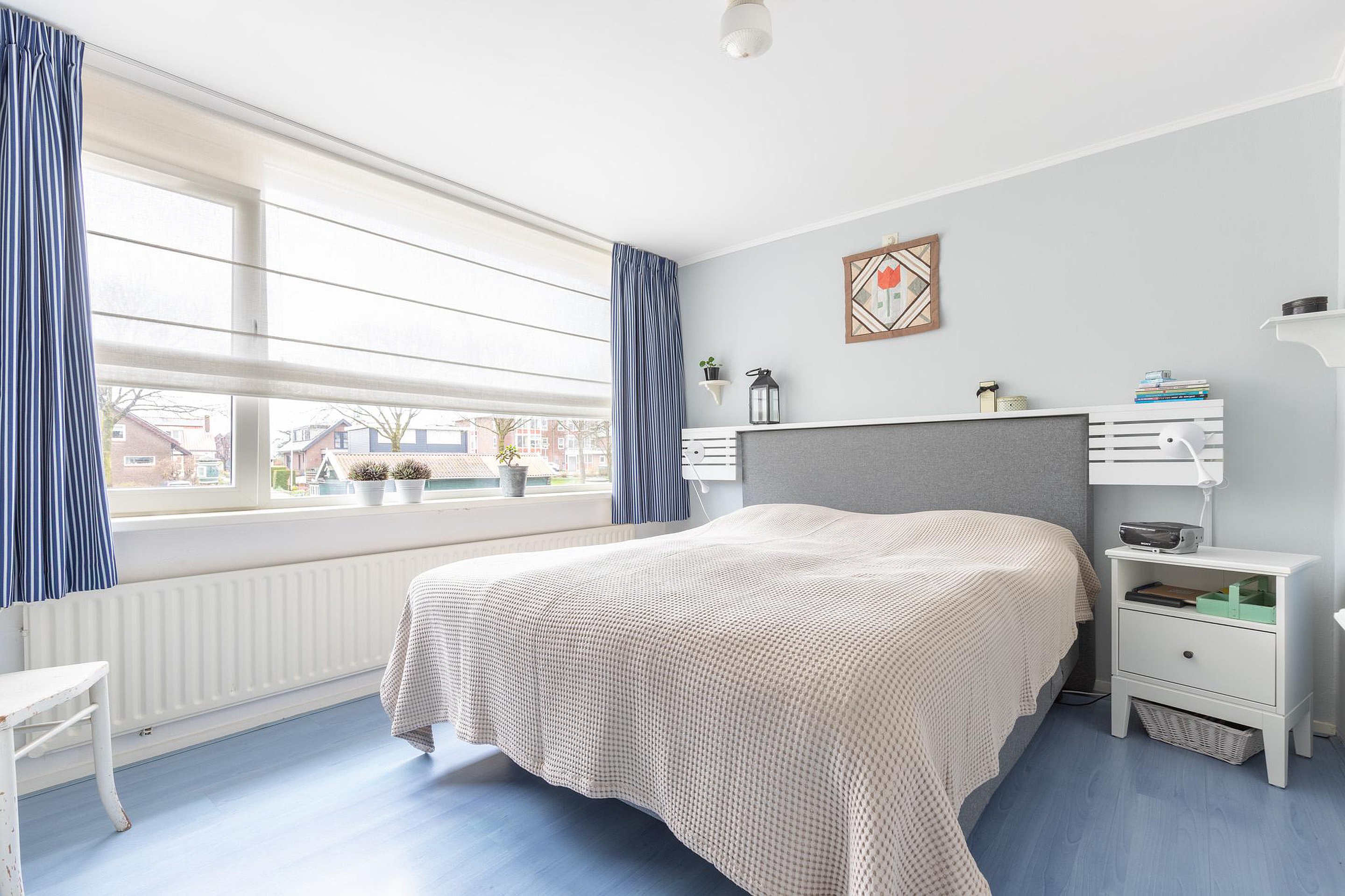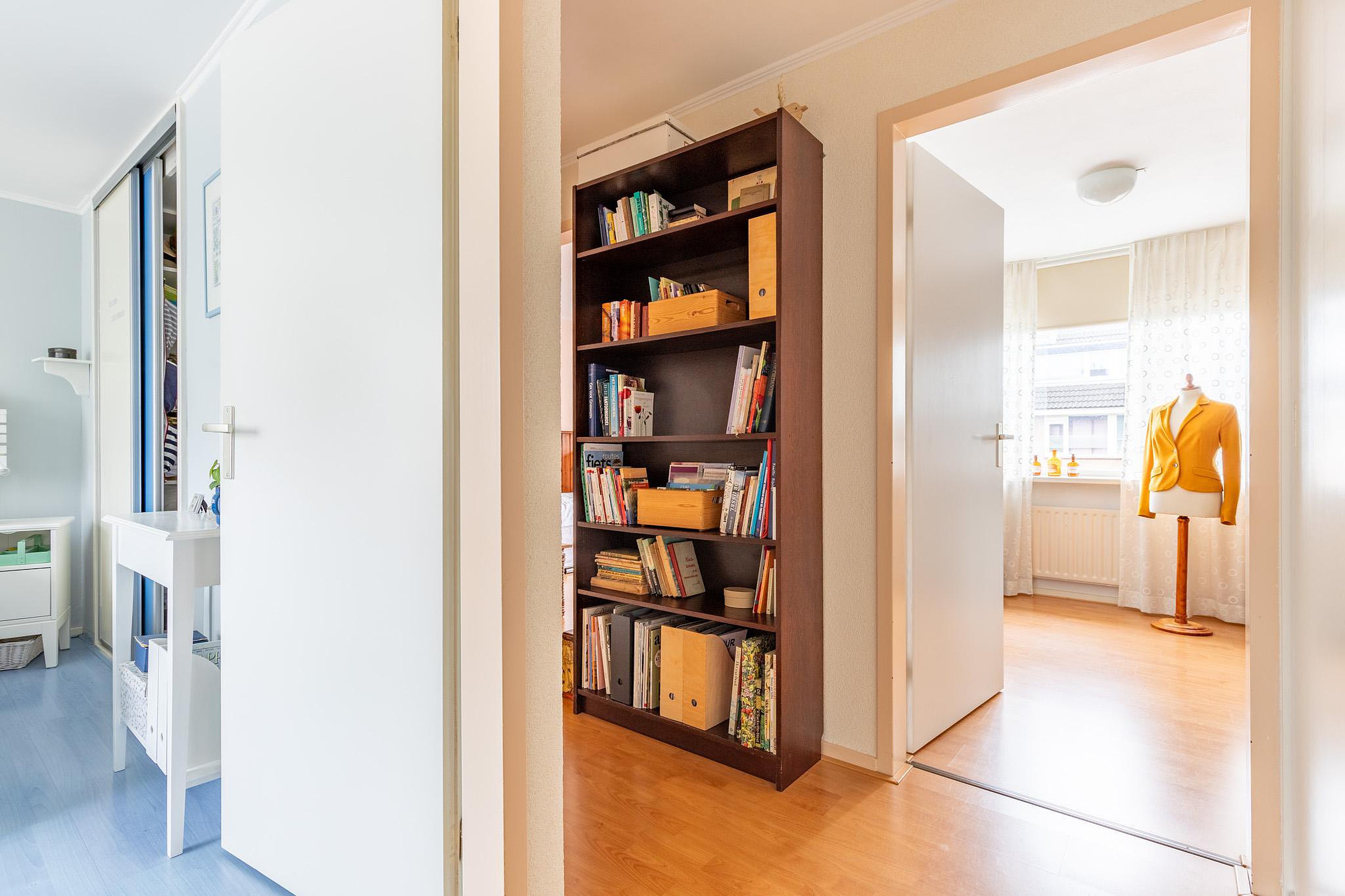 Eerste verdieping Op de eerste verdieping bevinden zich drie slaapkamers, allemaal voorzien van laminaat en kunststof kozijnen. De hoofdslaapkamer aan de voorzijde beschikt over een inloopkast. De badkamer is ingericht met een inloopdouche, toilet en wastafelmeubel.