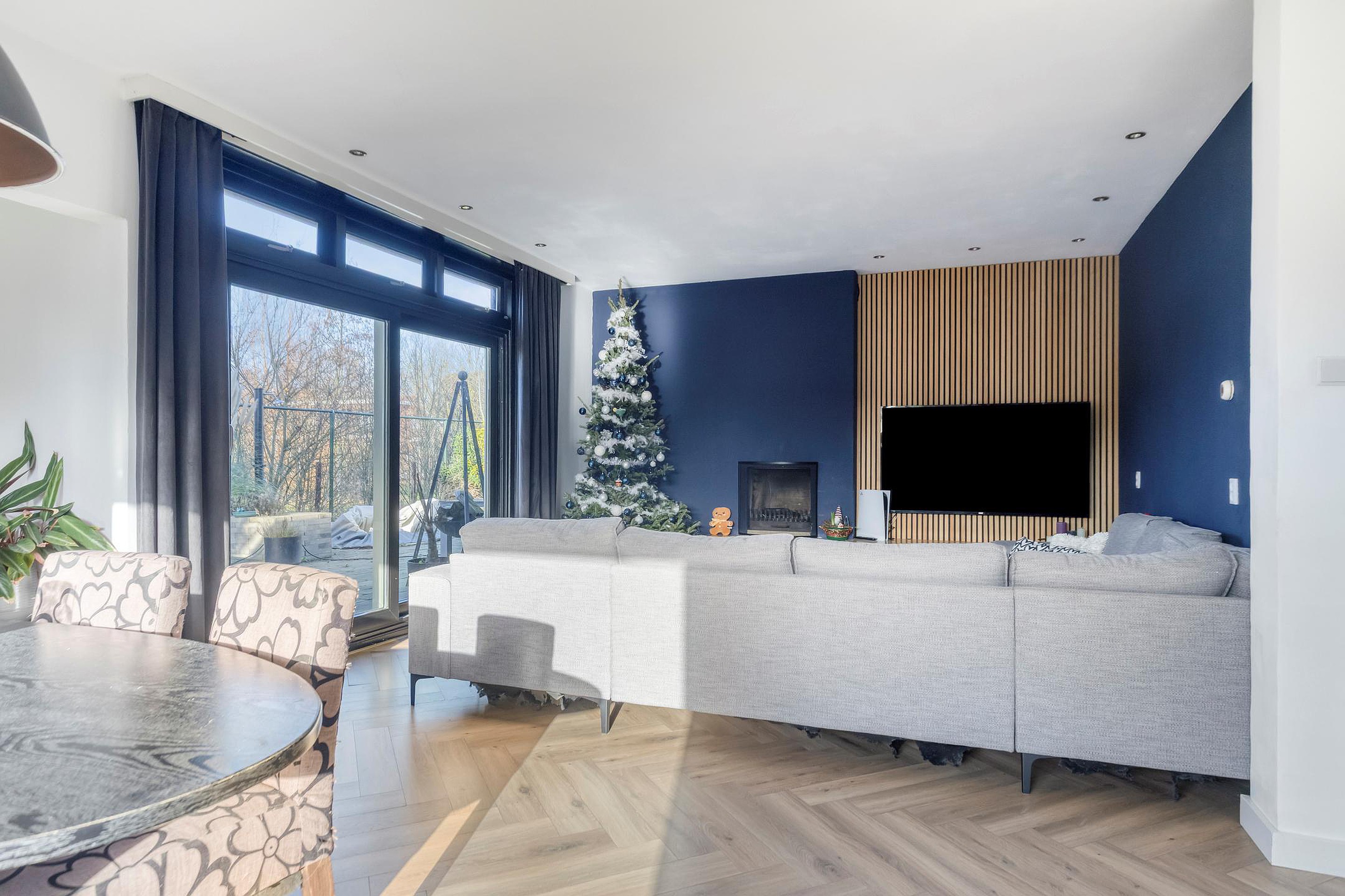 Begane grond Via de entree komt u in een ruime hal met trapopgang en een vernieuwde meterkast. Vanuit de hal is er toegang tot een apart toilet met fonteintje en een doucheruimte met wastafelmeubel. De woonkamer is royaal van opzet en voorzien van een open haard, inbouwspots en airconditioning. Dankzij de raampartijen is er prettig lichtinval en zicht op de tuin. Aansluitend bevindt zich een kleine aanbouw, waardoor de leefruimte extra ruim aanvoelt.