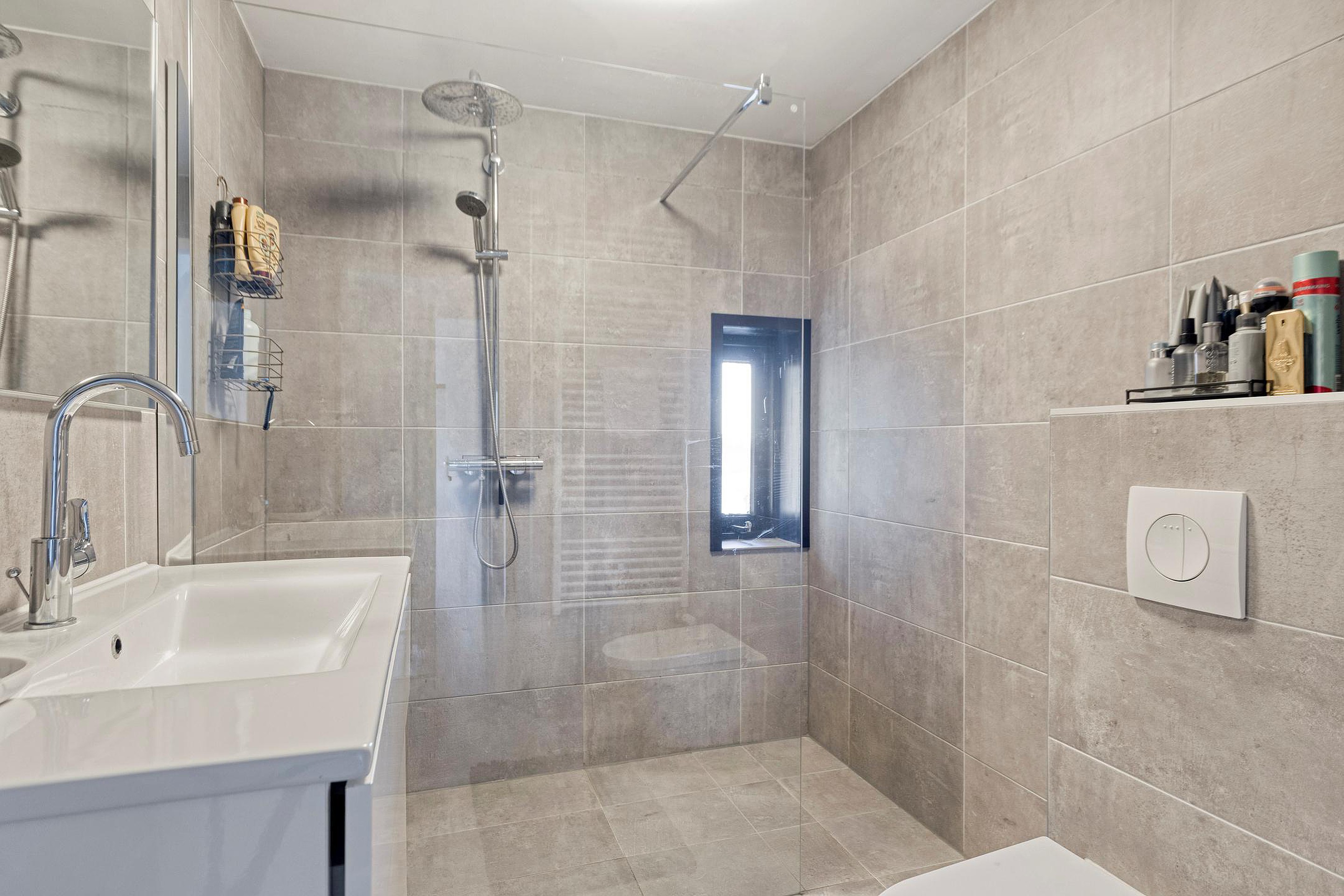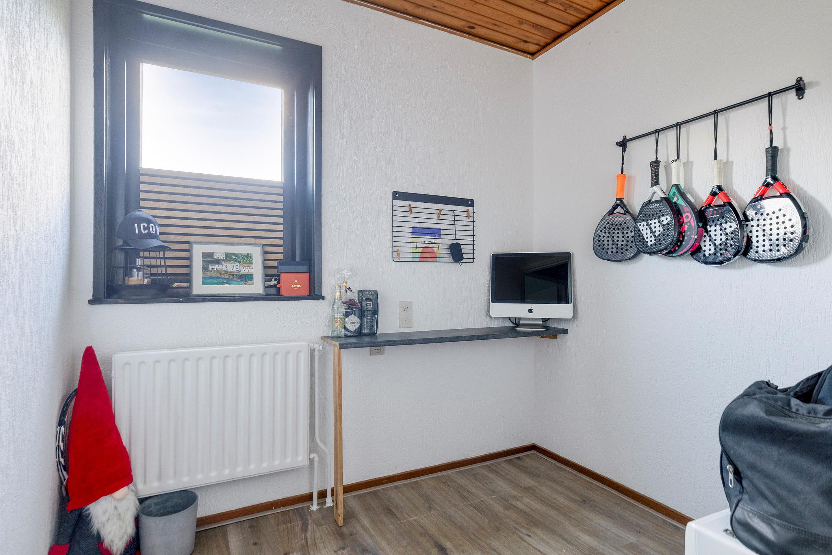 Eerste verdieping De eerste verdieping beschikt over een overloop met bergruimte en toegang tot vijf ruime slaapkamers. Alle slaapkamers zijn voorzien van een laminaatvloer. Vier slaapkamers zijn uitgerust met airconditioning, wat zorgt voor extra comfort in warme periodes. De badkamer is netjes afgewerkt en voorzien van een grote inloopdouche, wastafel met meubel, toilet en designradiator.