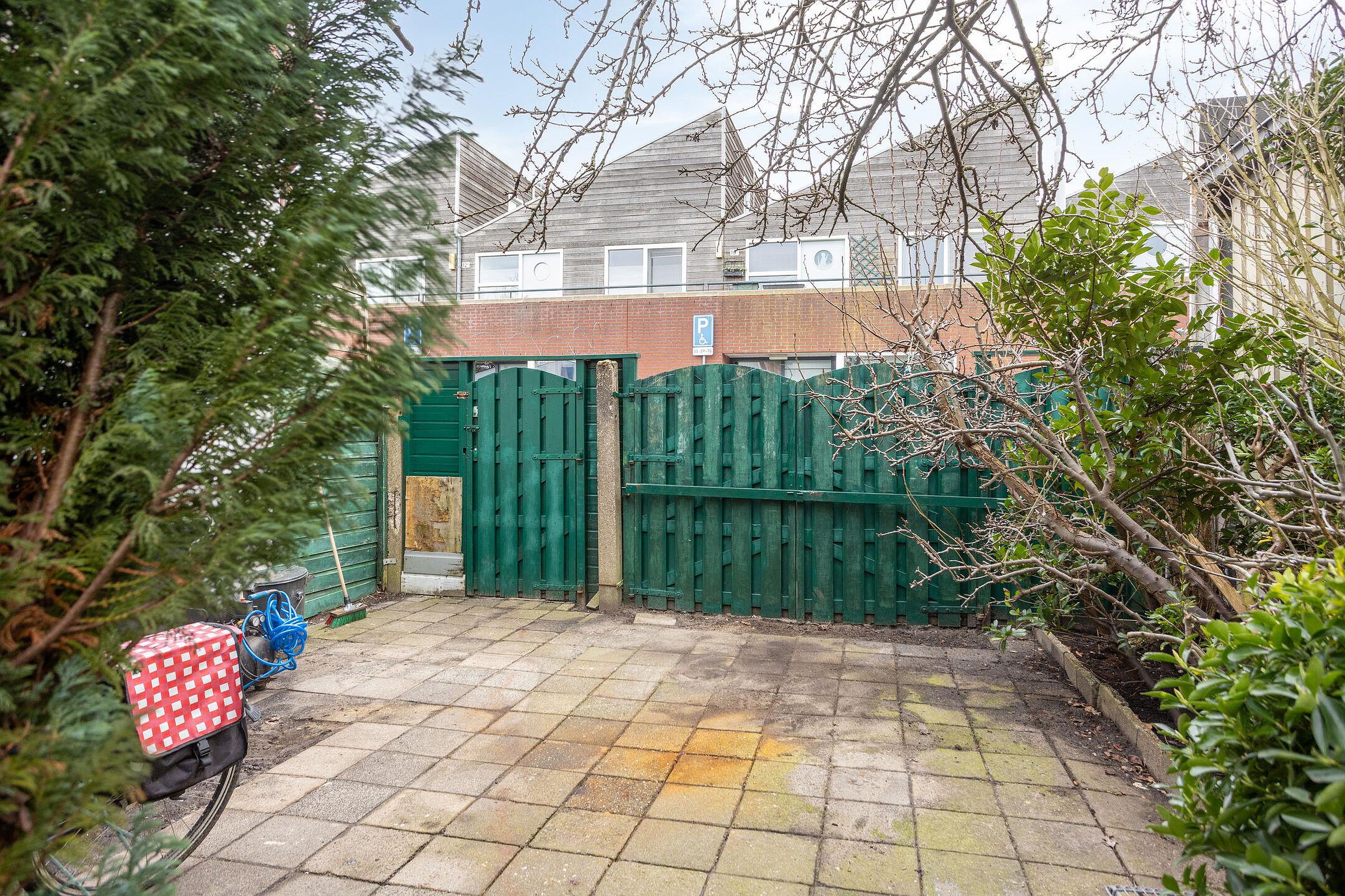 In de riante achtertuin is een schuur van maar liefst 22m2. De tuin loopt geheel door naar de andere kant van de straat waar zich een poort bevind die toegang geeft tot de Eendrachtstraat.