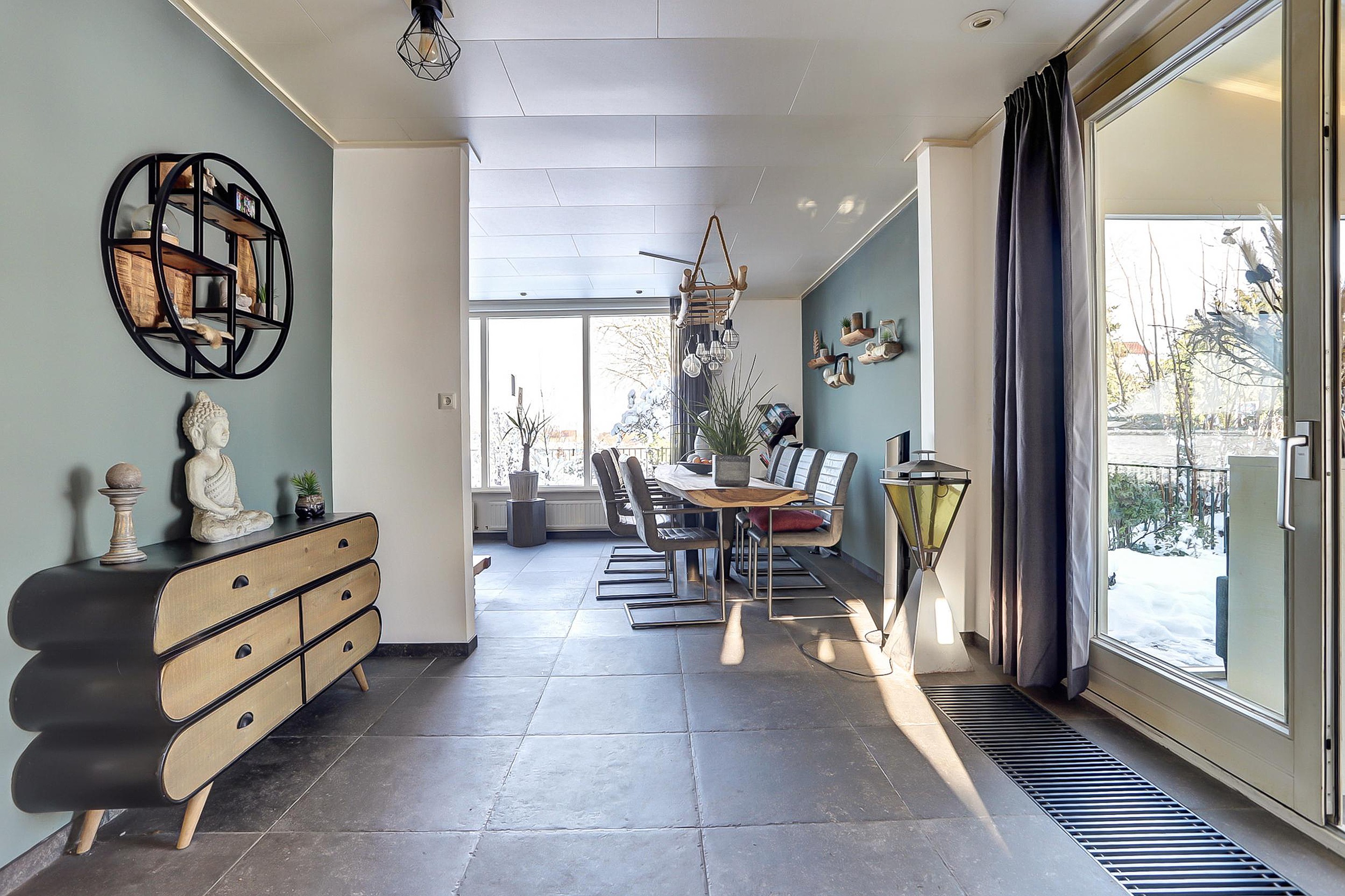voor een gezellige zithoek. Aansluitend bevindt zich de eetkamer, een fijne plek voor