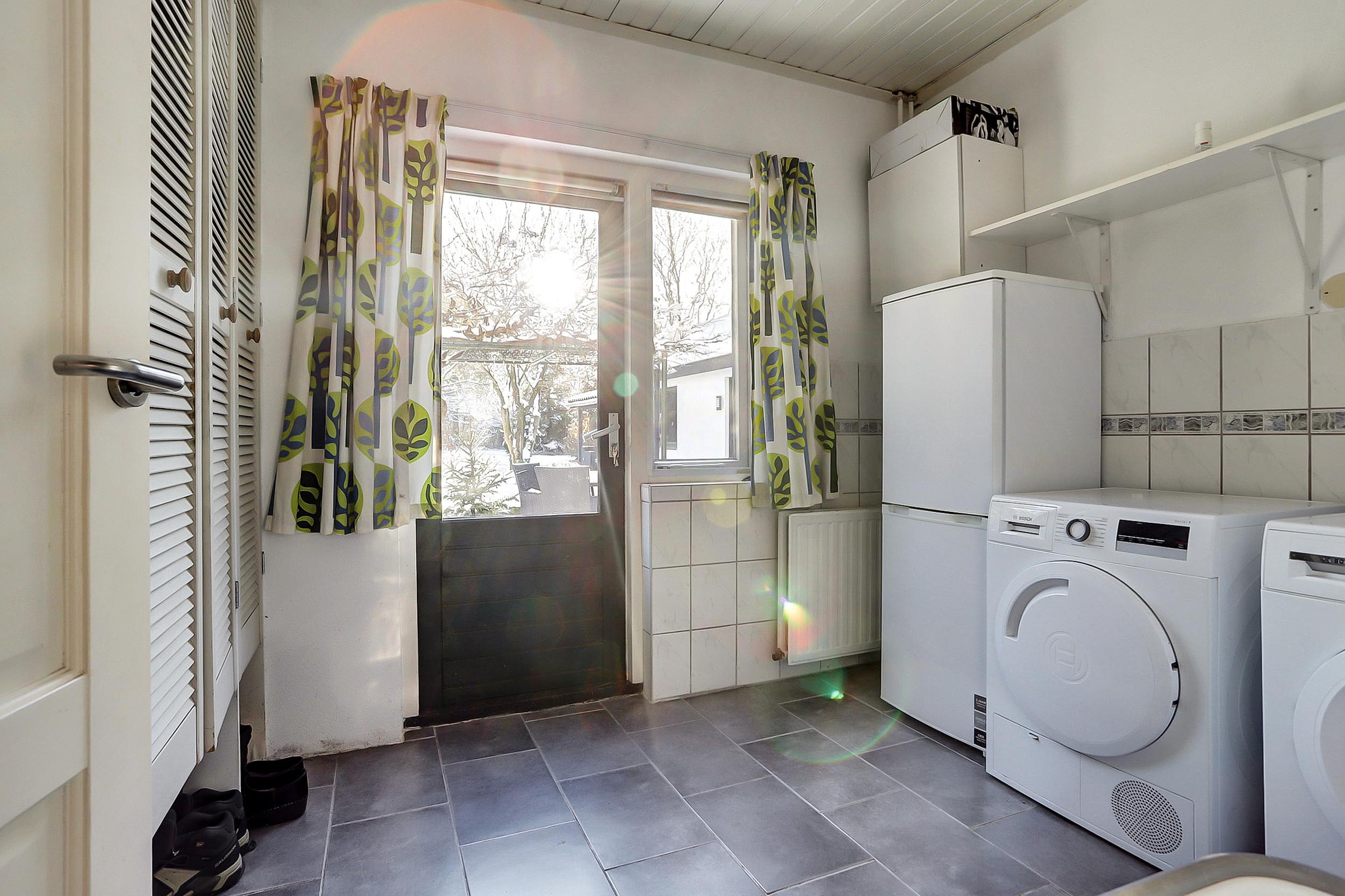 met aansluitingen voor wasmachine en droger. Vanuit de bijkeuken is er toegang tot