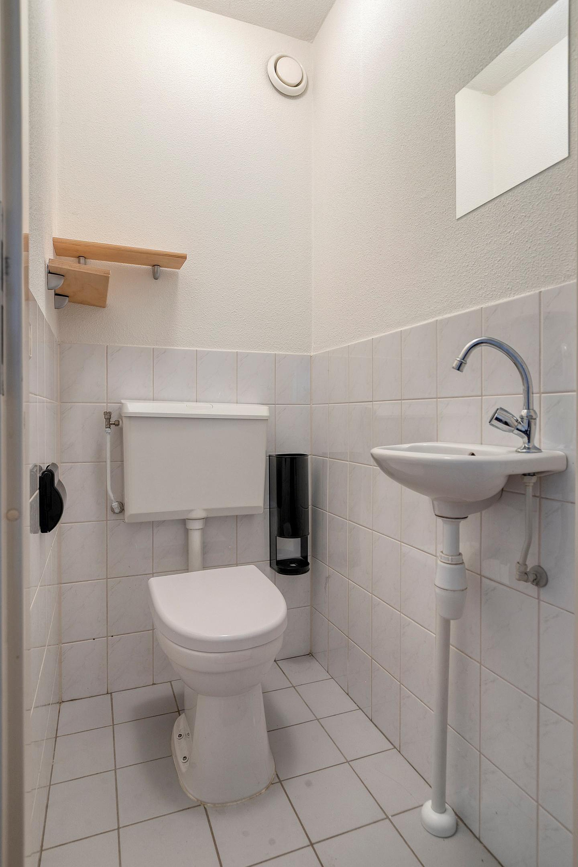 Hier vind je de hoofdslaapkamer met hoog plafond en in de vaste kasten veel bergruimte, de badkamer met douchecabine, wastafelmeubel, tweede toilet en aansluiting voor wasmachine/droger. Vanuit de hoofdslaapkamer met openslaande deuren, maar ook op de overloop heb je toegang tot het ruime dakterras – een heerlijke plek om in privacy te genieten van rust en zon.