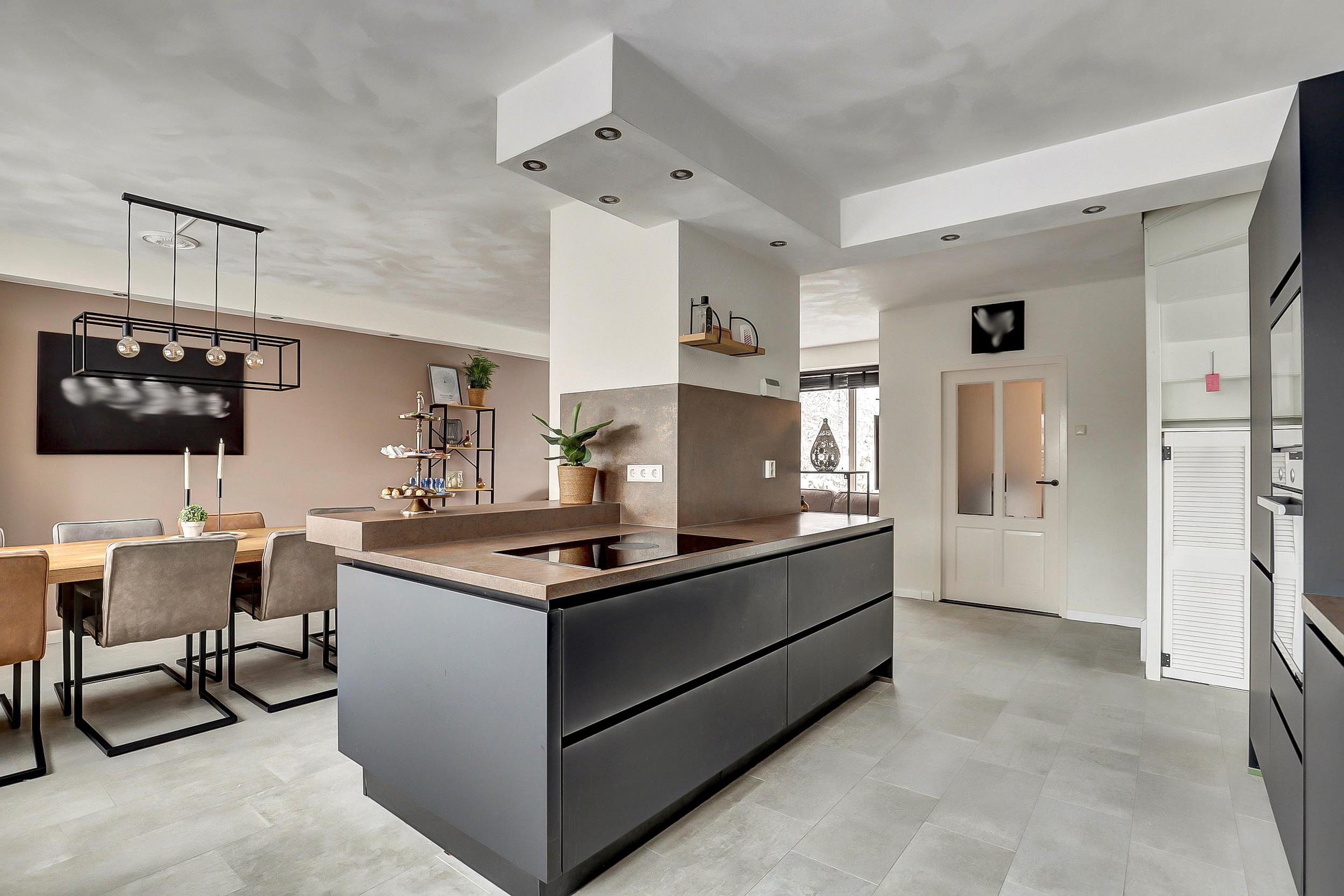 Uitgevoerd in een strak design en met hoogwaardige materialen, is deze keuken van alle gemakken voorzien. De inductiekookplaat met geïntegreerde afzuiging zorgt voor een open, ruimtelijk gevoel zonder hinderlijke afzuigkap. Daarnaast beschikt de keuken over een oven en een magnetron, een ingebouwde vaatwasser en een royale koelkast. Dankzij de slimme indeling van kasten en lades is er volop opbergruimte, waardoor alles altijd netjes en overzichtelijk blijft.