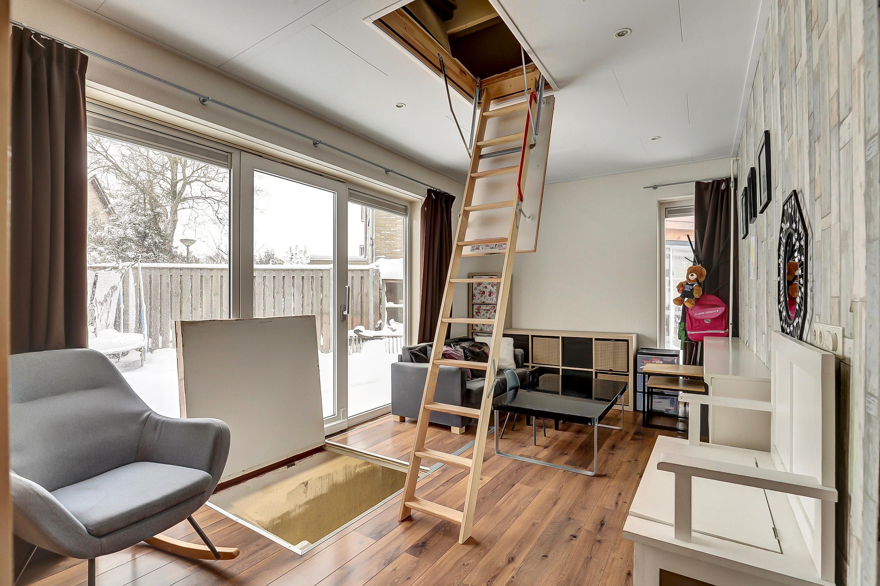 Op de begane grond is de woning aan de zijkant uitgebouwd en voorzien van een bijzonder veelzijdige ruimte. Deze multifunctionele uitbouw beschikt over een praktische bergzolder en een kelder op stahoogte en is inpandig bereikbaar vanuit de woonkamer. Dankzij de royale opzet is de ruimte ideaal te gebruiken als kantoor aan huis, werkruimte, extra slaapkamer of speelkamer. Bovendien zijn hier de aansluitingen voor de wasapparatuur aanwezig, wat het geheel extra functioneel maakt.