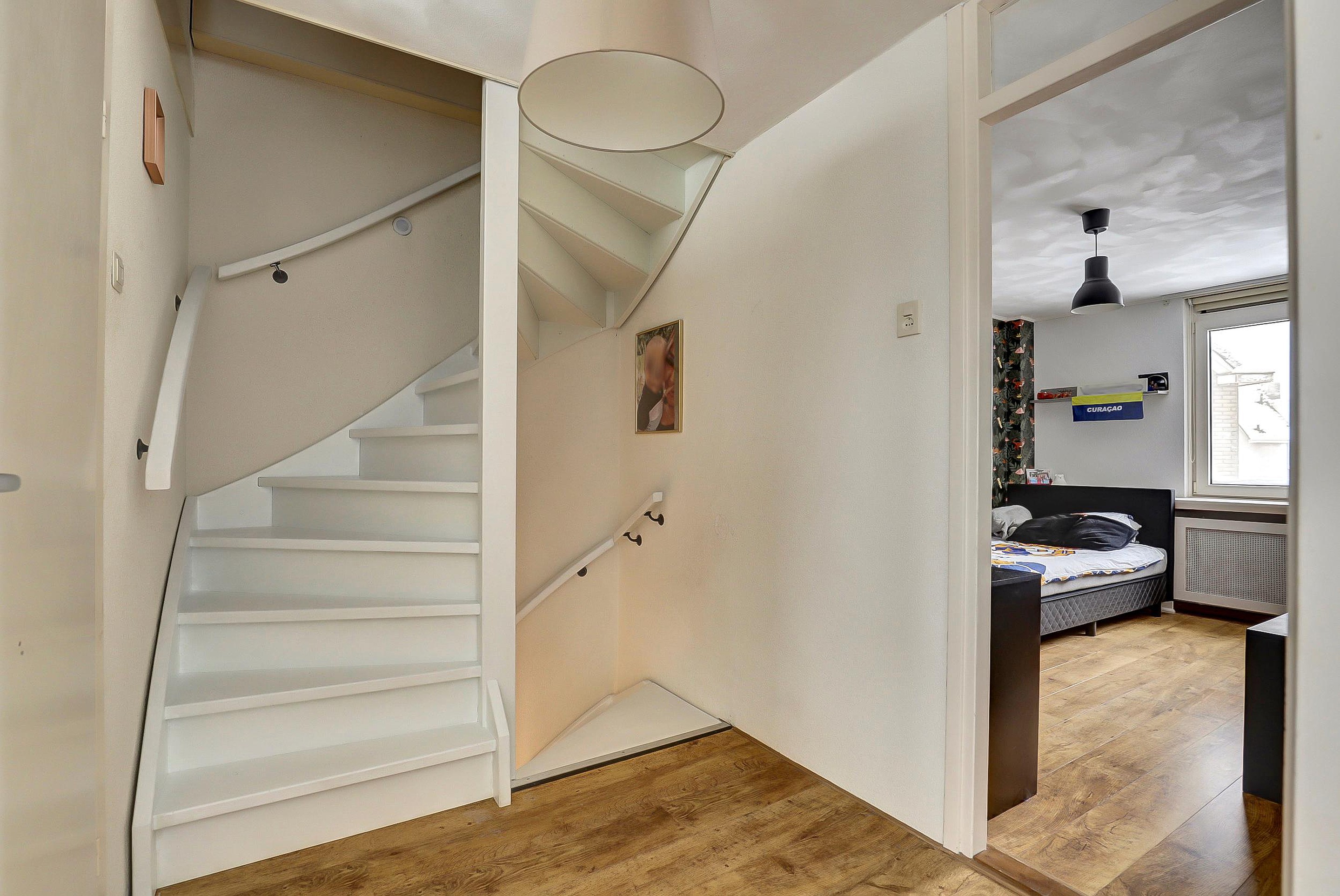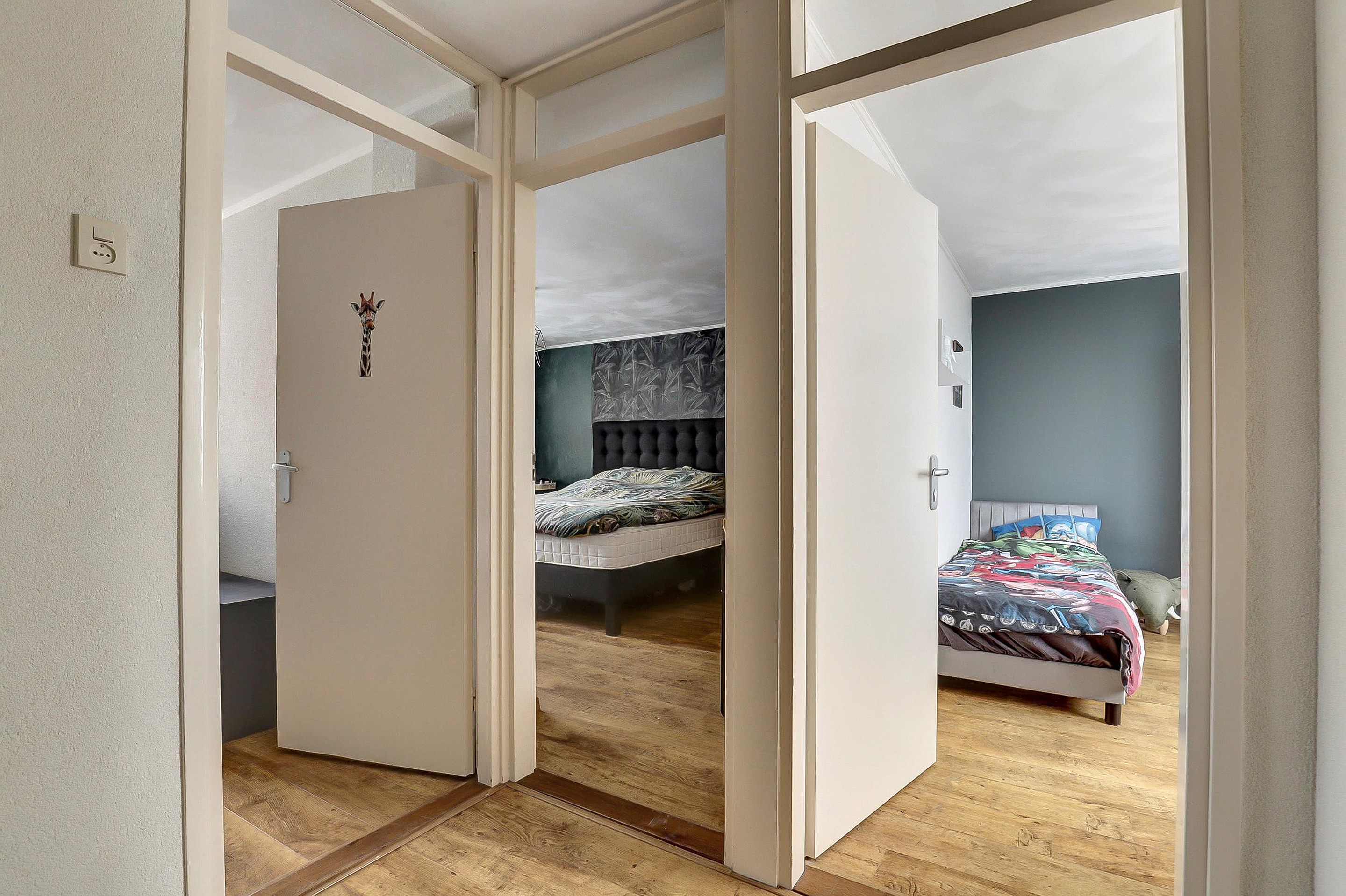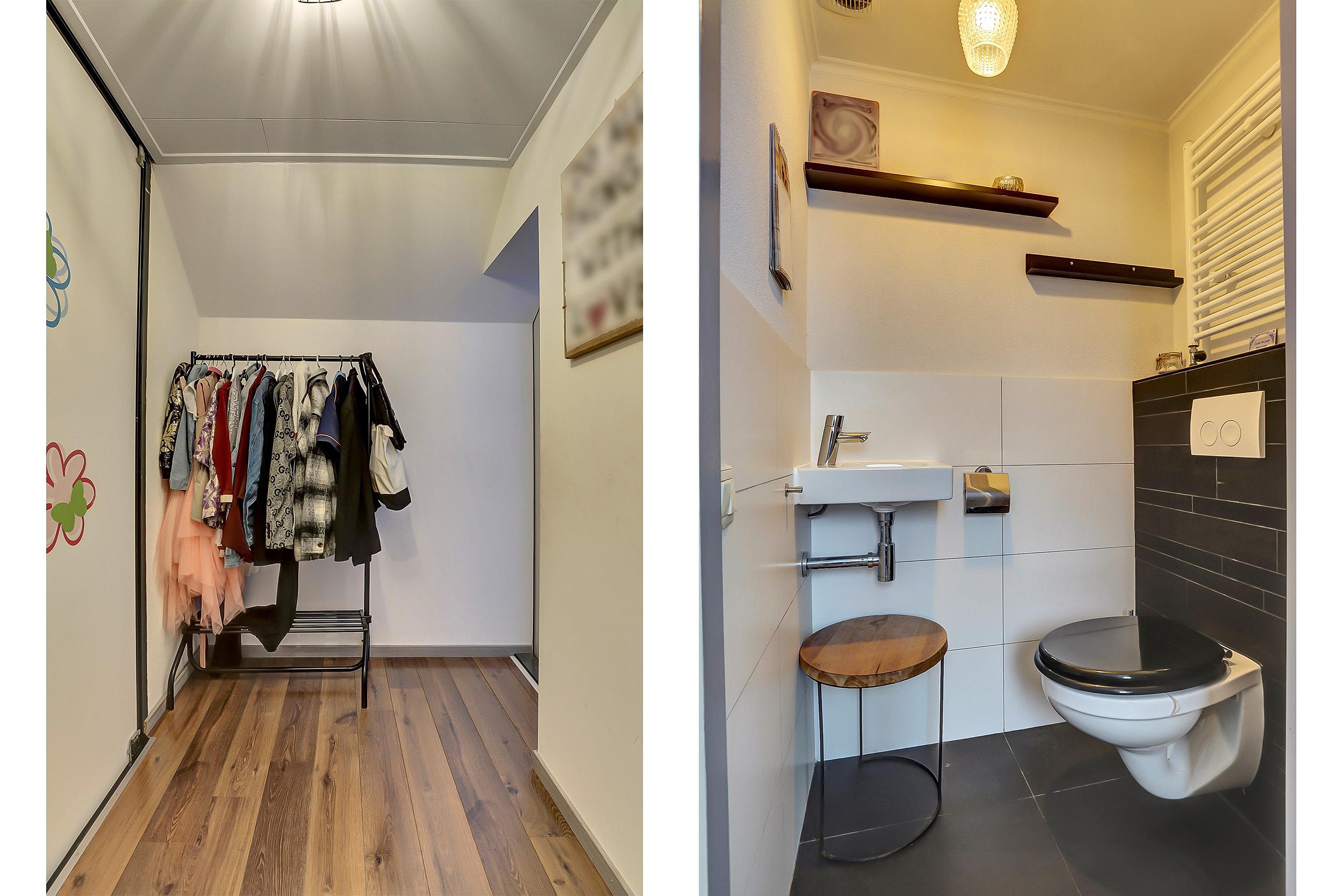 Overloop met de cv-combiketel (2012), aansluitingen voor wasapparatuur en praktische bergruimte. Vanaf hier bereik je slaapkamer met dakkapel, momenteel verdeeld in twee slaapkamers. Ideaal voor wie een extra slaapkamer werkkamer of hobbyruimte wil creëren.