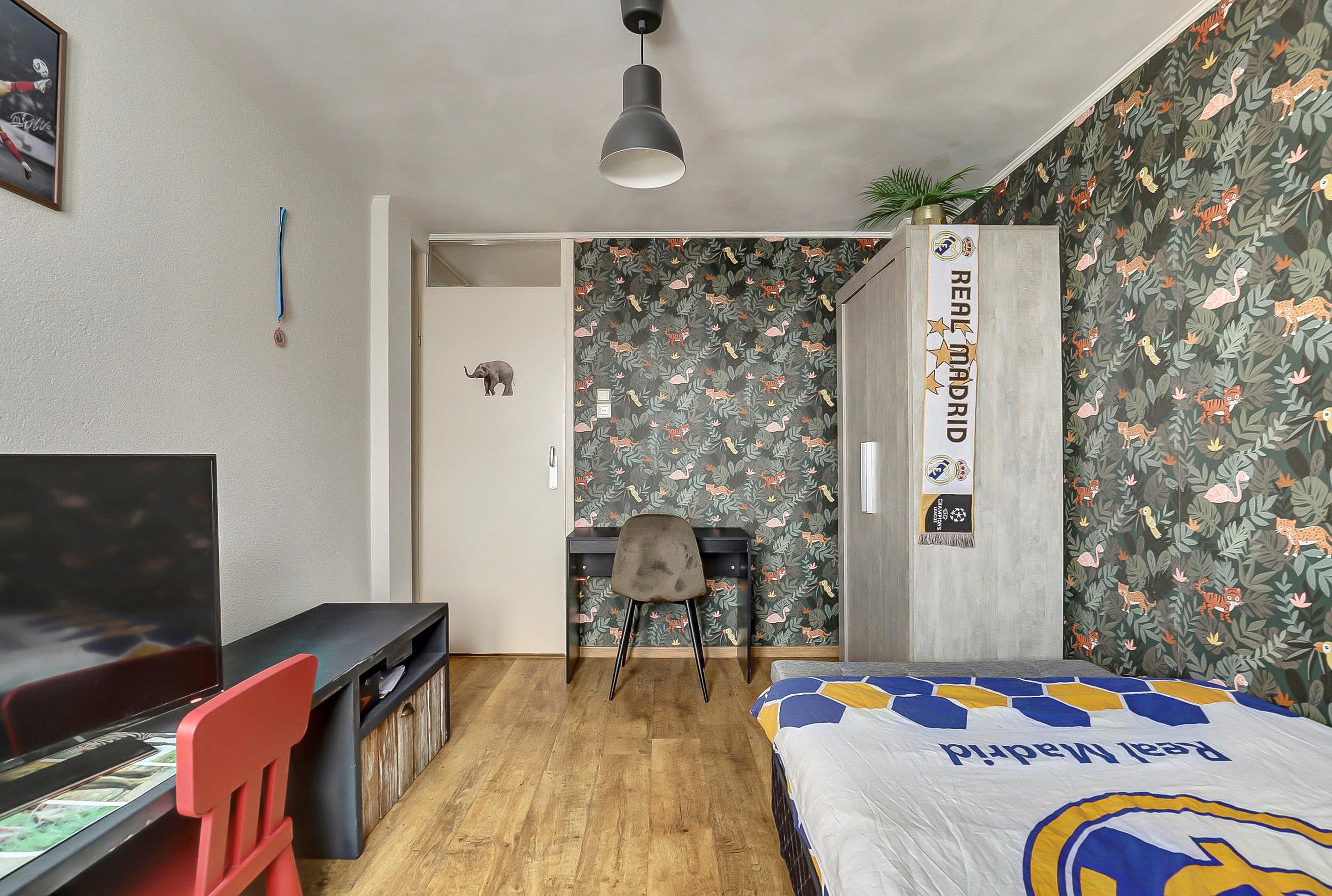 Op de eerste verdieping valt meteen op hoeveel ruimte deze woning biedt. De overloop geeft toegang tot drie bijzonder ruime slaapkamers, die elk voldoende plek bieden voor een groot bed, kasten en eventueel een bureau of zithoek. De grote ramen zorgen ook hier voor veel natuurlijk licht, wat de kamers een open en frisse uitstraling geeft.