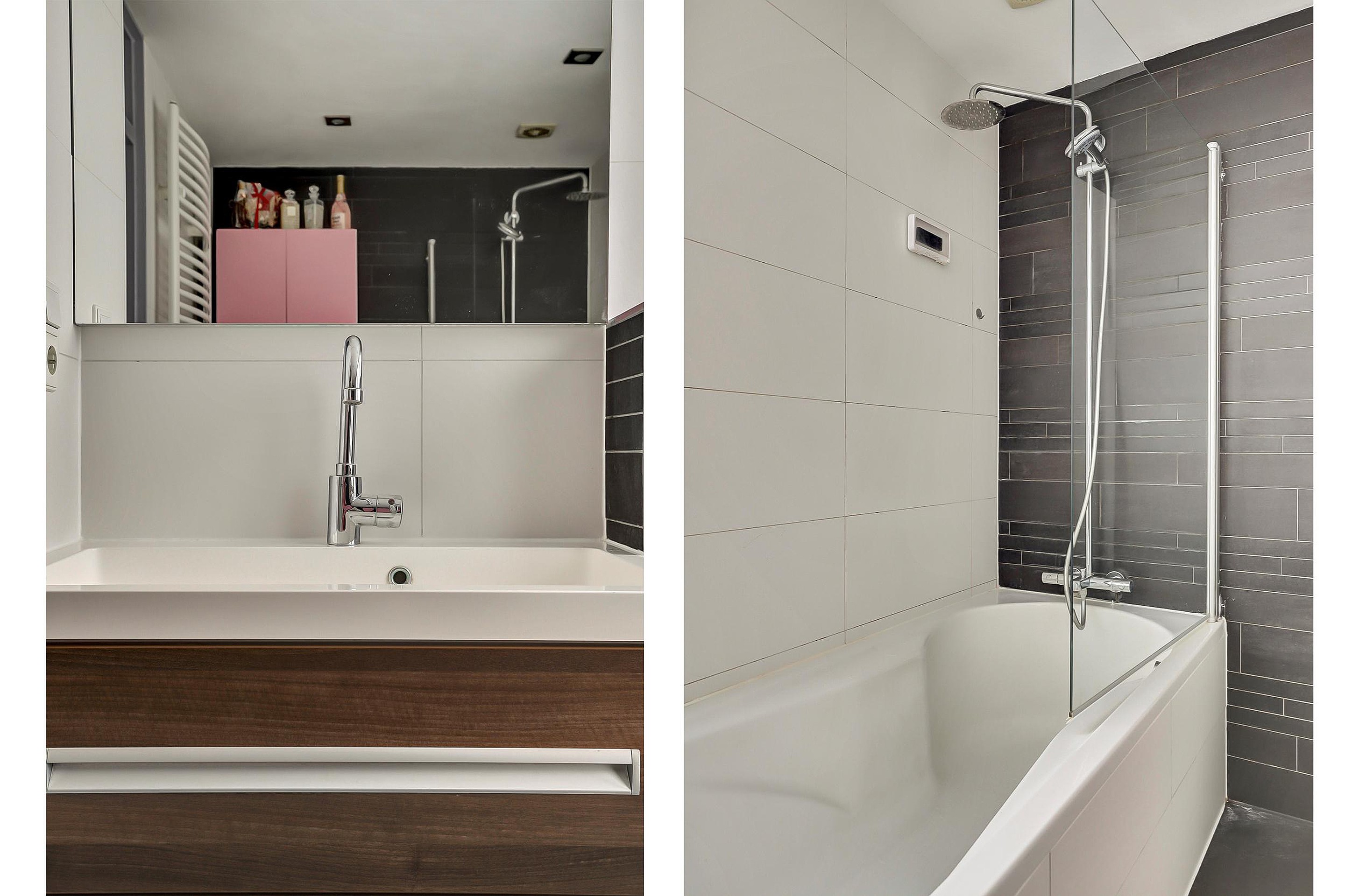 Geheel betegelde badkamer met vloerverwarming. Badkamer met ligbad voorzien van regen- en handdouche met thermostaatkraan en een 2e toilet en badkamermeubel met wasbak. Een heerlijke plek om even tot rust te komen.