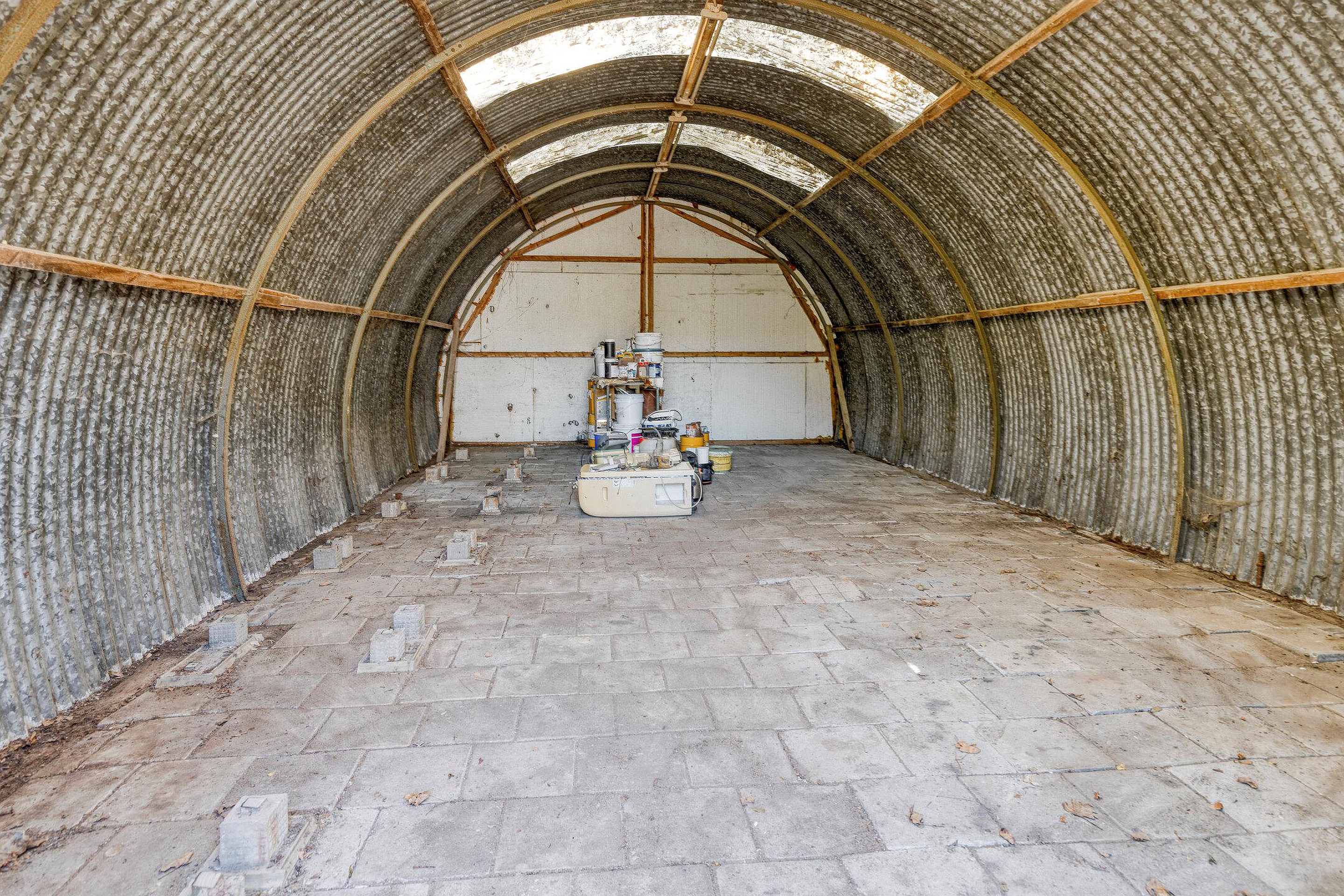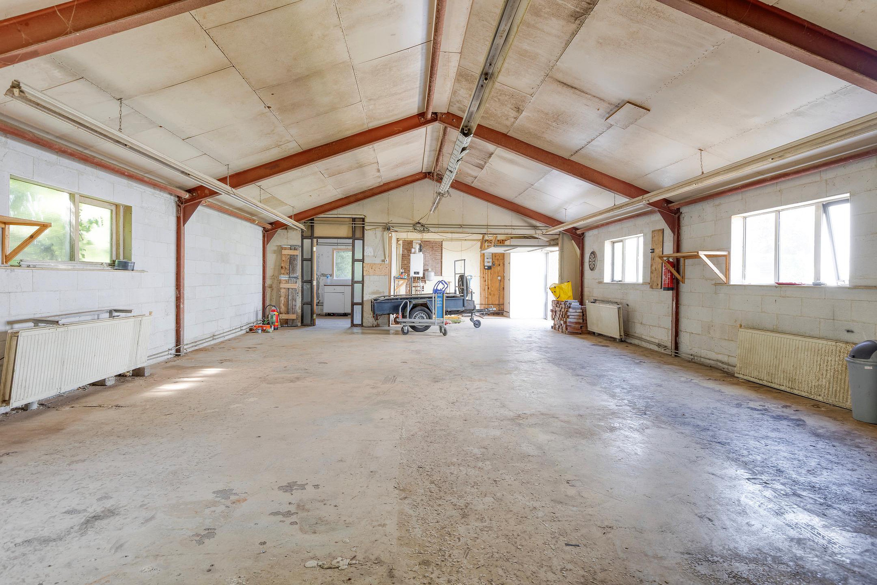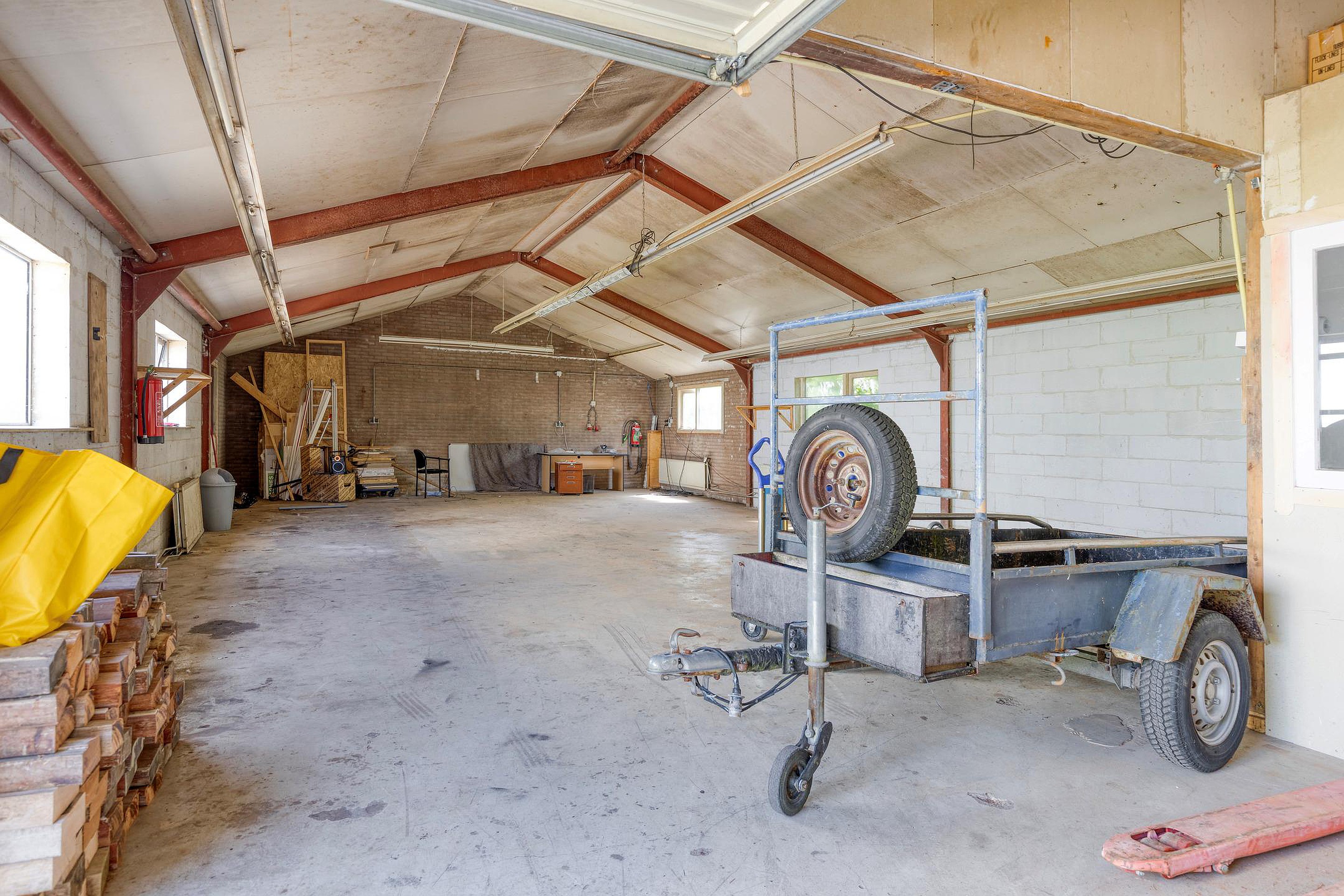 Het volledig omheinde terrein biedt volop ruimte en flexibiliteit voor ondernemers die wonen en werken willen combineren. Op het perceel bevinden zich twee praktische bedrijfsruimtes die tal van mogelijkheden bieden voor opslag, werkplaats of bedrijfsactiviteiten.