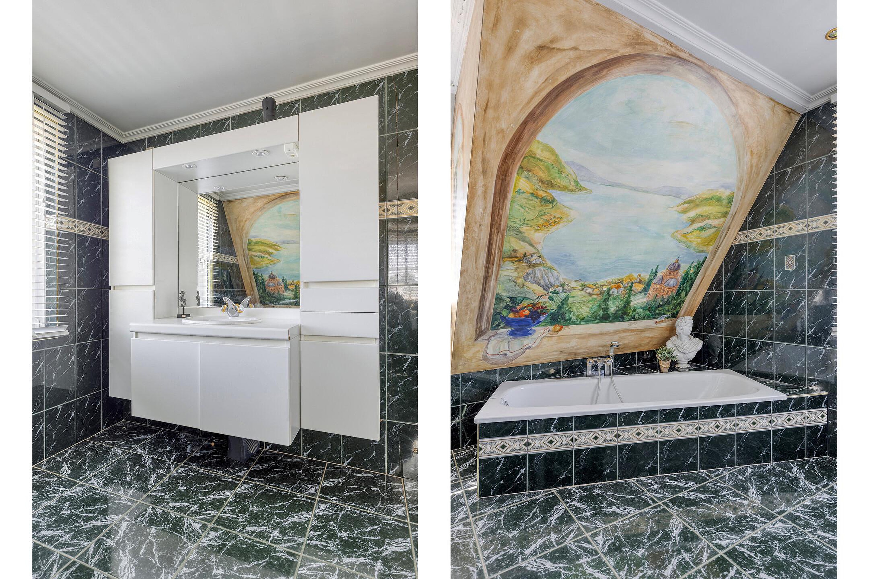 De eerste verdieping biedt drie ruime slaapkamers, een praktische bergkast en een complete badkamer van circa 11 m2 met ligbad, douche, toilet, bidet en wastafelmeubel. Daarnaast is er nog een bergzolder van circa 15 m2 voor extra opslag.