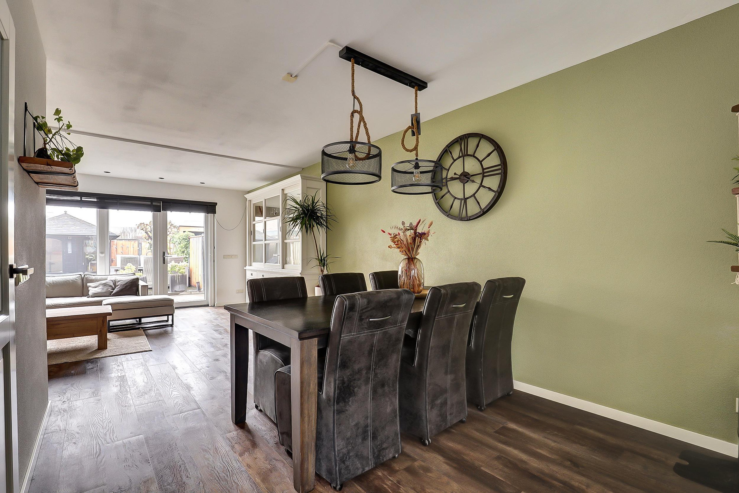 De woonkamer is verrassend ruim en baadt in daglicht dankzij de grote raampartijen. De royale aanbouw aan de achterzijde vergroot niet alleen het woonoppervlakte, maar versterkt ook het gevoel van openheid en wooncomfort. De sfeervolle zithoek bij de openslaande deuren vormt een prachtige verbinding met de tuin en creëert een warme, uitnodigende ambiance.