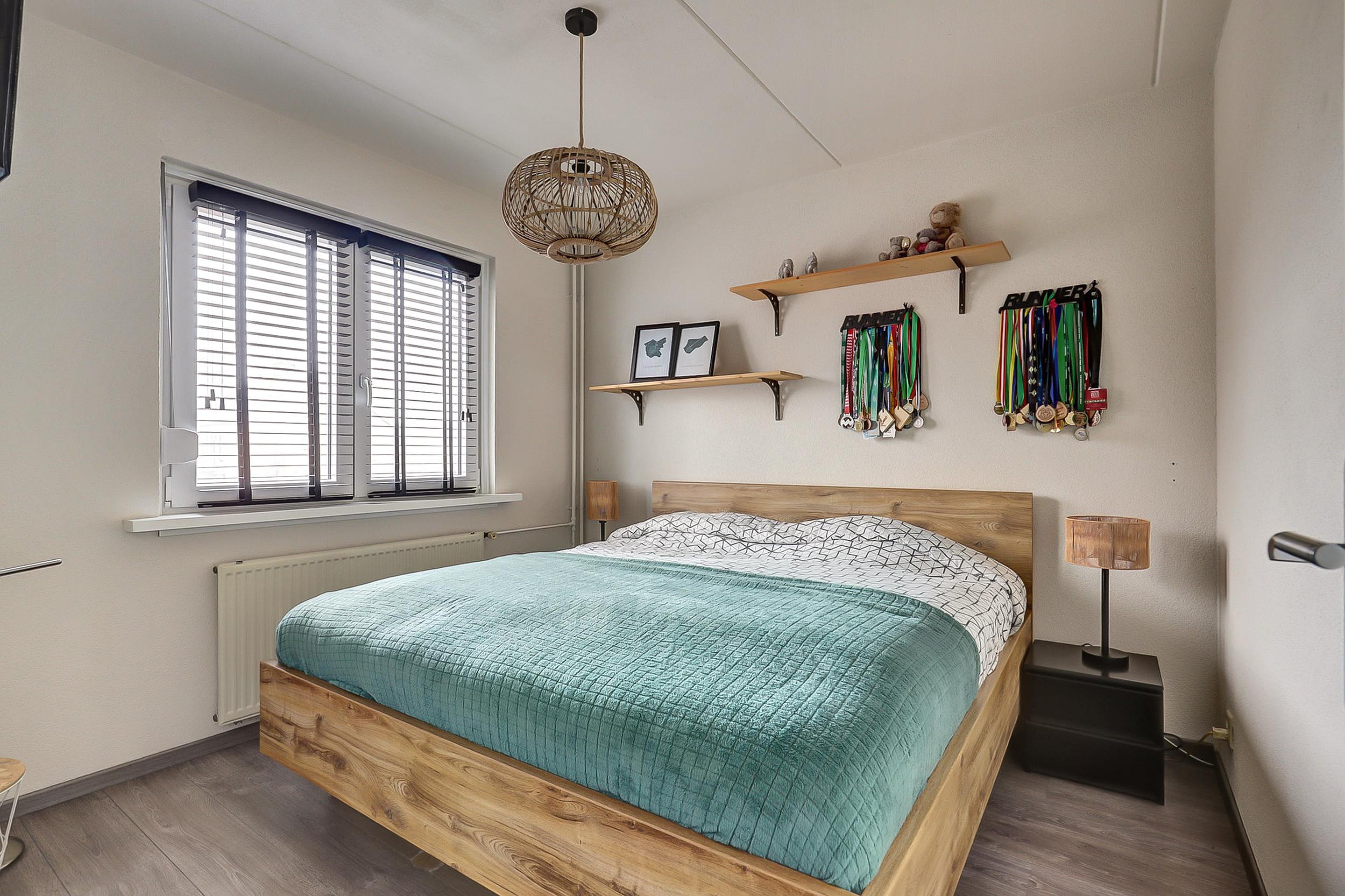 De ruime overloop met trapopgang naar de tweede verdieping geeft toegang tot drie comfortabele slaapkamers. Alle kamers zijn licht, bieden voldoende ruimte voor een bed, kasten en eventueel een werkplek, en stralen rust en comfort uit. Grote ramen zorgen voor veel natuurlijk licht.