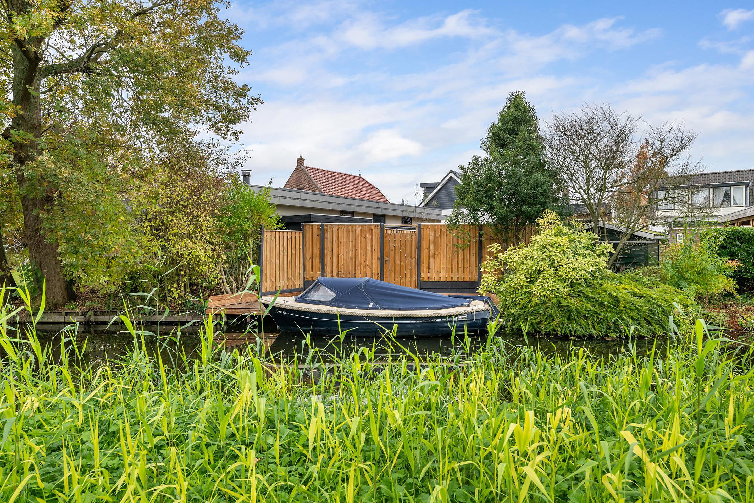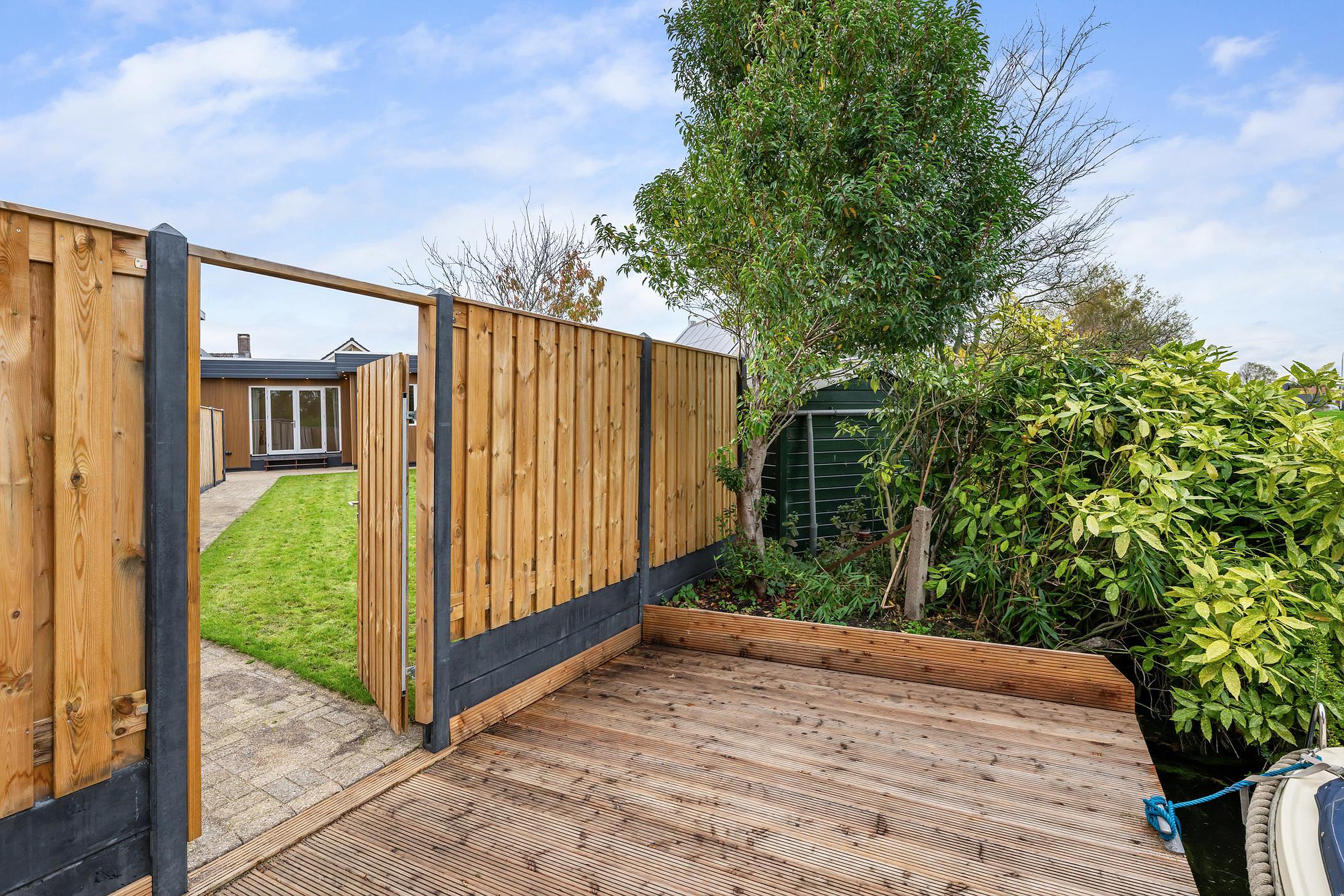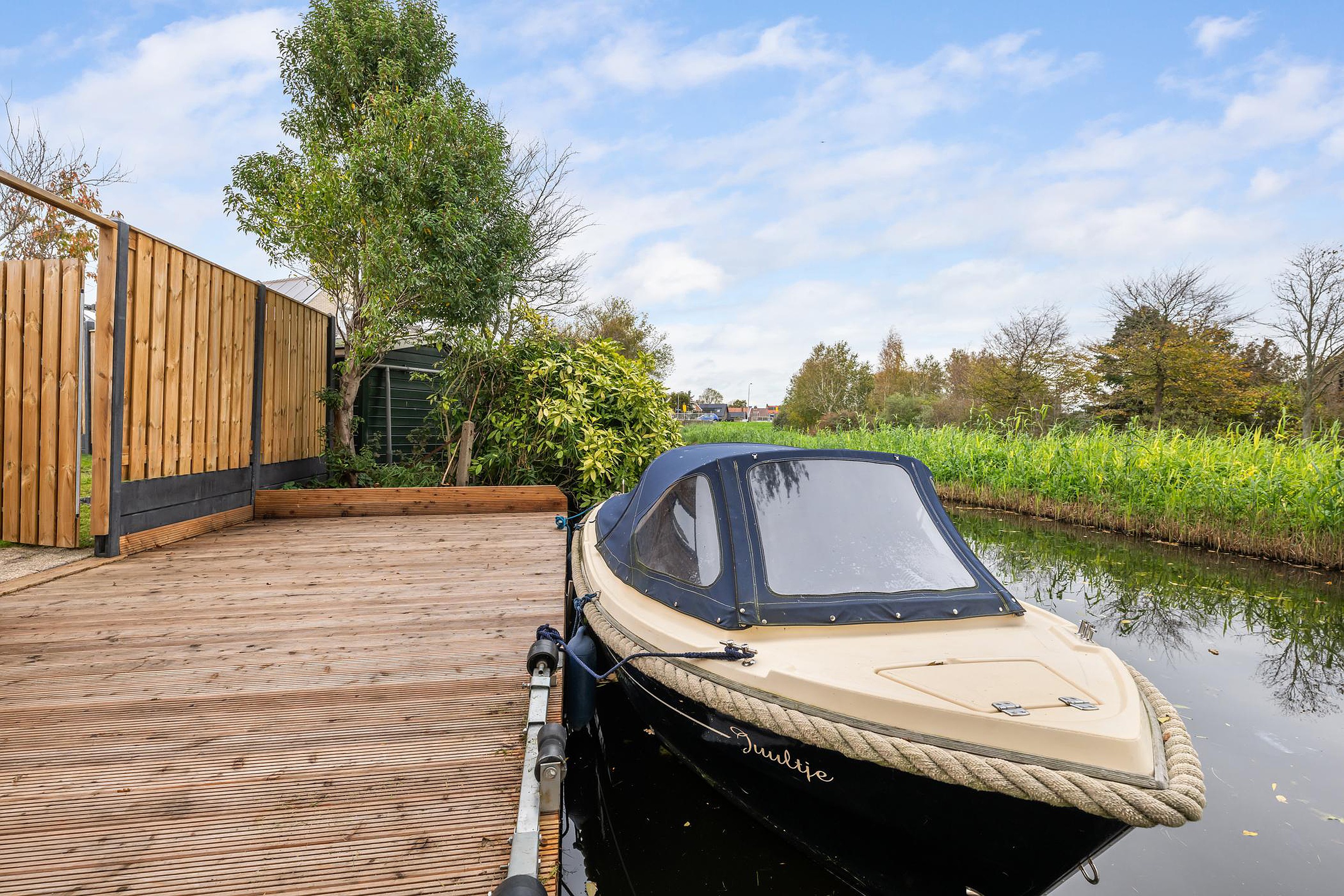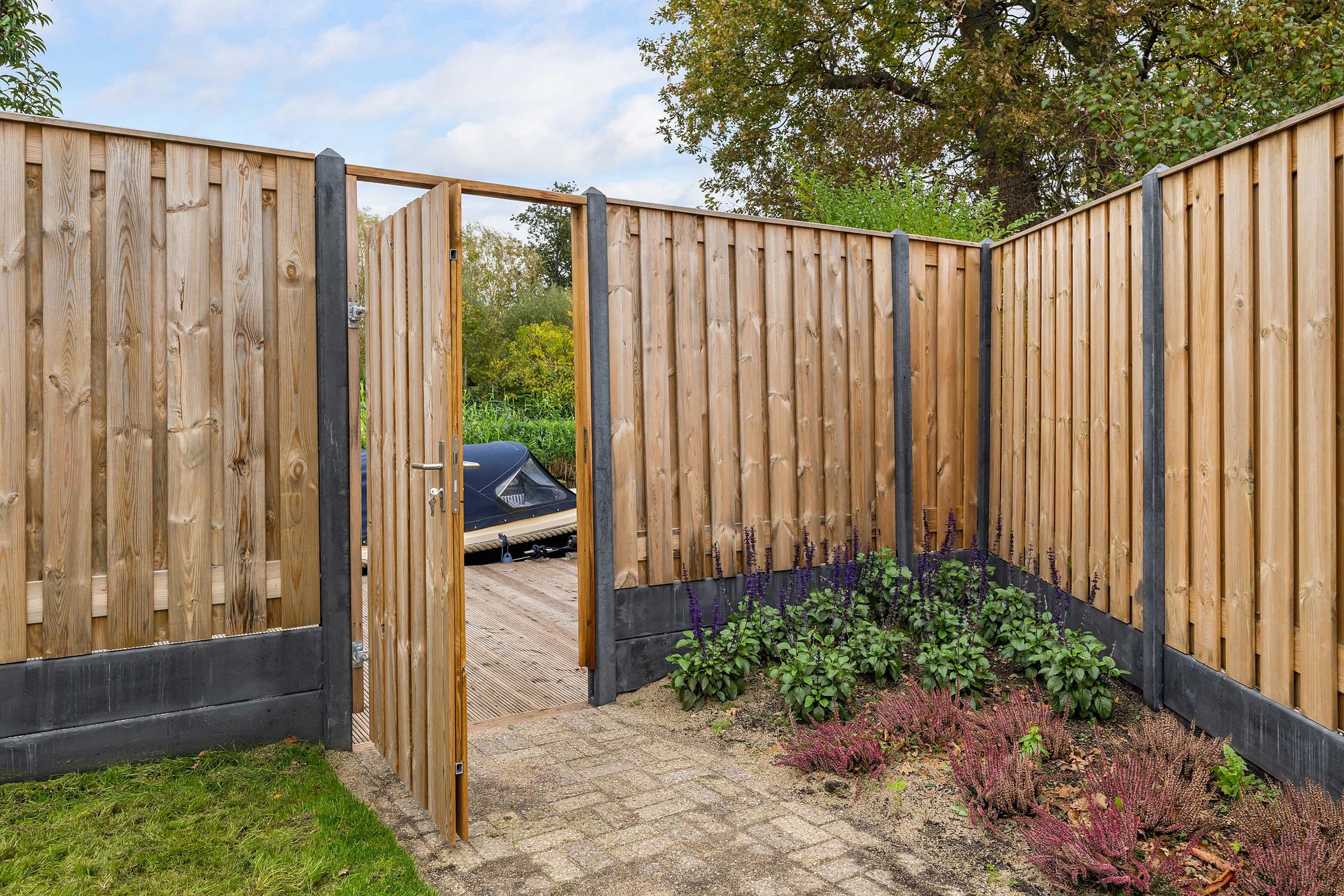 - Tuin aan vaarwater op het oosten, nieuw aangelegd met schuttingen en vrij uitzicht