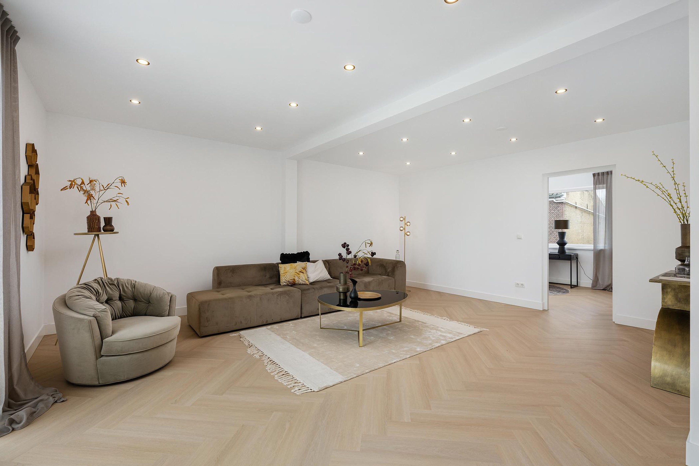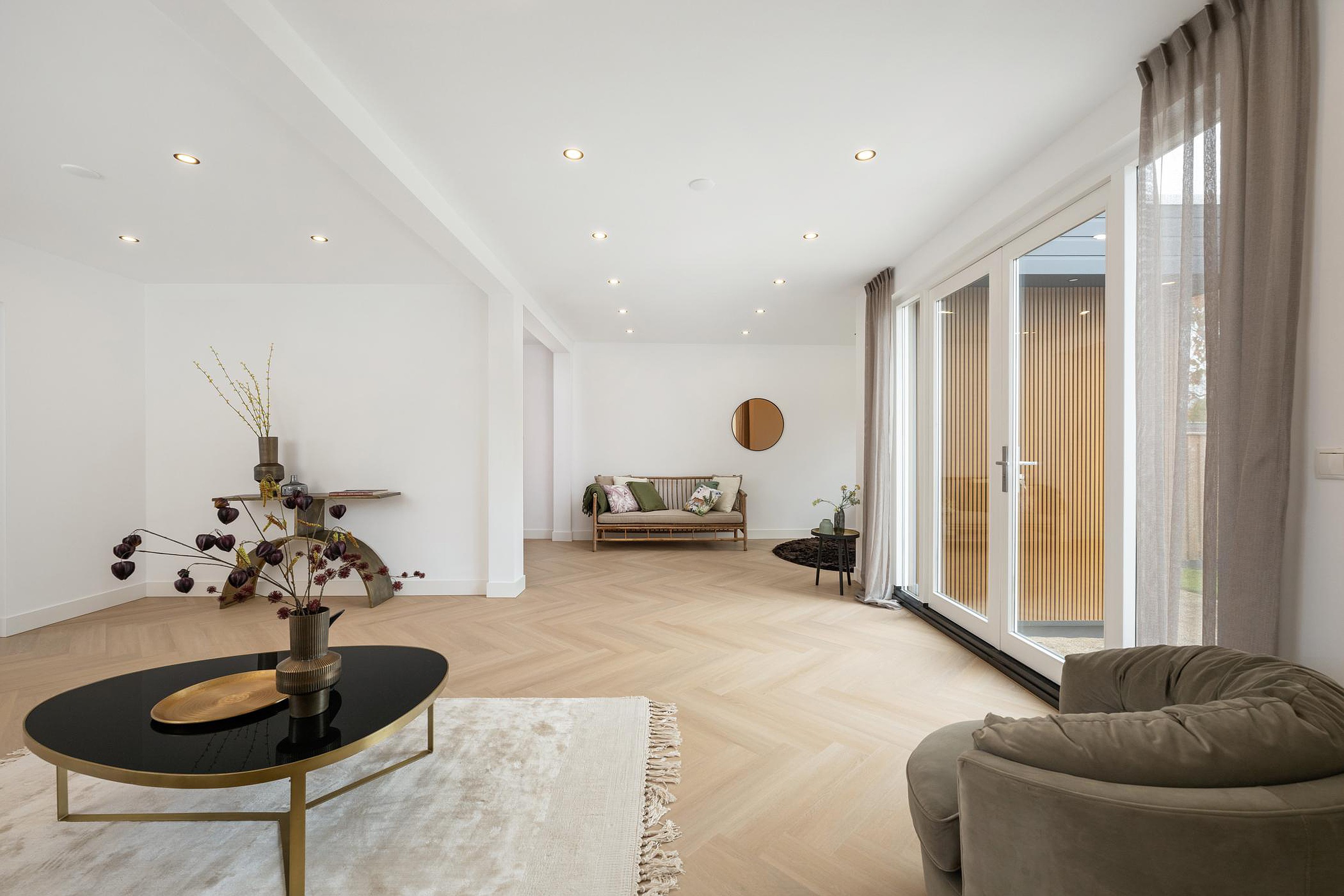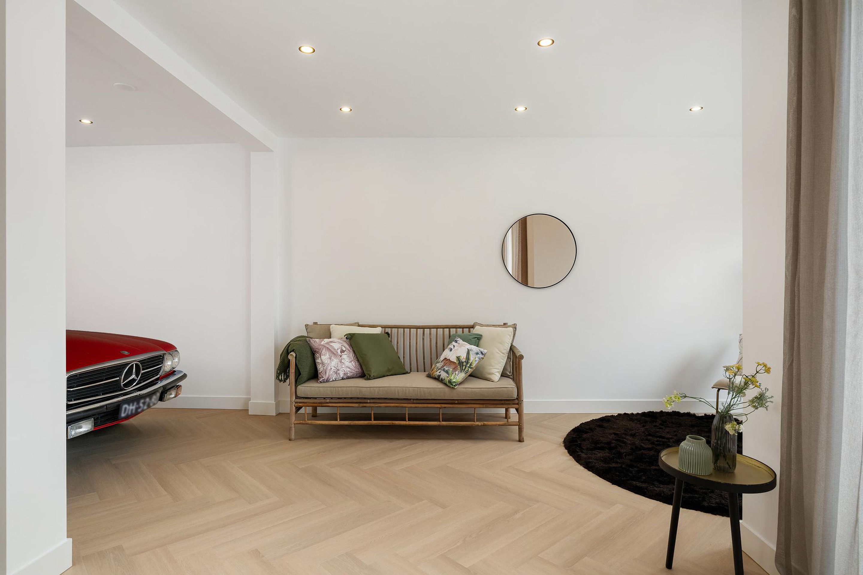 De afwerking is hoogwaardig, met een visgraat PVC-vloer (door de gehele woning), hoge plinten en een strak gestuukte wandafwerking.