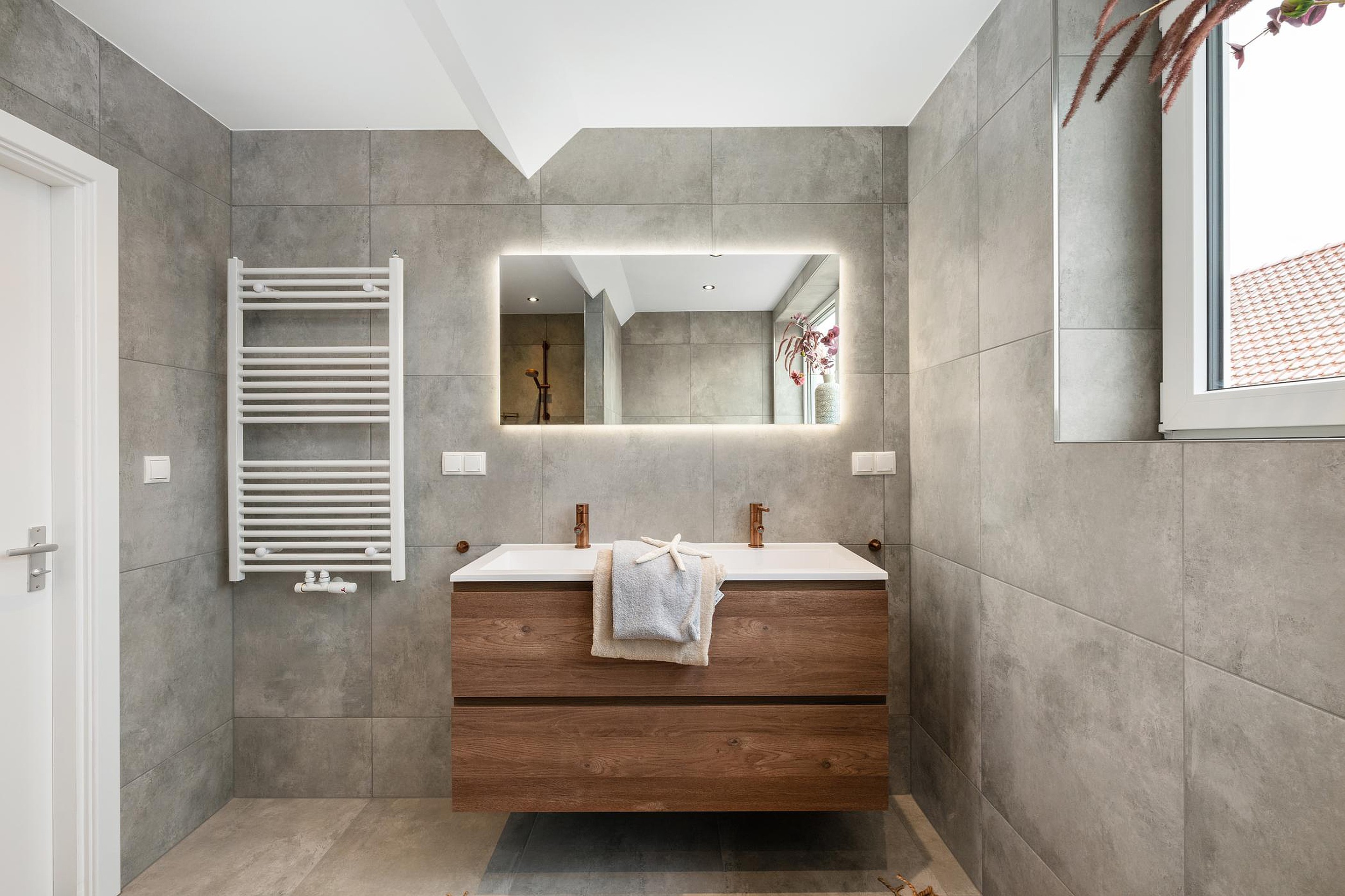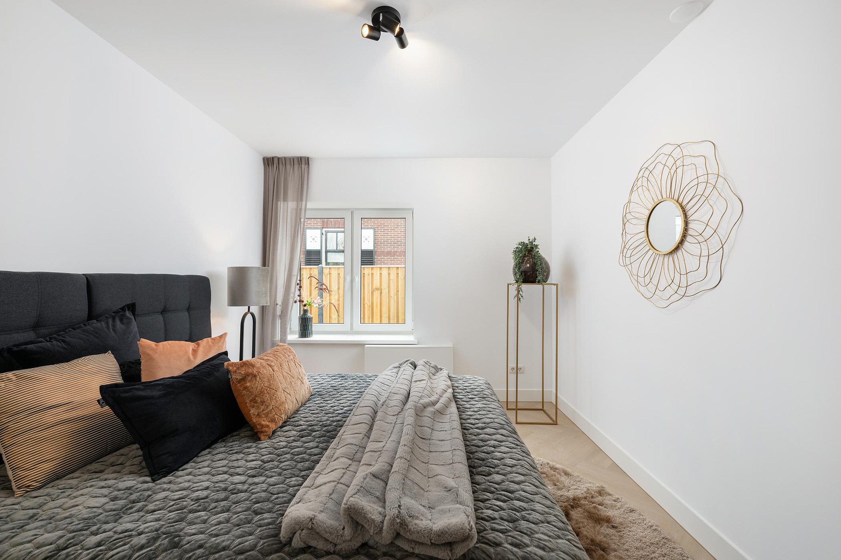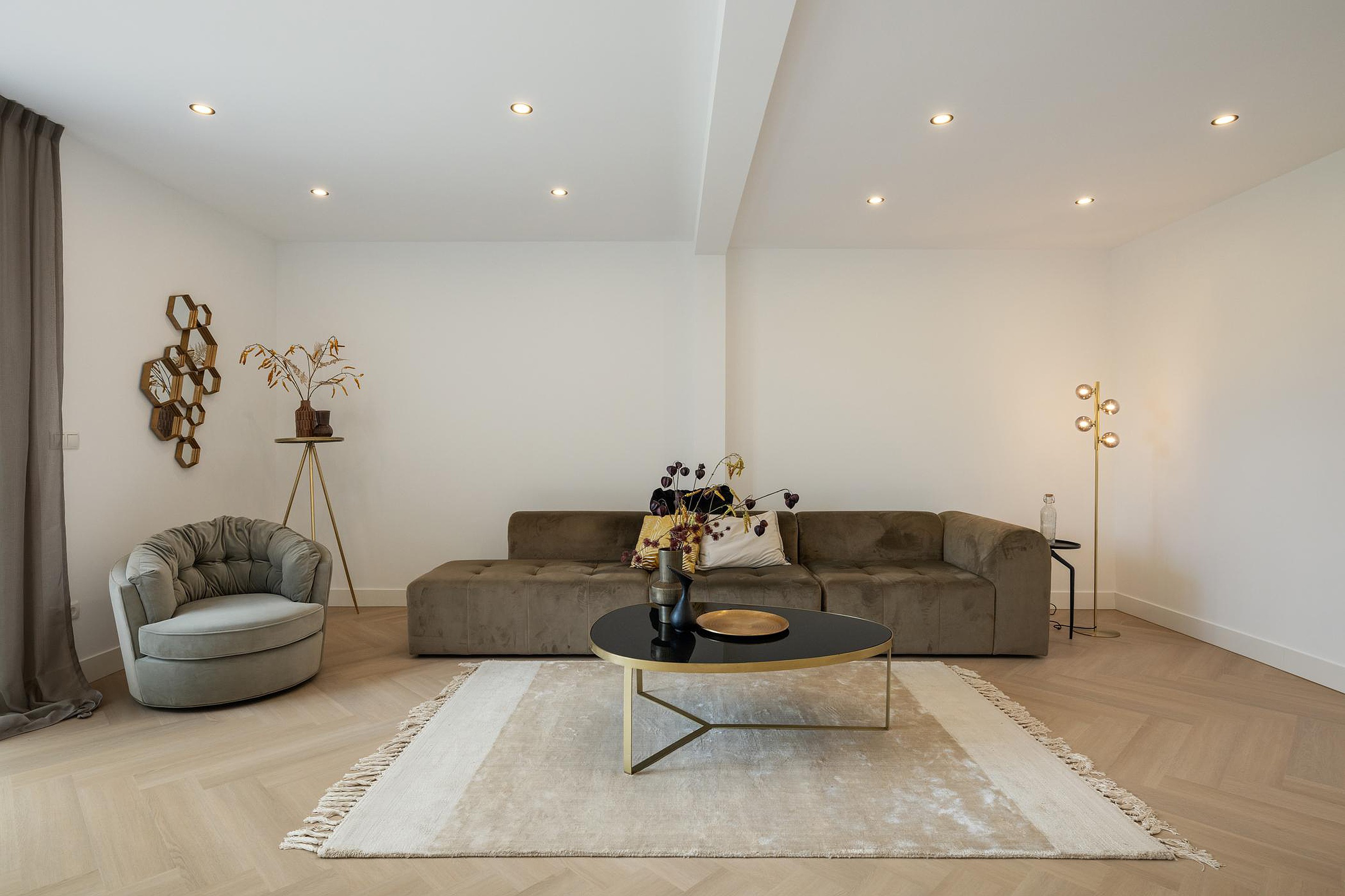 De afwerking is hoogwaardig, met een visgraat PVC-vloer (door de gehele woning), hoge plinten en een strak gestuukte wandafwerking.