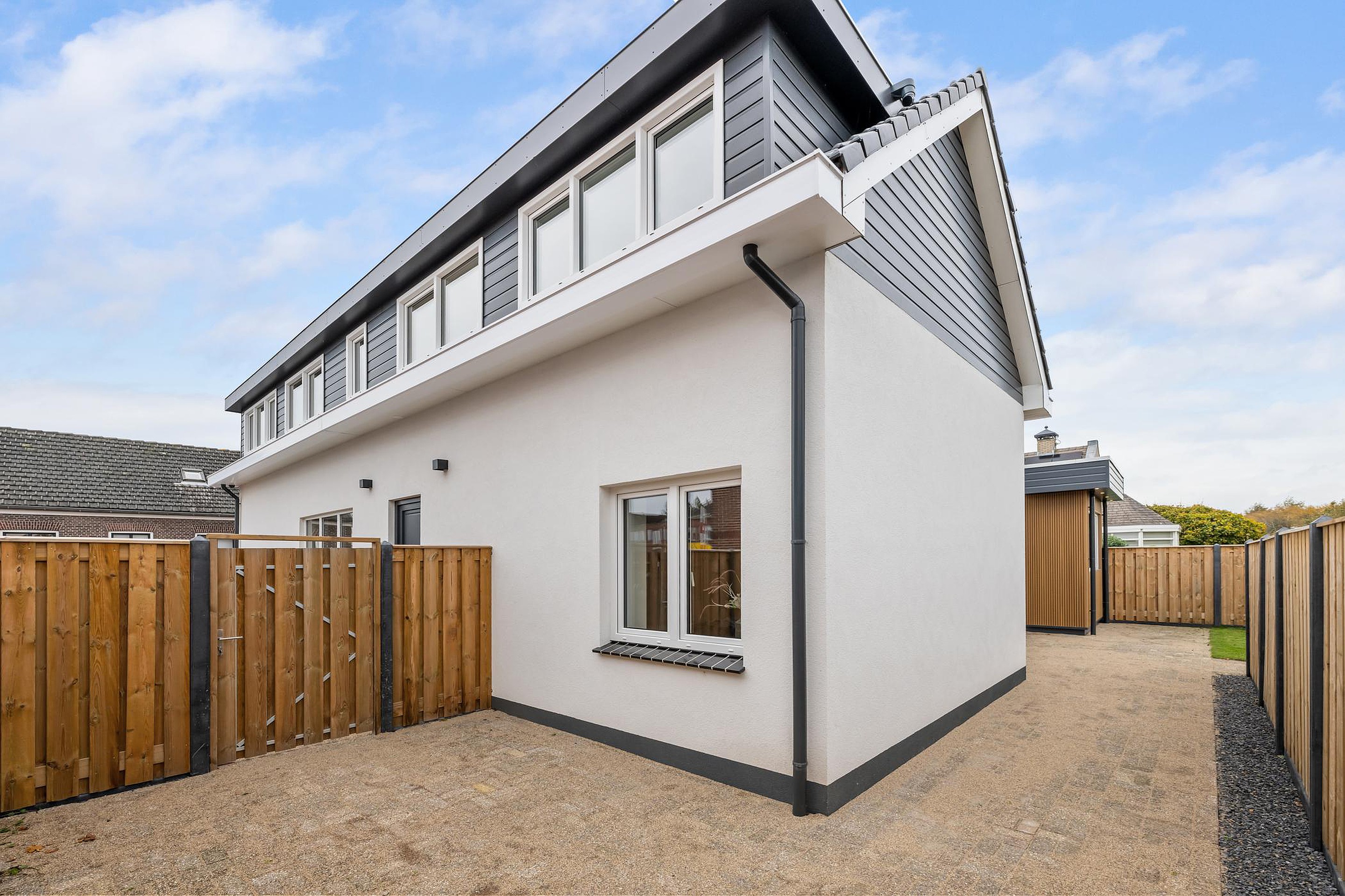 - De buitenzijde is volledig opnieuw gestuukt en afgewerkt met een spachtelputz laag en deels voorzien van rabatdelen.