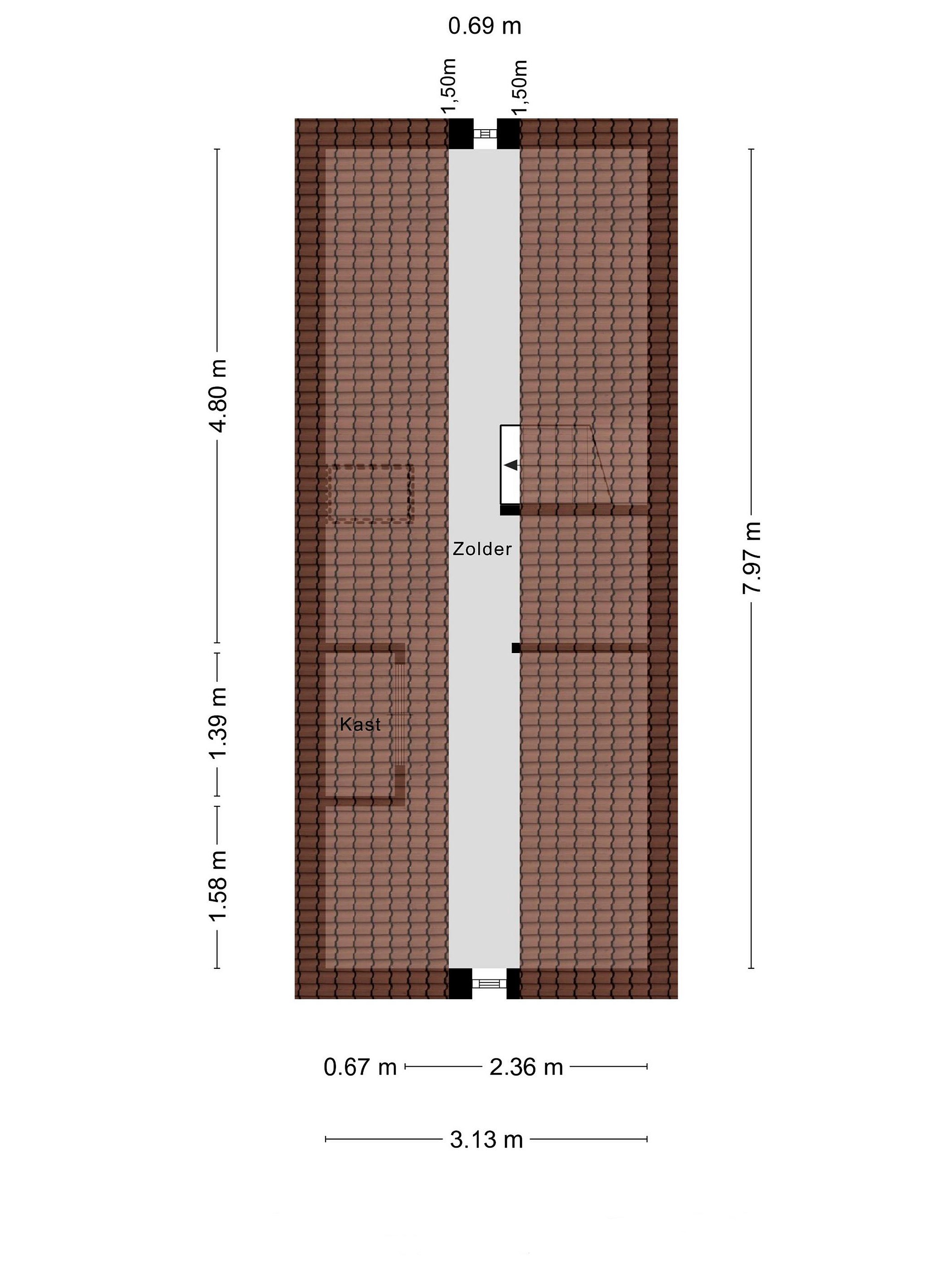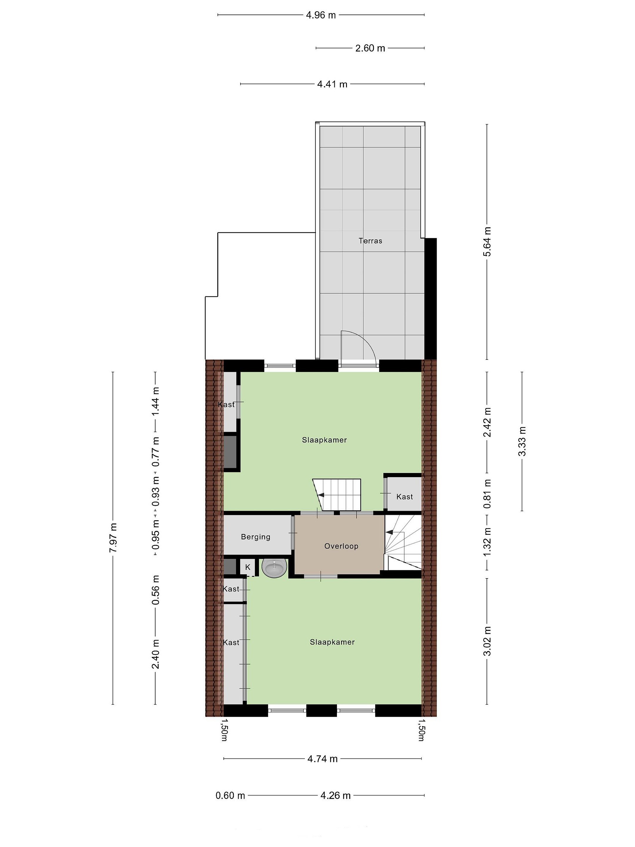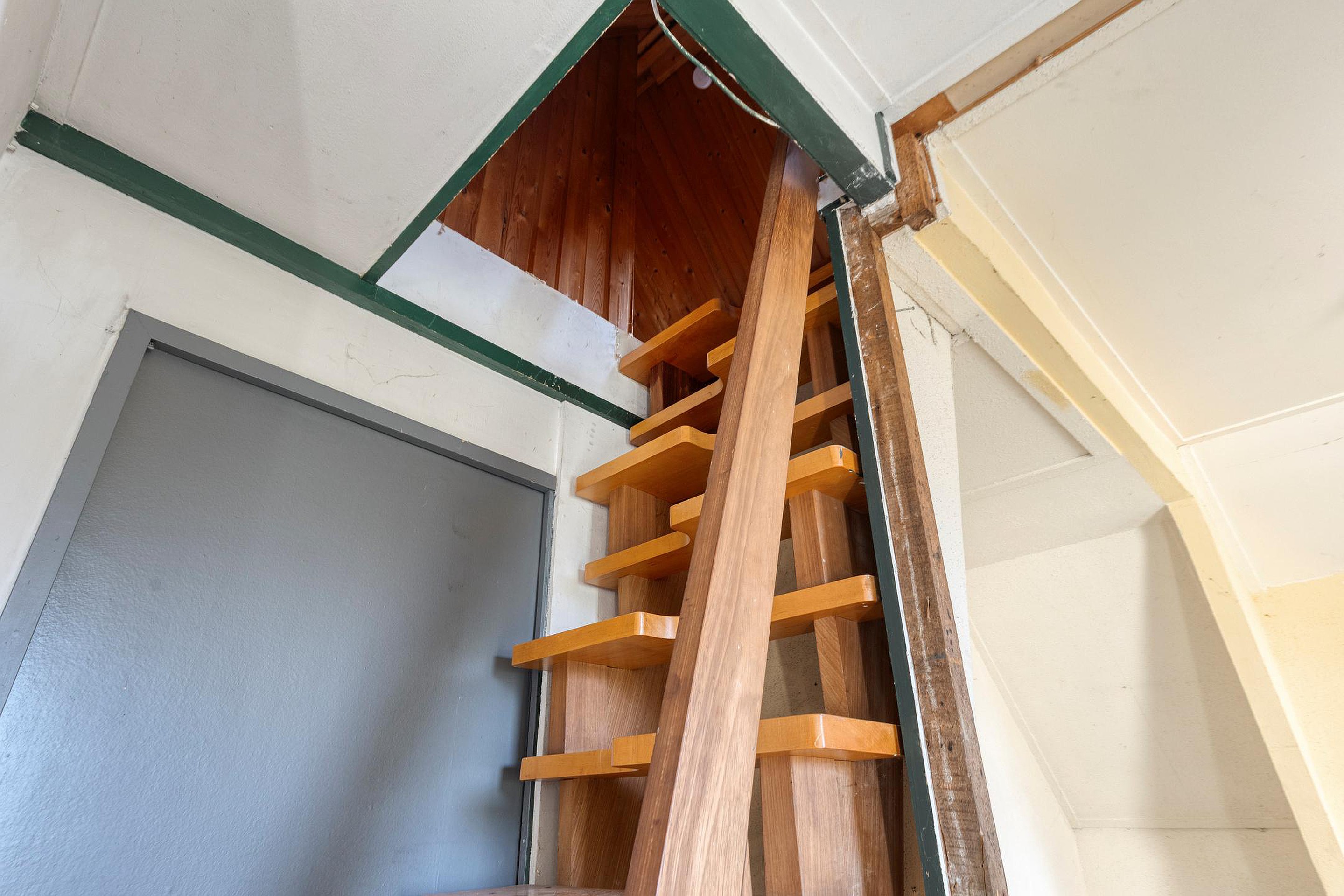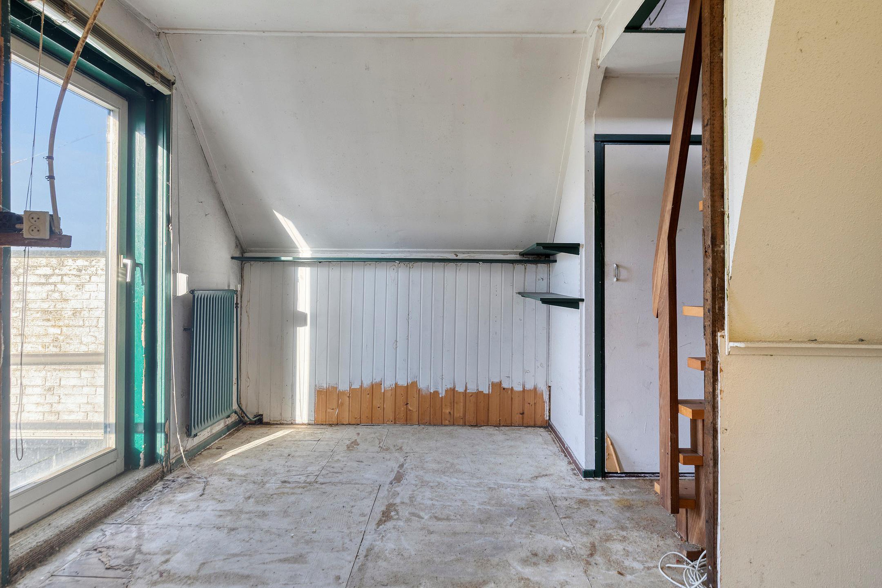 Via de trap bereikt u de royale overloop, voorzien van een vaste kastruimte. Vanaf de overloop heeft u toegang tot de twee ruime slaapkamers. In de eerste ruime slaapkamer aan de voorzijde van de woning treft u een vaste kastenwand en een wastafel. De tweede ruime slaapkamer, aan de achterzijde van de woning is ontstaan door het samenvoegen van twee kleine slaapkamers. (dit is eenvoudig weer terug te brengen) Vanuit deze tweede slaapkamer heeft u toegang tot het zonnige dakterras en middels een vaste ruimtebesparende trap tot de ruime zolder voorzien van een Velux-dakvenster.
