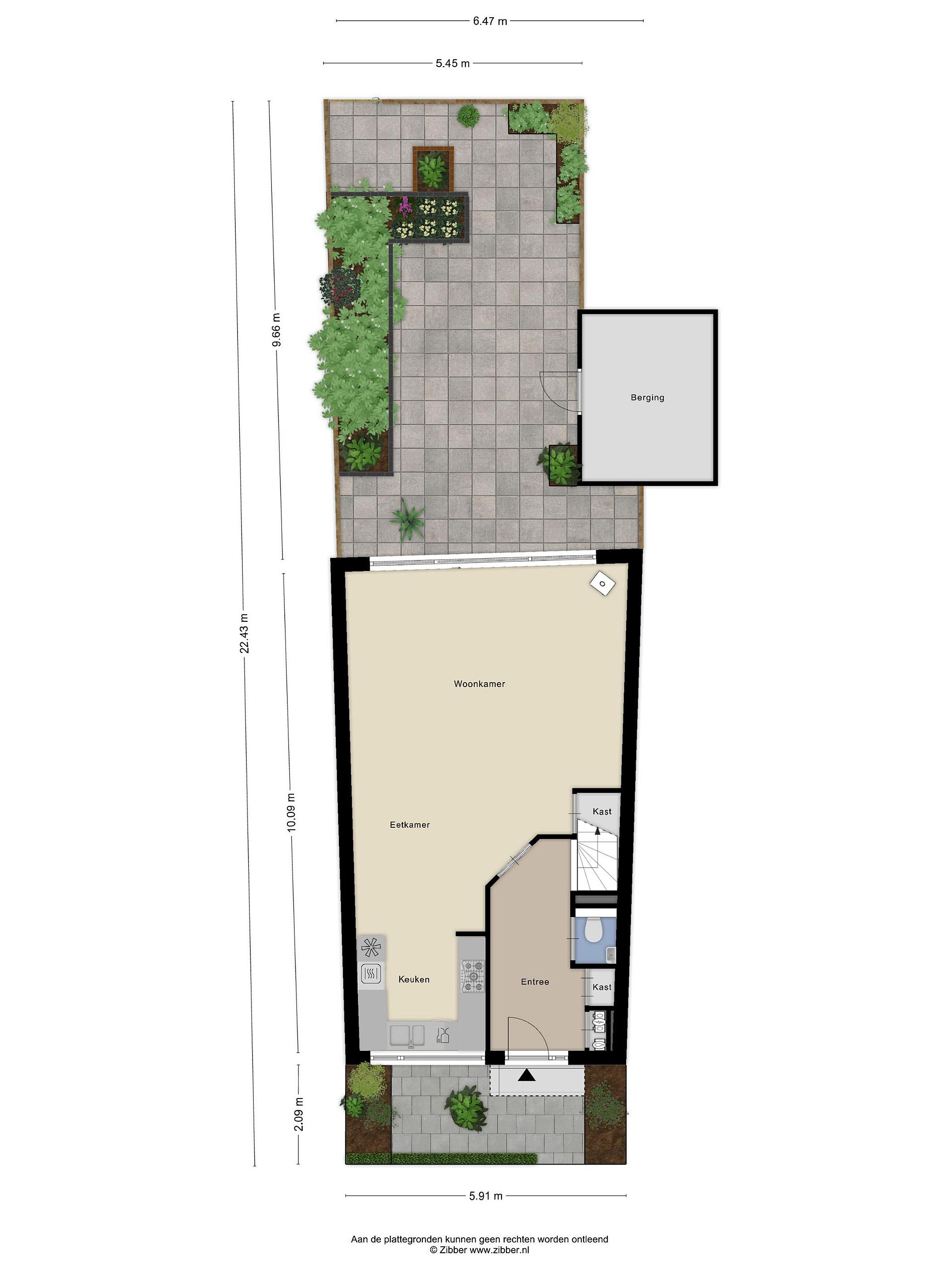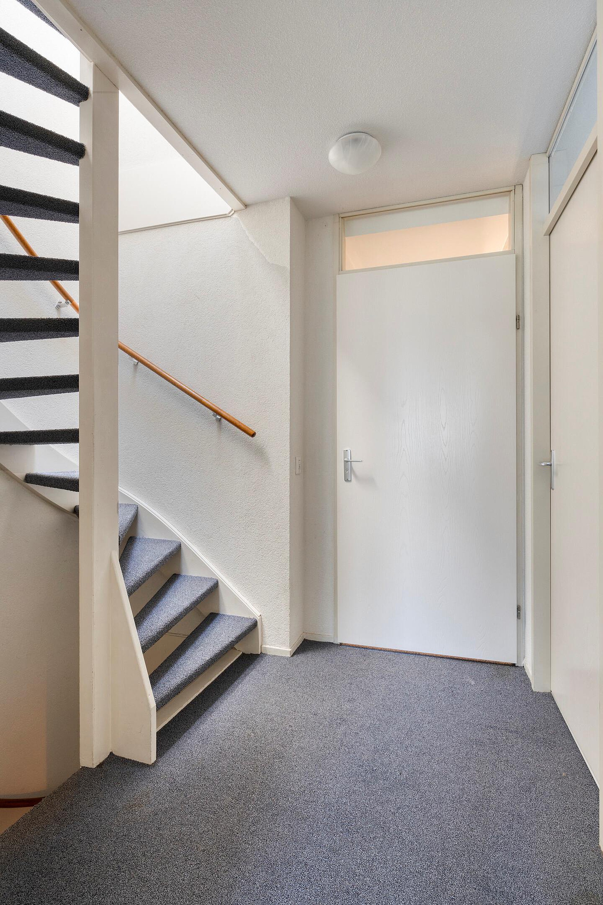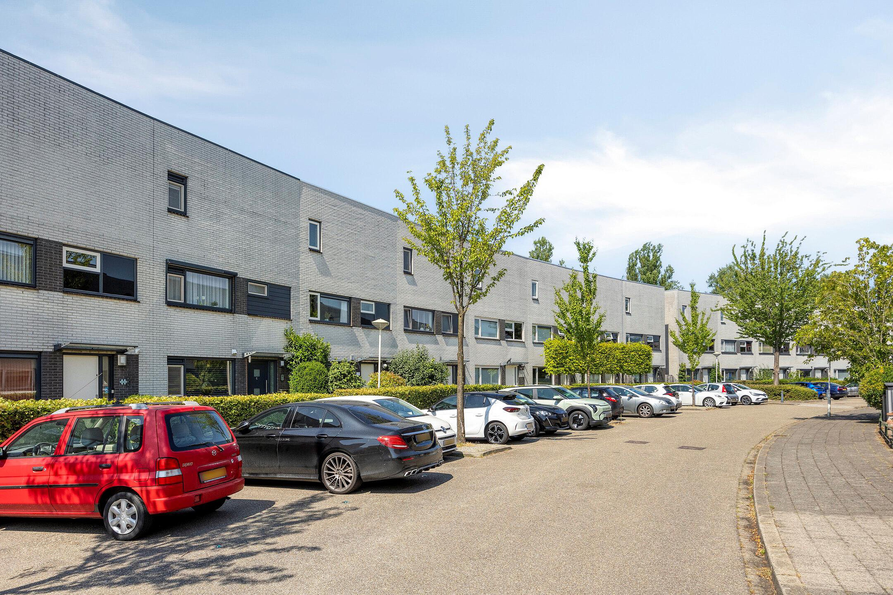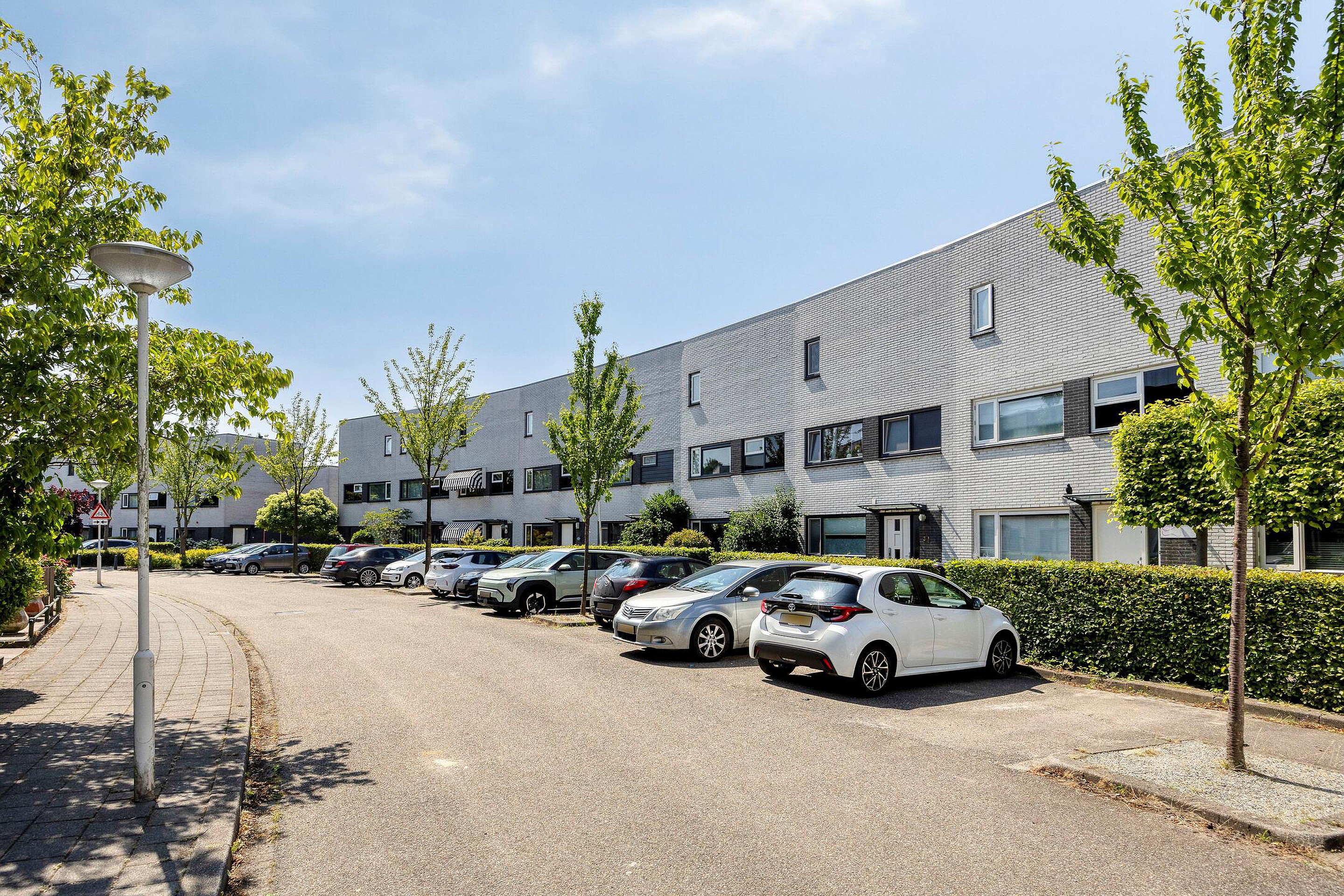 Met een plat dak en zonnepanelen heeft het huis een moderne uitstraling en parkeren doe je gewoon voor de deur. Geen gedoe met zoeken dus. Je kijkt niet uit op een rij auto’s, want er staat een groene haag voor. Die geeft je ook meteen een beetje extra privacy. Ook voor de fiets is in de voortuin voldoende plek of anders achterin de berging van bijna tien vierkante meter.
