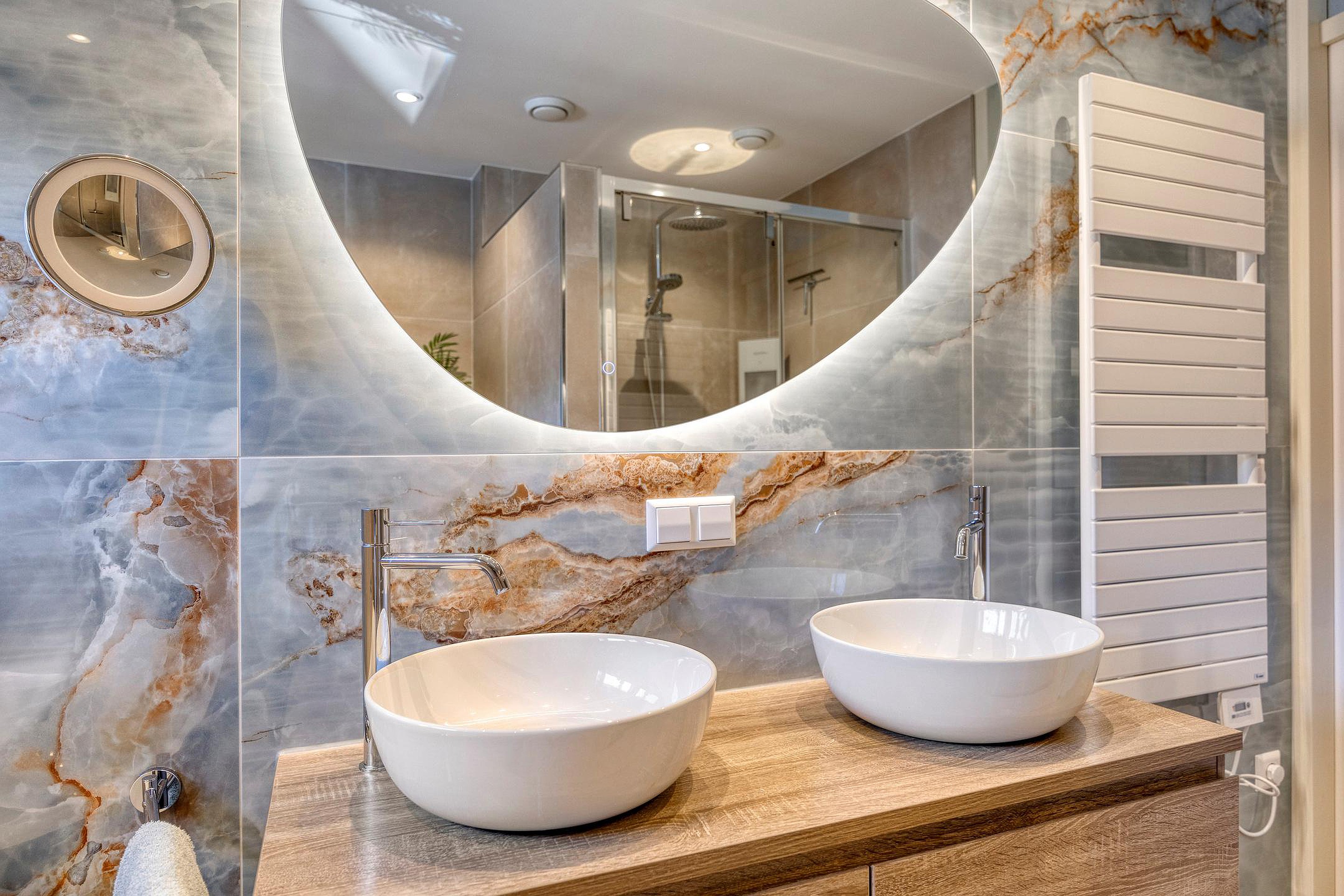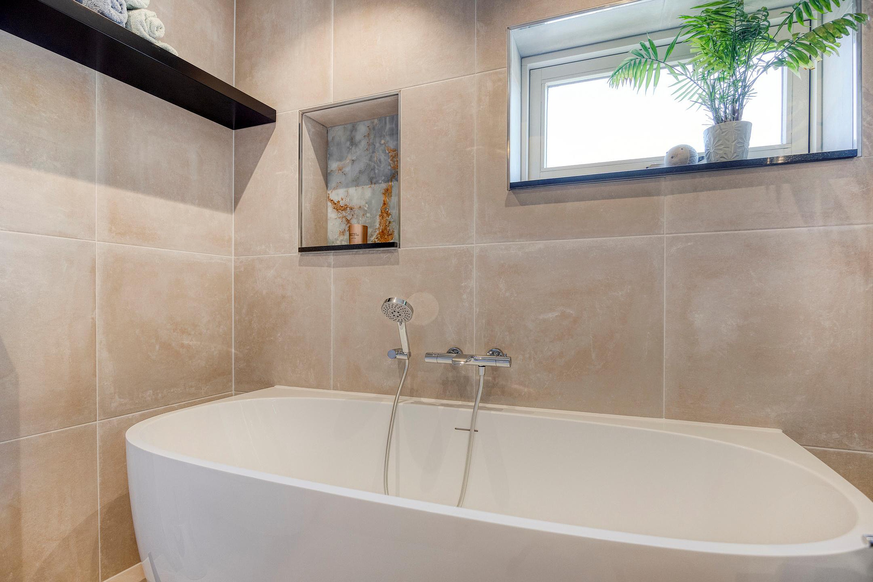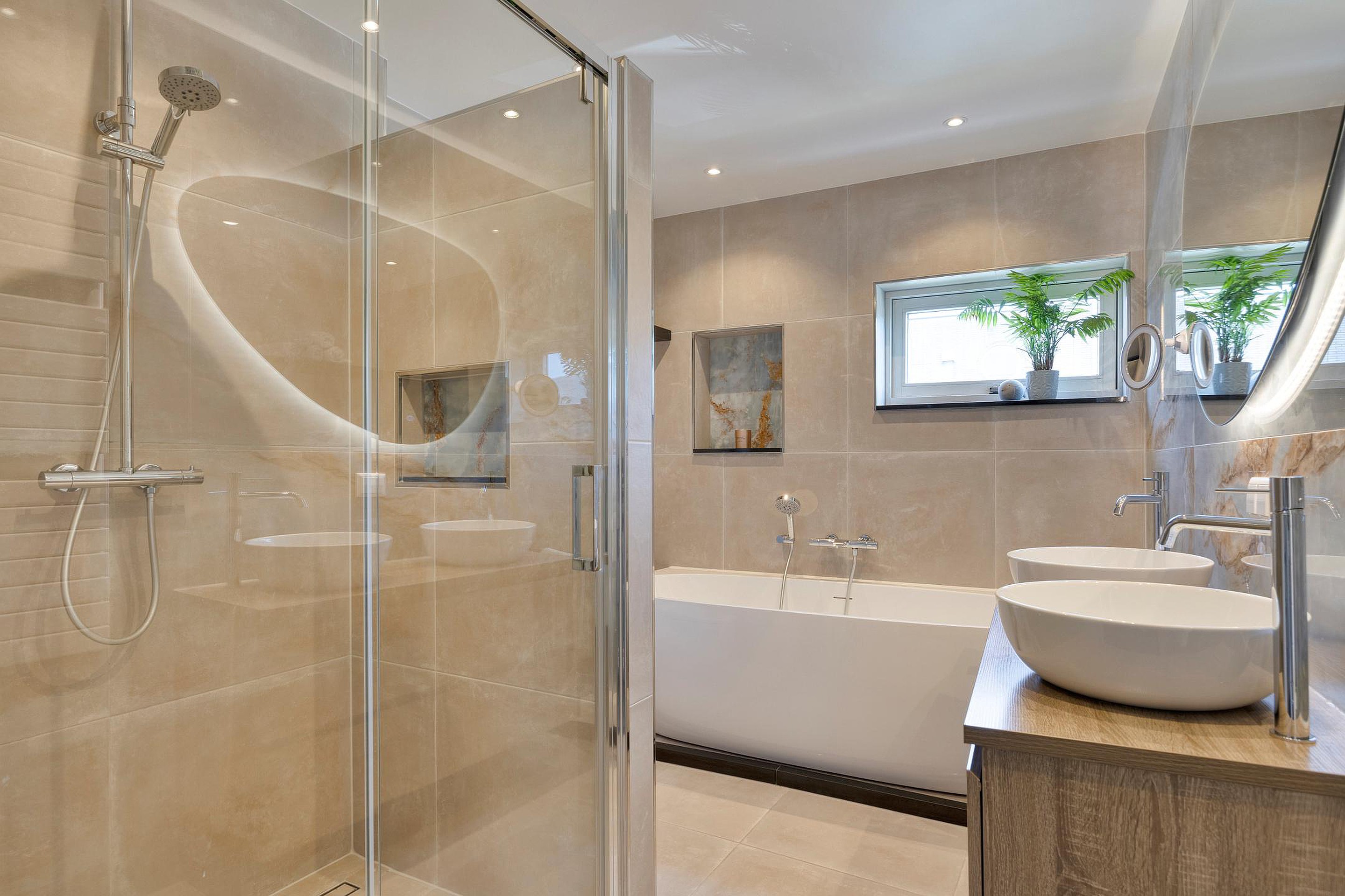 - Luxe badkamer met inloopdouche, ligbad en dubbele wastafel